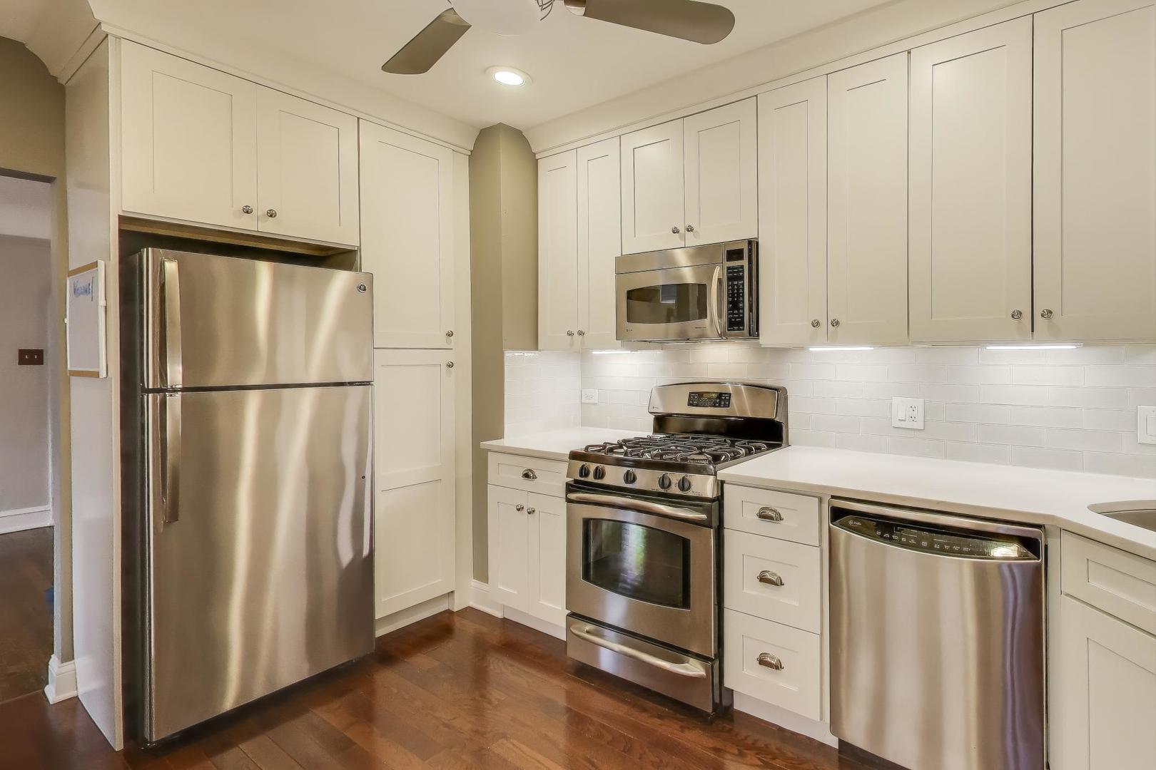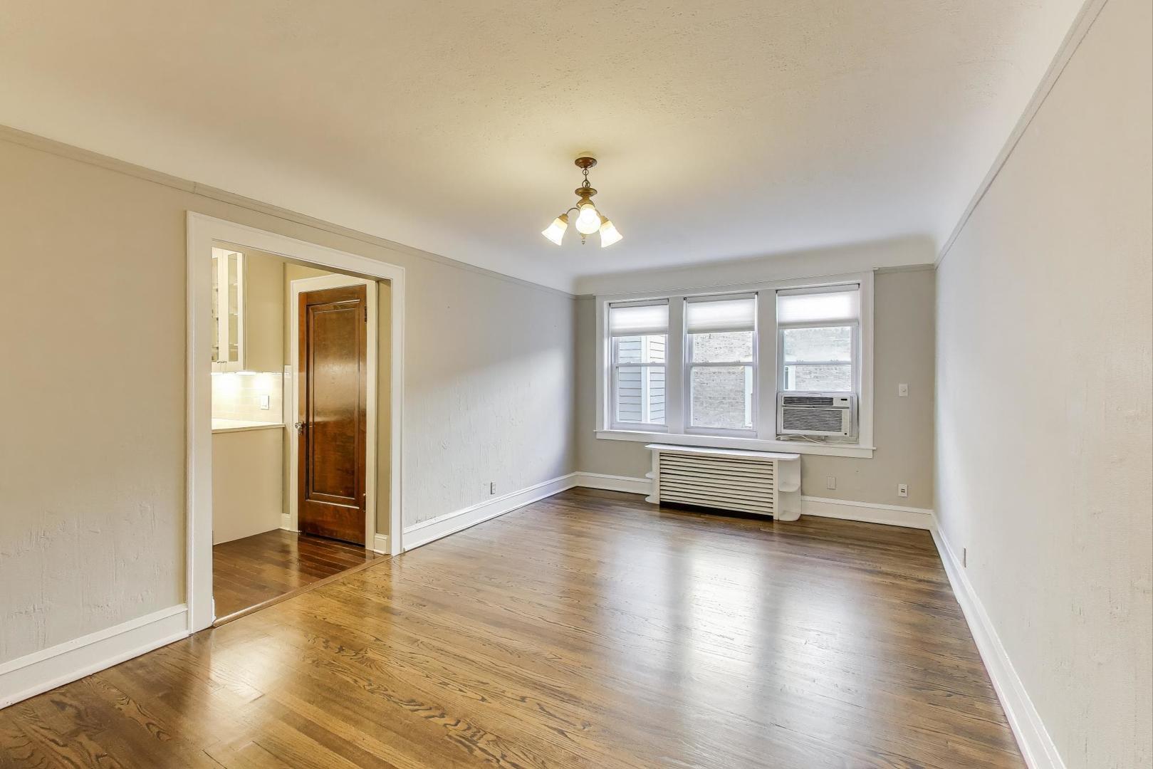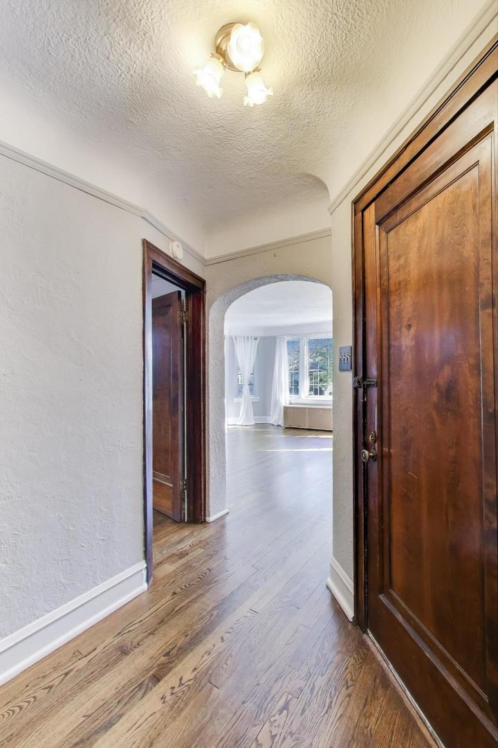 Vintage charm meets current style and modern convenience in this jumbo 2-bedroom + den, 1-bathroom beauty with garage parking! Situated in a prime location just 2.5 blocks from beautiful Horner Park, this oversized 1,300sf+ residence combines vintage charm with modern upgrades, featuring a gorgeous, fully renovated kitchen and bathroom, thermal windows, and refinished hardwood floors throughout. Enjoy the palatial living room with a striking decorative fireplace and sunny bay window, perfect for relaxing or entertaining. The formal dining room is massive-ideal for hosting gatherings. And big enough to serve as more than only a dining room. The primary bedroom offers en-suite bathroom access with an additional entry from the hallway. The kitchen is a chef’s dream with abundant cabinetry, a cabinet pantry, quartz counters, under-cabinet lighting, stainless steel appliances, and a walk-in pantry that’s ready for an easy in-unit laundry conversion. Charming original archways add timeless character, while the den provides flexible space for an office, guest room, or creative studio. Huge, private basement storage. Large shared backyard greenspace. Located on a quiet tree-canopied street with easy access to I-90, this home is a rare blend of size, style, and location.