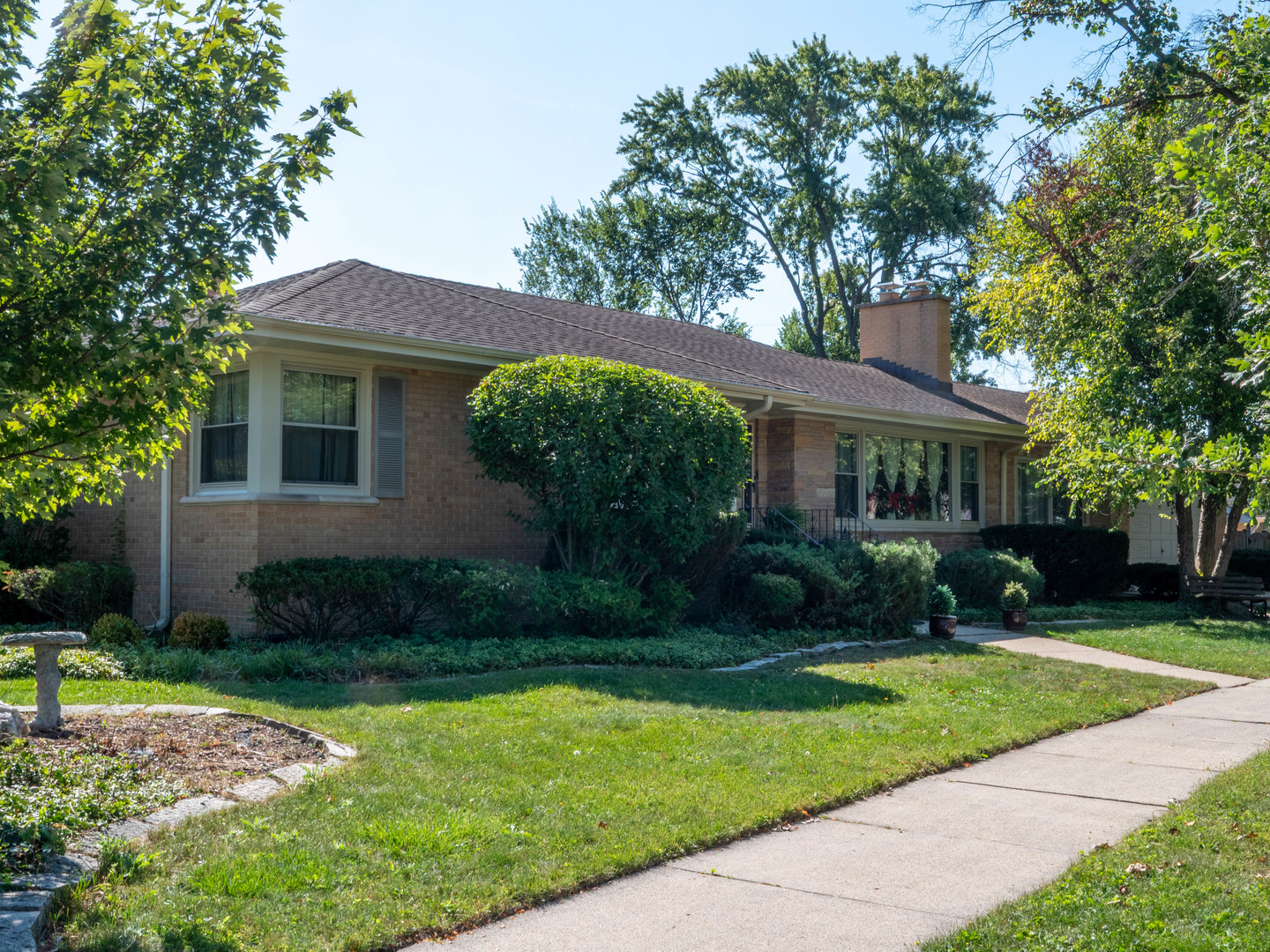 Outstanding Quality Yost Built sprawling all brick bright 3-bedroom 2.5 bath ranch in excellent condition on a large corner lot. Great location near school, parks, shopping & transportation. Home features coved moldings, oak floors, birch kitchen cabinets, 2 fireplaces, attached 2 car garage, 1st floor den, huge light & bright full basement, upgraded plumbing & electrical plus new windows, furnace & AC, and exterior soffits with lighting.