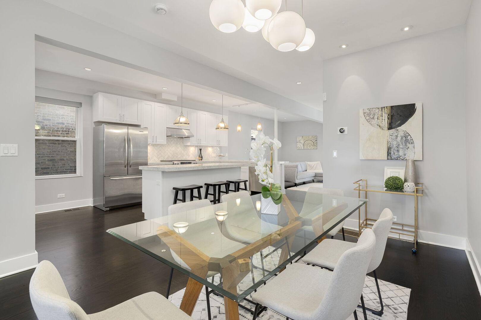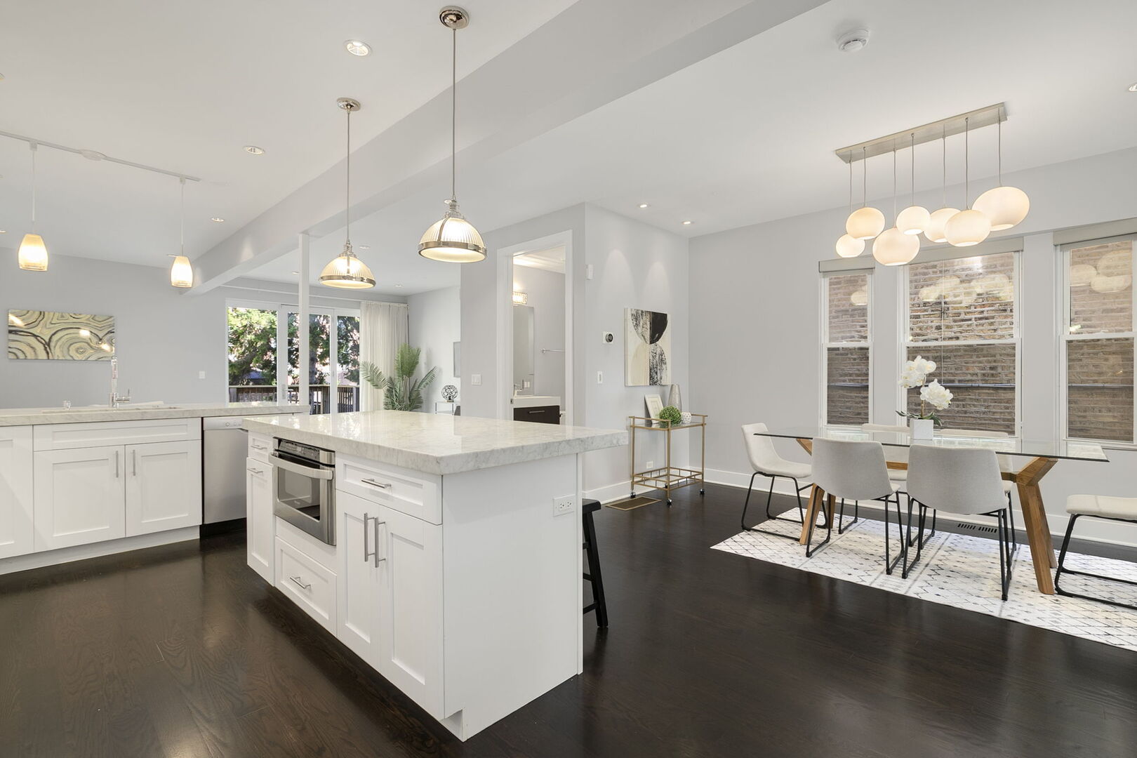 Welcome to 3855 N Christiana – this classic 1912 brick beauty was reimagined from two-flat into a stunning 3,400 sq. ft. single-family home situated on a 30′ lot in the heart of Irving Park. It was thoughtfully converted to meet the needs of modern living while retaining its timeless curb appeal. Step inside and you’ll find 5 bedrooms and 3.5 baths, designed with room for everyone and everything. The heart of the home is the open kitchen and adjoining family room, where a dramatic glass wall opens to a large deck-perfect for summer barbecues, birthday parties, or quiet evenings under the stars. A dedicated dining room and gracious front living room with fireplace set the stage for memorable gatherings, while three upstairs bedrooms offer peaceful retreats. The primary suite is a true surprise, featuring an ensuite bath and a full wall of closets. Thoughtful updates throughout include stainless steel appliances, marble and granite countertops, designer lighting, a Nest thermostat, and newly refinished hardwood floors. Downstairs, a finished lower level with a wet bar expands your options for entertaining or relaxing. Laundry hook-ups both upstairs and downstairs. Outside, the manicured backyard and two-car masonry garage add ease and beauty to everyday life. Located on a tree-lined block known for its annual block party and welcoming spirit, you’ll feel at home the moment you arrive. Just steps from shopping, dining, everyday conveniences along Irving Park Road and near the Kennedy, this is a home that grows with you. Don’t miss the chance to make it yours-schedule your tour today.