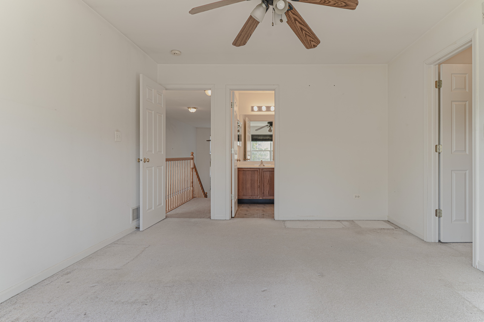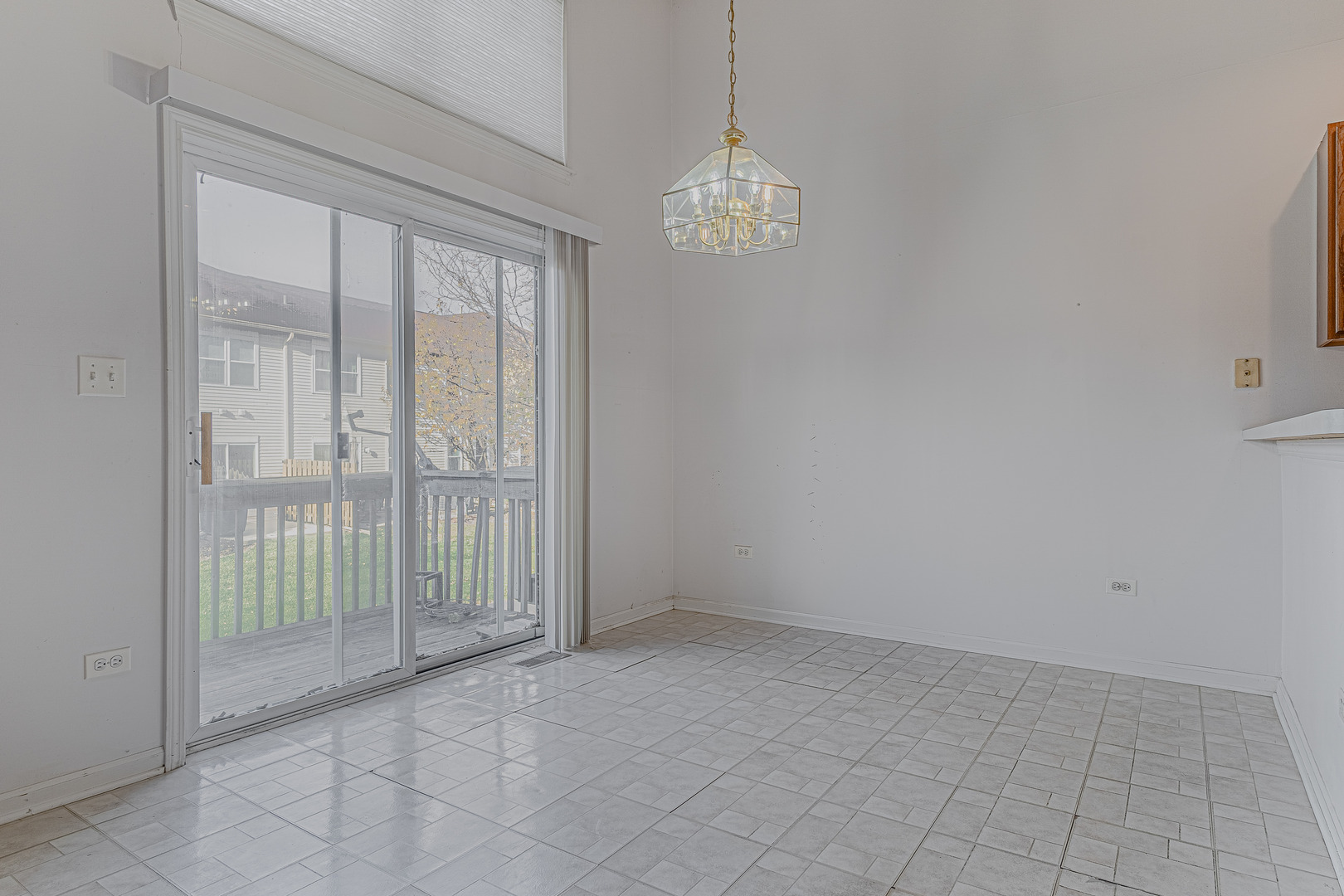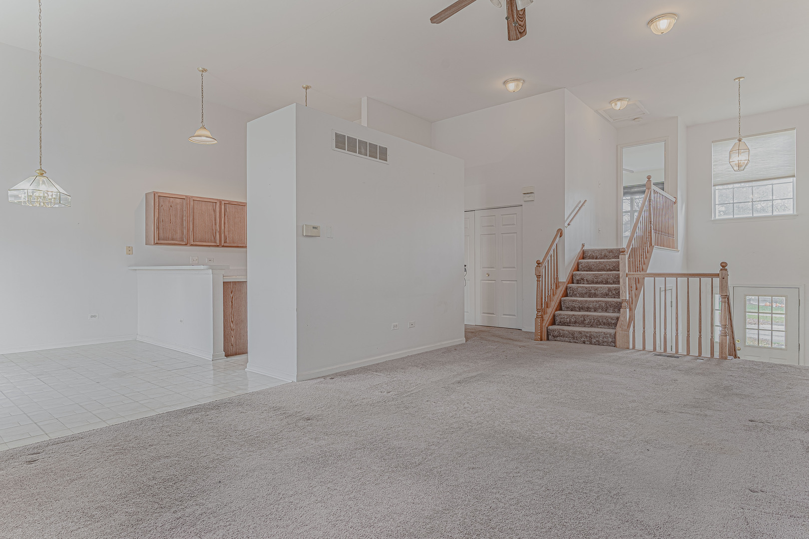 This tri-level home is a part of the Fieldstone Condo community and enjoys its amenities: snow removal, lawncare, and common insurance. Enter the home through the front patio and into the entry landing with convenient coat closet. Climb to the large main level living room featuring dramatic 12 ft ceilings and large vinyl windows with accordion blinds. The kitchen offers a roomy eat-in space with hanging light fixture and convenient pantry closet for extra storage. Walk through the sliding glass doors onto the balcony, where you can drink your morning coffee. The upper level primary bedroom features a large ensuite bathroom with dual vanity, standing shower, and soaking tub and a walk-in closet. The lower level family room with tall windows is cheery extra living space. Guest bedroom with walk-in closet. Laundry room with washer/dryer. Two car garage with opener. Selling AS IS.