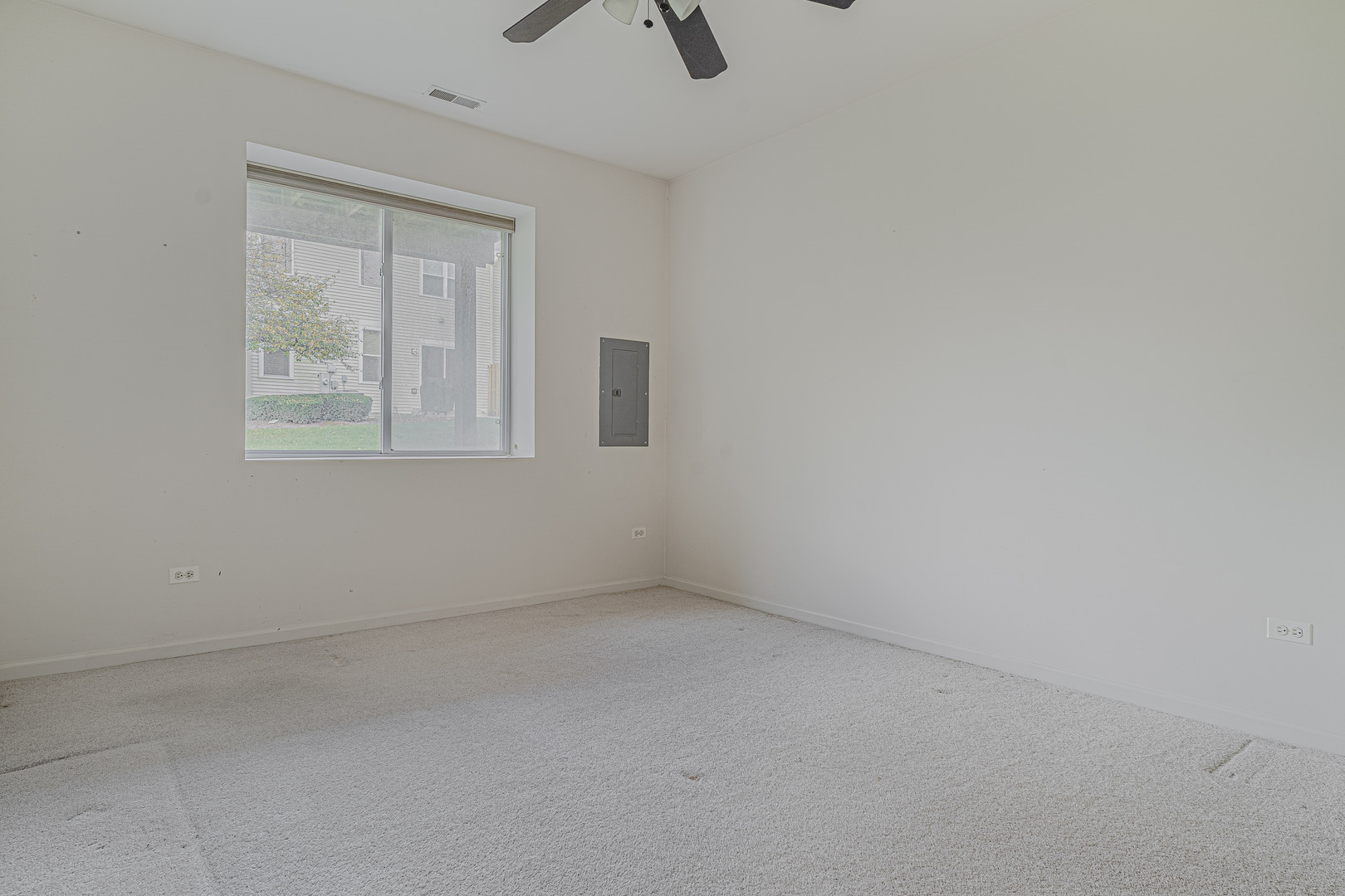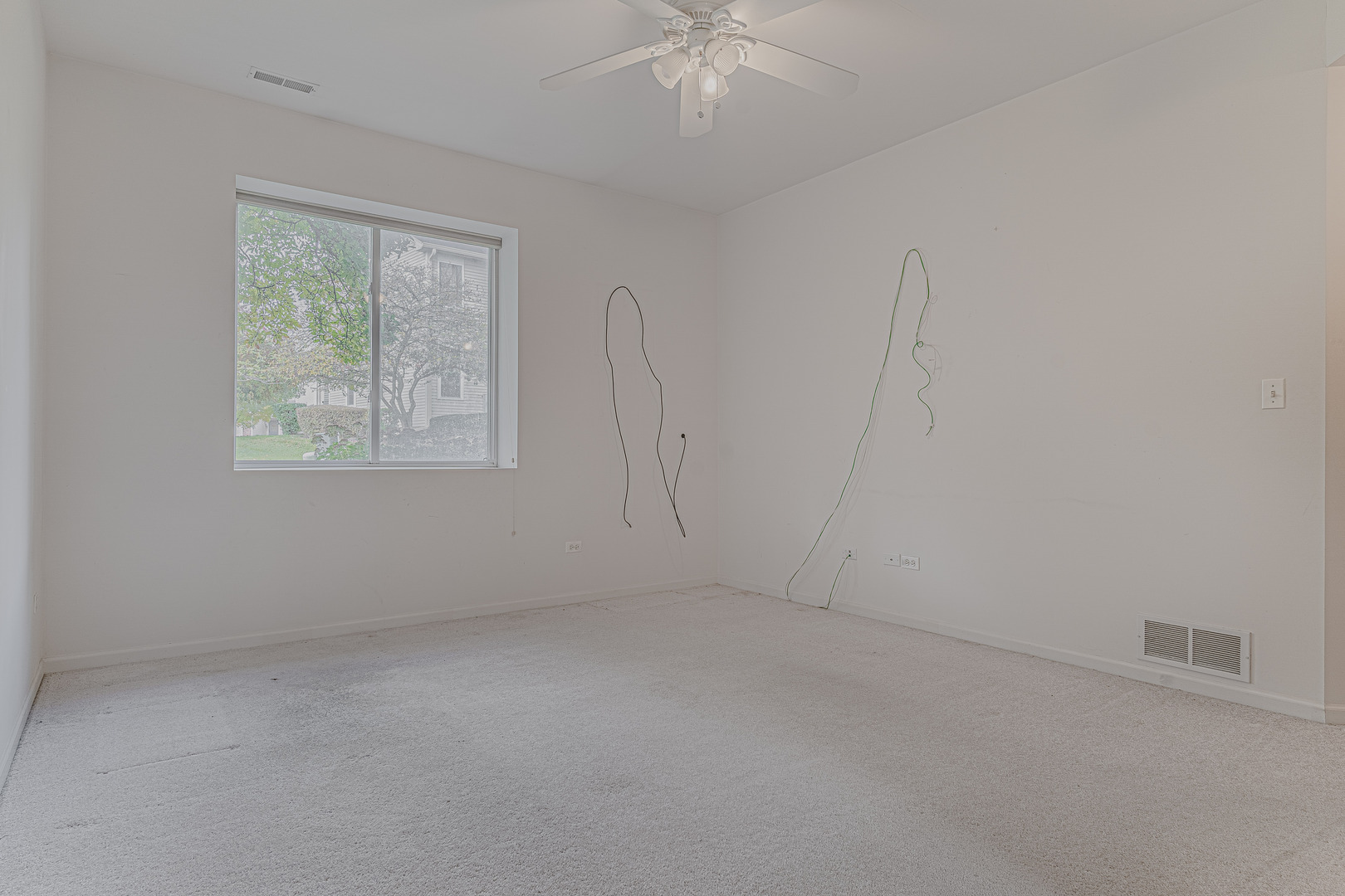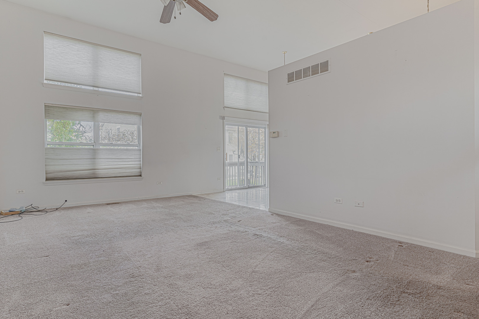 This tri-level home is a part of the Fieldstone Condo community and enjoys its amenities: snow removal, lawncare, and common insurance. Enter the home through the front patio and into the entry landing with convenient coat closet. Climb to the large main level living room featuring dramatic 12 ft ceilings and large vinyl windows with accordion blinds. The kitchen offers a roomy eat-in space with hanging light fixture and convenient pantry closet for extra storage. Walk through the sliding glass doors onto the balcony, where you can drink your morning coffee. The upper level primary bedroom features a large ensuite bathroom with dual vanity, standing shower, and soaking tub and a walk-in closet. The lower level family room with tall windows is cheery extra living space. Guest bedroom with walk-in closet. Laundry room with washer/dryer. Two car garage with opener. Selling AS IS.