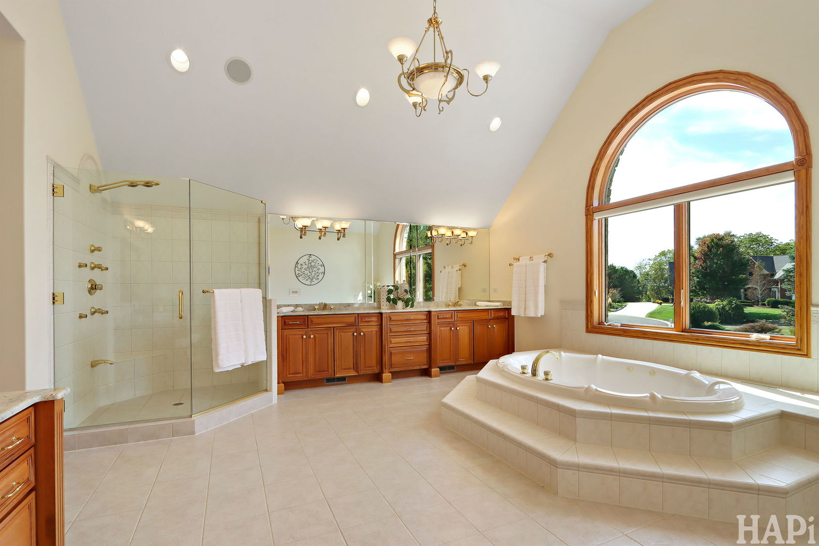 Experience over 9,600 square feet of luxurious living in this one of a kind custom-designed masterpiece situated in the Forest Knoll subdivision. The home features a walk-out basement and a thoughtfully planned layout spanning four levels, including a truly unique, spacious loft room. The main floor offers formal living and dining rooms, has striking Italian porcelain and gleaming hardwood floors, and a stunning gourmet kitchen with granite countertops and top-of-the-line professional stainless steel appliances. In addition to the island seating, the bright breakfast room is surrounded by windows, offering picturesque views of the expansive deck-perfect for entertaining or alfresco dining. Enjoy relaxing in the deck’s outdoor hot tub. Adjacent to the kitchen, the family room showcases a stunning stone fireplace and floor-to-ceiling soaring windows overlooking the professionally landscaped and expertly manicured backyard. Upstairs, the second level features five spacious bedrooms, including a luxurious primary suite with a spa-inspired bathroom that is an oasis to relax and unwind. One spacious double vanity plus another separate make-up vanity, custom cabinetry, separate whirlpool tub, walk-in shower, and private water closet are thoughtfully arranged for beauty and comfort. Two additional generously sized bedrooms feature ensuite baths, while two others share a Jack-and-Jill bath with separate vanities. Stairs lead up to the loft level that is an amazing large space that features skylights and flexible areas with a myriad of multiple uses — TV room, play area, or arts and crafts studio to name a few. An expansive walk-in closet with built-ins offers plenty of space for toys, books, or additional storage. The loft level also includes a separate private office or study area with its own large walk-in closet with shelving–perfect for office/school supplies or more storage. The walk-out basement level, with gorgeous porcelain tile, is an entertainer’s dream. It features a second full kitchen with bar seating, a lounge area in front of the stone fireplace, a separate sitting room, carpeted 6th bedroom and media rooms, plus a huge storage area. Another huge storage area exists under the garage slab. Outside you’ll find a beautiful, private brick paver patio that offers serene, unobstructed backyard views. The home is located in the highly acclaimed Barrington School District 220, with easy access to the Metra, expressways, shopping, dining, and entertainment. This unique home is perfect for both entertaining and everyday living. Welcome home!