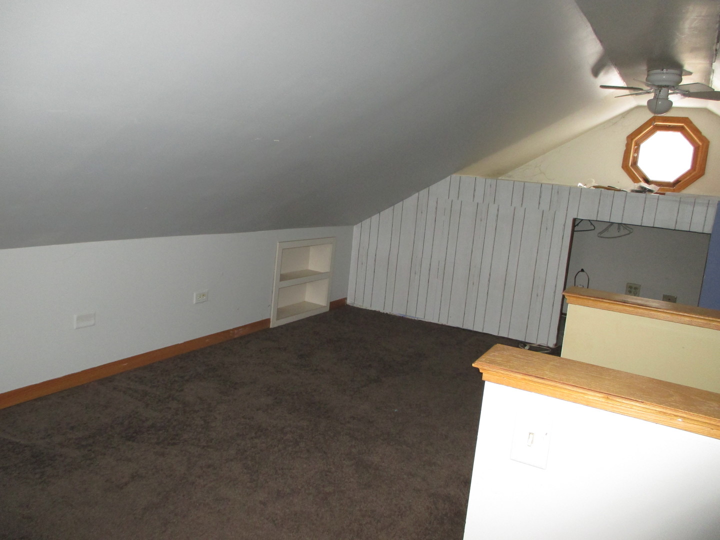 Looks can be deceiving. You’ll be pleasantly surpised to find how spacious this home is. Situated on a large corner lot, wooded and fenced, great for pet owners and outdoor activities. First floor boasts of large eat in kitchen, ceramic flooring and stainless steel appliances. Bedroom and laundry also on 1st floor. 2nd floor bedroom is 28×15 with plenty of room to spread out.1.5 car garage with workbench and long paved driveway Roof was a complete tear off with new underlayment November 2025, Come check this one out. You won’t be disappointed