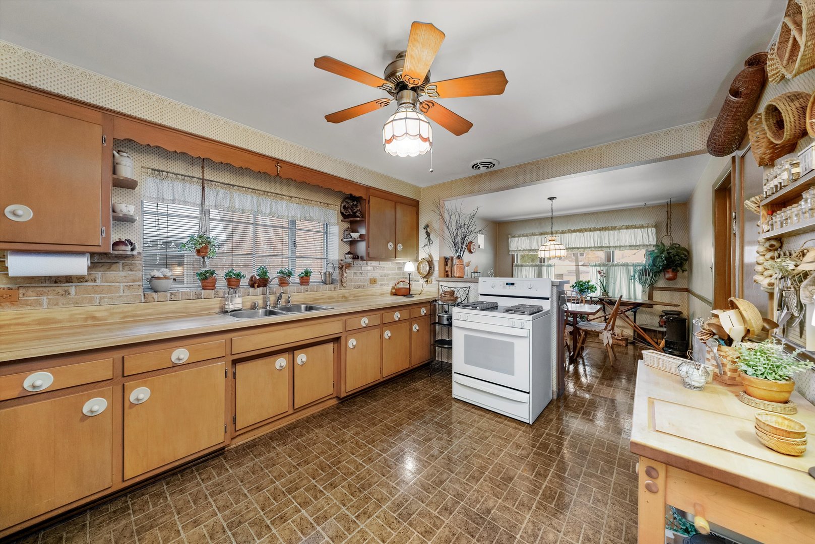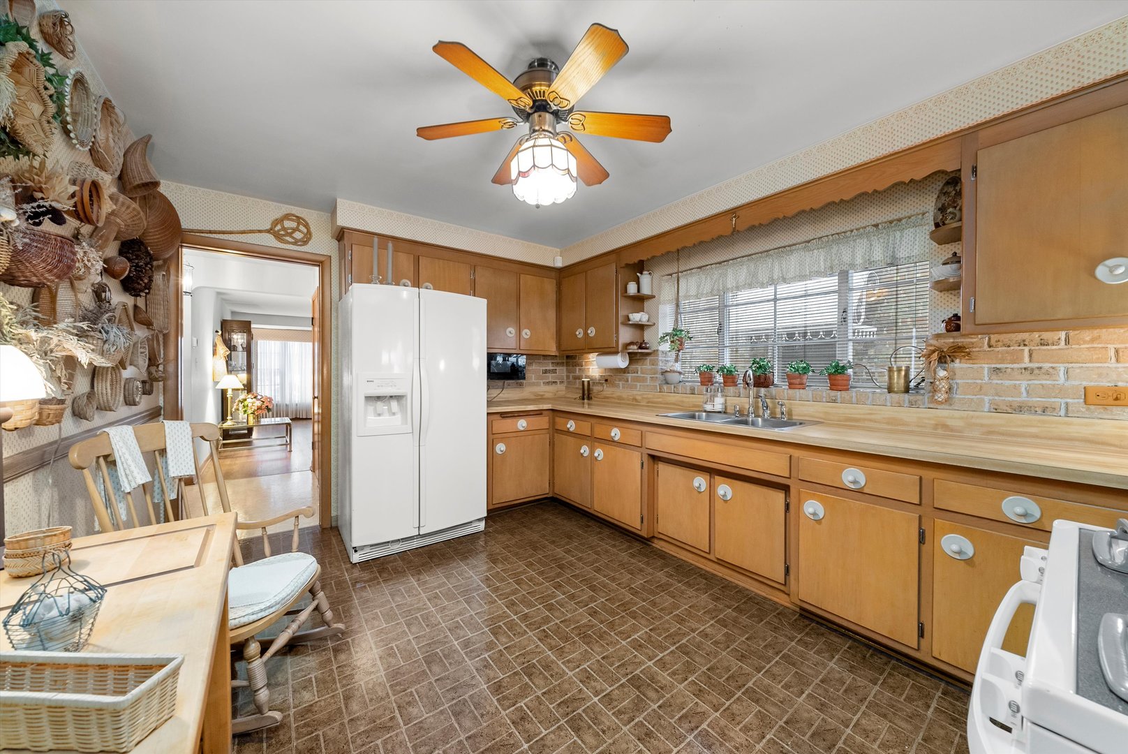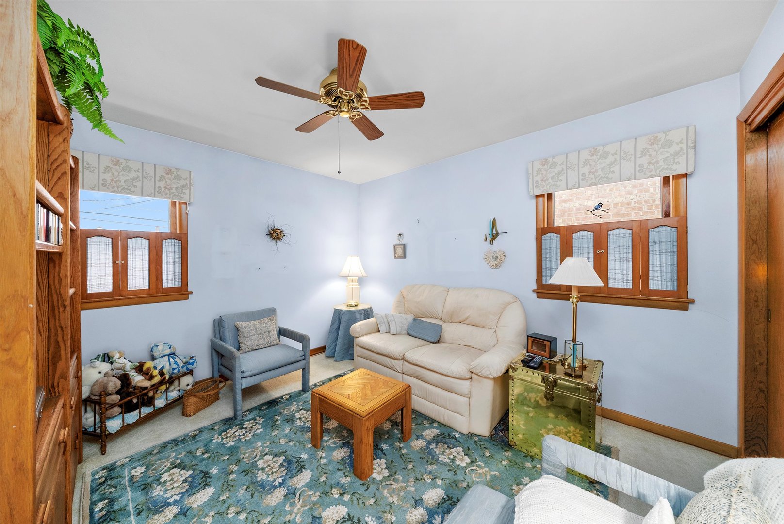 Fall in love with this well-cared-for, long-time family home-an estate sale showing true pride of ownership. This spacious raised ranch offers a bright living room with exposed hardwood floors, 3 good-sized bedrooms, and a spacious kitchen with dinette plus a full bath on the main level. Hardwood floors are also preserved underneath the carpeting in the bedrooms, just waiting to be uncovered. One of the main-level bedrooms is currently used as a cozy den/sitting room, offering flexible use for reading, relaxation, or a convenient home office. The full basement provides an abundance of additional living space, including a large recreation room, sitting area, and summer kitchen-ideal for possible related living. Spacious backyard with concrete patio for outdoor entertaining and a 2.5-car garage. Major improvements include roof (2015) and furnace, central air and hot water heater (2023). Additional features include flood control system, attic power vent/ fan, central humidifier, alarm system, and sprinkler system. Solid home with great bones in a convenient location. Estate sale-sold as-is, but exceptionally maintained.