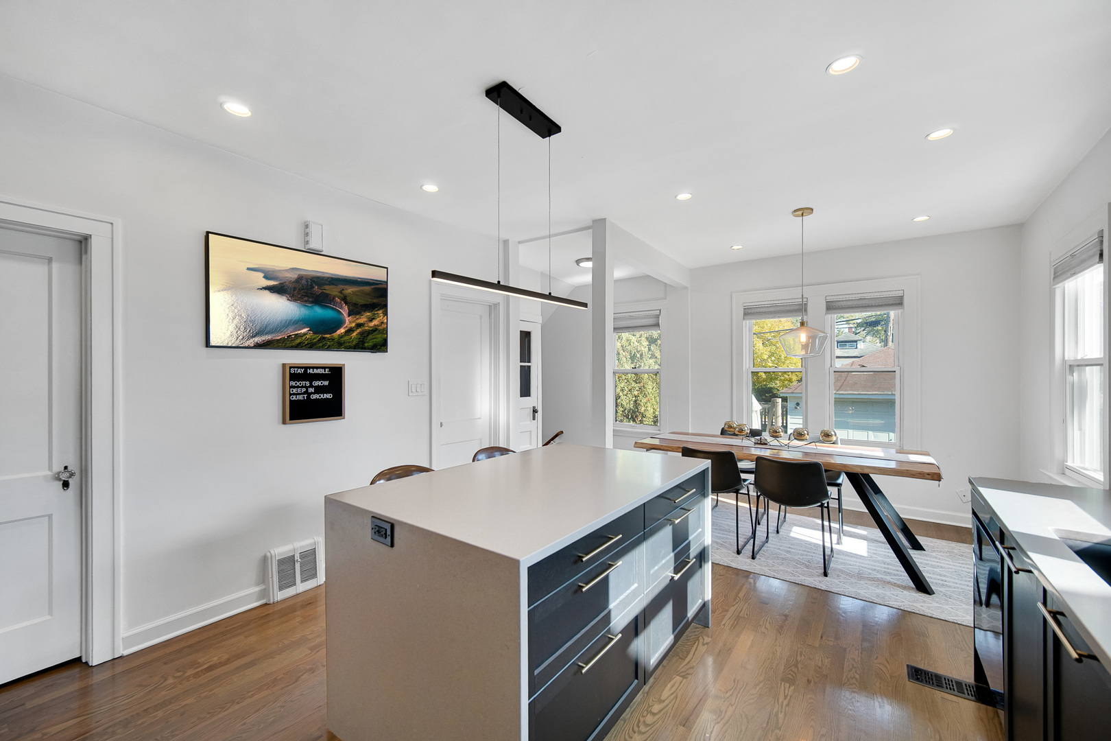Step into this beautifully restored Brookfield bungalow where timeless character meets modern comfort. Every detail has been thoughtfully designed. From the refinished hardwood floors and five original stained-glass windows to the fully finished lower level that doubles your living space. The inviting eat-in kitchen blends vintage warmth with contemporary upgrades, featuring graphite black GE appliances, a striking waterfall island, custom tile backsplash, Delta Contemporary pot filler, high-end Delta fixtures, and the home’s original built-in pantry. The updated bathroom offers a deep soaking tub, original hex-tile flooring, and elegant Delta fixtures. The lower level has been fully finished, adding a spacious family room. Additional updates include new Climate Guard windows with custom Levolor shades. Just a short walk to the Metra and downtown Brookfield, and located within the award-winning Lyons Township High School district. This is the perfect blend of vintage charm and modern living in one of Brookfield’s most sought-after locations.