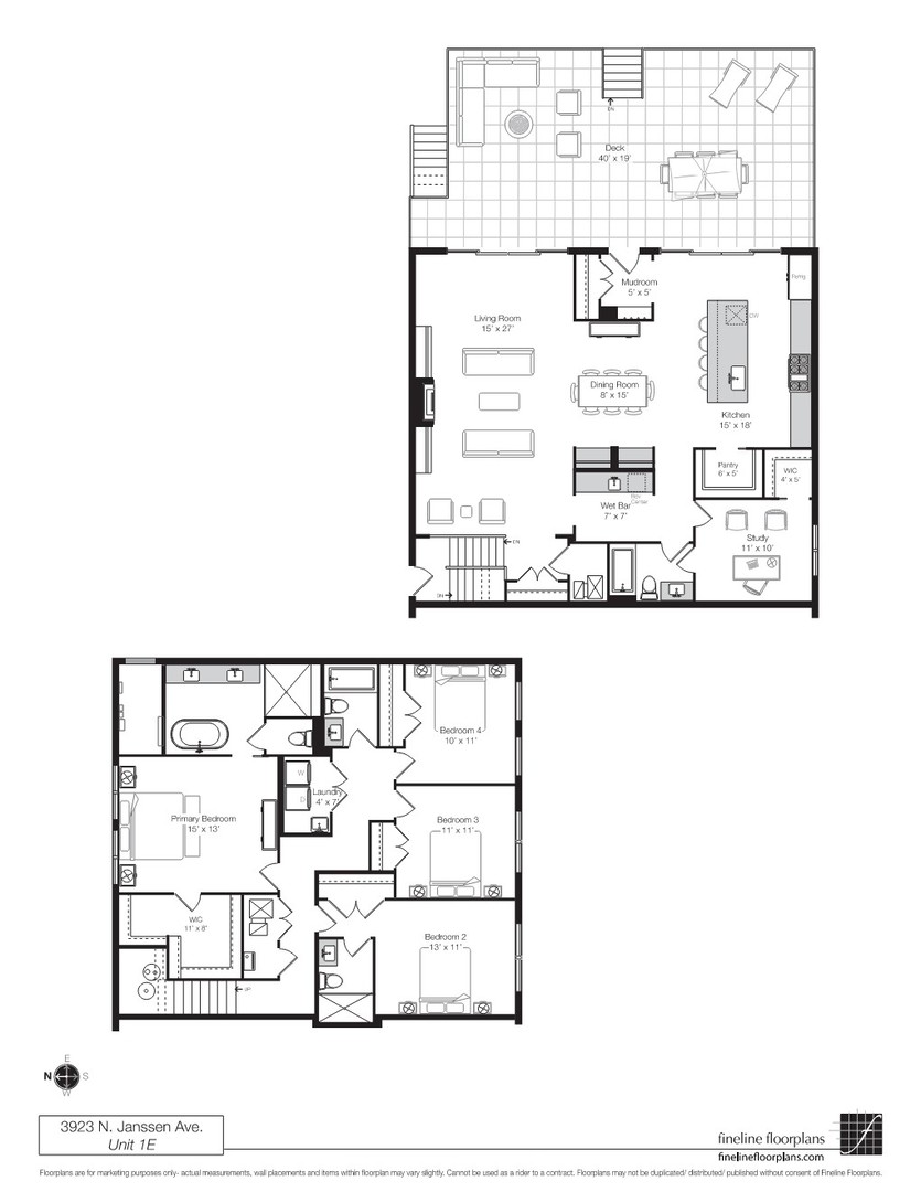 New construction 5BR / 4BA duplex-down in a great part of Lakeview, offering single-family-style living with high-end finishes throughout. The main level features an open-concept living and dining space and a chef’s kitchen with custom cabinetry, walk-in pantry, Sub-Zero & Wolf appliances, and oversized island. Enjoy a separate wet bar area with beverage center outdoor living with a massive private front terrace with porcelain pavers. The lower level includes radiant heated floors throughout and the large primary suite which offers a spa-inspired bath, soaking tub, separate shower, and custom walk-in closet. Four additional bedrooms provide flexible living options. Additional features include white oak floors, custom millwork, Marvin windows, advanced soundproofing, smart wiring, garage parking, and a prime Lakeview location near dining, parks, and transit. ANTICIPATED DELIVERY: JUNE 2026. *Images of completed project are of recent build by same developer. *Renderings and plans, etc. are for marketing purposes only; finishes/plans may change at the discretion of Seller. Buyer(s) and their representation to confirm all finishes prior to purchase. Buyer’s Broker must attend all showings/appointments.