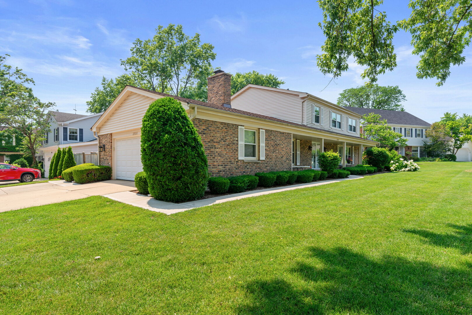 ***Great new price and such an excellent value*** Gracious colonial is nestled on a cul-de-sac lot in sought after Charlemagne! Greet your guests in the spacious foyer. Entertainment size living room and dining room with loads of windows. The sunny kitchen is well appointed with plenty of maple cabinets, corian counters, tumbled stone backsplash, Grohe faucet, and porcelain tile floor. The grand family room is the perfect place to relax with charming fireplace and sliders to the patio for grilling or easy indoor/outdoor entertaining. Upstairs you will be delighted by the lovely primary suite! En-suite bath boasts double vanity, spa like shower and walk-in-closet! Additional three large family bedrooms wtih great closet space served by the updated hall bath featuring a double vanity. New neutral carpet flows through the upstairs level. **Special feature** there is Hardwood under all carpet throughout the home! Huge basement is perfect storage or awaiting your finishing touches. Side load attached garage and additional parking apron. So many recent updates and improvements include: Architectural shingle roof 2014, 2nd floor carpet 2024, family room carpet 2022, refrigerator 2023, sump pump with battery backup 2021, Bosch dishwasher 2019, washer/dryer 2018, Furnace and A/C 2013, Windows/sliders, siding and gutters 2002! Enjoy your outdoor space and the beautiful professional landscaping from the charming front porch or the rear patio! District 27 schools and Glenbrook North High School! Close to metra, restaurants, shops and all the wonderful Northbrook parks and recreation facilities!