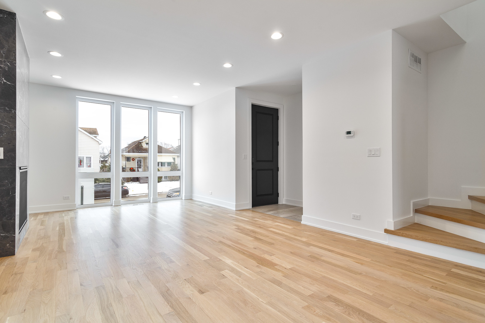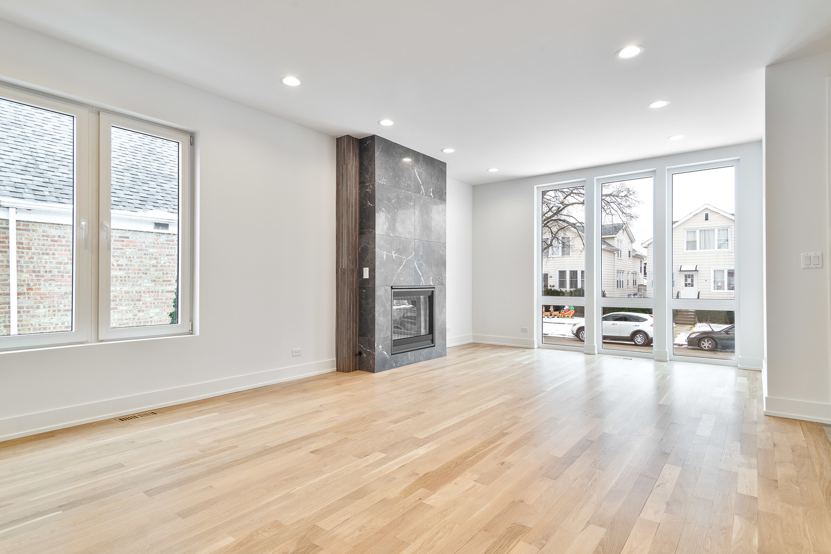 Contemporary 4 bedroom, 3.1 bath new construction single-family home on an extra wide lot. Spacious floor plan featuring design forward interiors. Open concept living/dining room with gas fireplace, floor to ceiling windows, and beautiful oak hardwood flooring. Entertainer’s kitchen with modern flat panel cabinetry, quartz countertops, peninsula with bar seating, butler pantry and walk-in and pantry. Adjoining family room with exit to backyard patio. Primary suite featuring 2 WIC’s, and private bath with frameless glass shower and large vanity with dual sinks. Two additional bedrooms, guest bath with dual sinks, tub and separate shower, and laundry with washer/dryer, cabinetry and sink complete the upper level. Finished lower level with nice ceiling heights and good natural light includes a spacious recreation room with wet bar, 4th bedroom, full bath with shower, second laundry hook-up, storage, and utilities. Enclosed yard with back patio plus detached two-car garage. Close to restaurants, entertainment, shopping, parks, nature preserves, golf courses, and other conveniences.