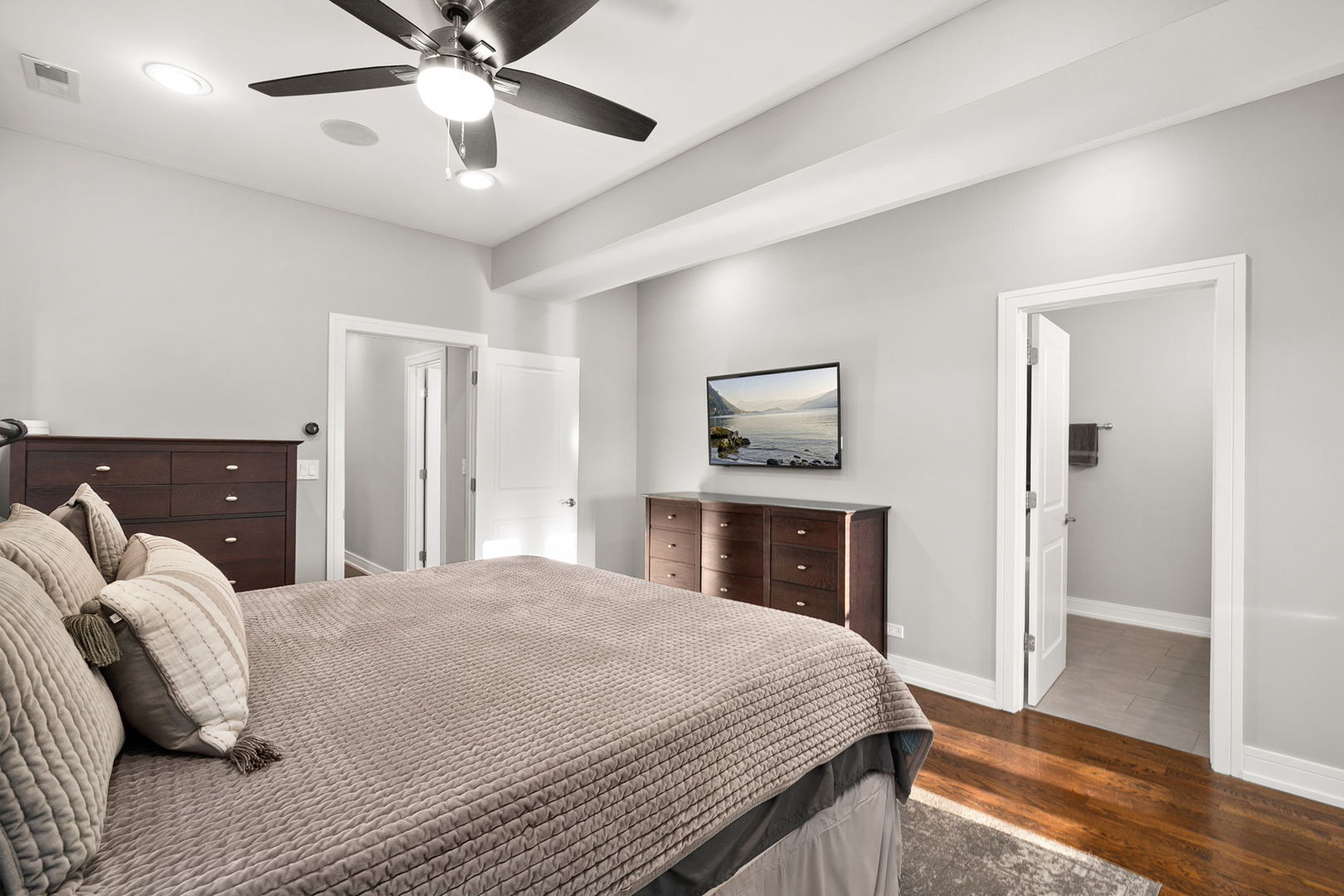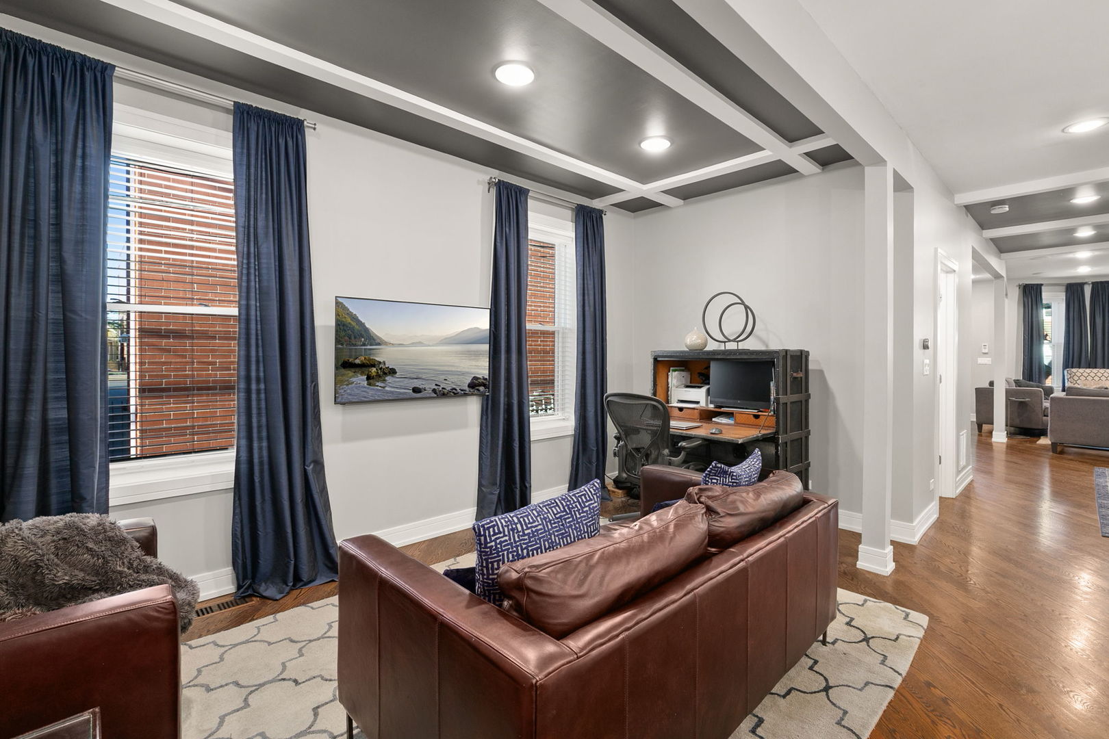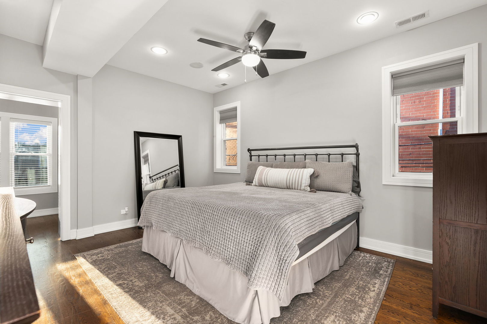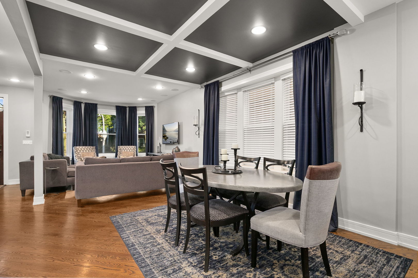 Step into this stunning all-brick, fully rehabbed home on a picturesque tree-lined street in the heart of Irving Park. The open floor plan features a chef’s kitchen with a large island, 42″ white cabinetry, marble countertops, stainless steel appliances, and a stylish backsplash that flows seamlessly into the living and dining areas with elegant coffered ceilings. Upstairs, the spacious primary suite boasts a custom walk-in closet and a spa-like bath with a walk-in shower, freestanding soaking tub, dual vanities, and heated floors. Two additional bedrooms and a full bathroom complete this level. The lower level offers a large recreation/family room, a full bathroom, and a fourth bedroom-perfect for guests, a home office or a gym. Enjoy the outdoors in your private urban oasis with a custom paver patio and beautifully landscaped yard. Additional highlights include a rare 3-car garage with side entrance and tall ceilings, deep casement window sills, a mudroom, dual-zone heating and cooling, second floor laundry plus hookups lower level and whole-home sound wiring. Unbeatable location with easy access to public transportation, highways, restaurants, shops, parks, and more!