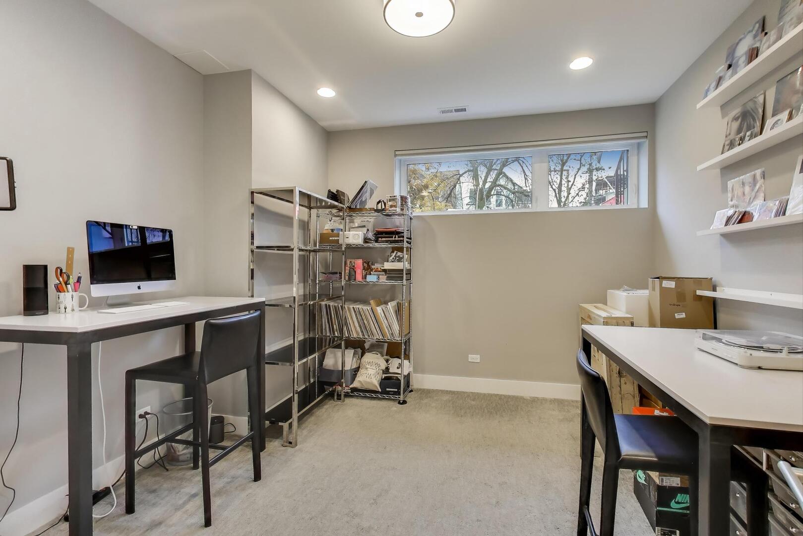 Experience refined living in this 4-bedroom, 3.1-bath masterpiece built in 2018 by MK Construction. Designed for modern lifestyles, the home boasts soaring ceilings, hardwood floors, and seamless indoor-outdoor flow. The chef’s kitchen features Bosch appliances, quartz counters, designer backsplash, shaker cabinetry, and a generous island-perfect for entertaining. The primary suite is a private retreat with dual closets and a spa-inspired bath offering heated floors, frameless glass shower, and designer finishes. Upstairs includes two additional bedrooms, a second full bath with heated floors and dual vanity, and a dedicated laundry room. The lower level is an entertainer’s dream: custom bar with wine and beverage fridges, dishwasher, and large storage room that includes a full-size refrigerator and ice maker. Additional highlights include skylights, wired sound and security intercom. Fully landscaped and fenced yard, with private back garden patio and a detached 2-car garage. Located on a serene block near Horner Park and McFetridge, with easy access to Downtown and O’Hare. Move-in ready and loaded with upgrades-this is luxury living at its finest.