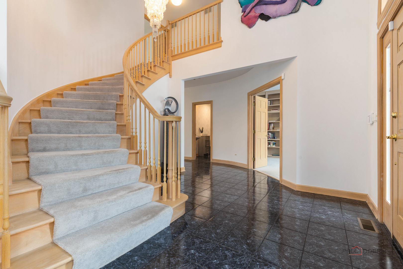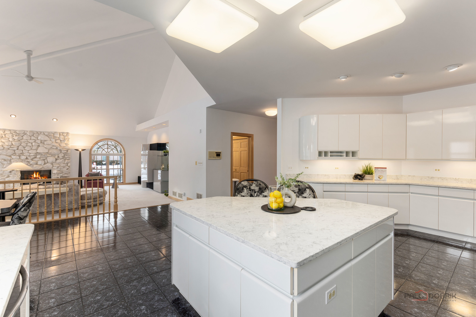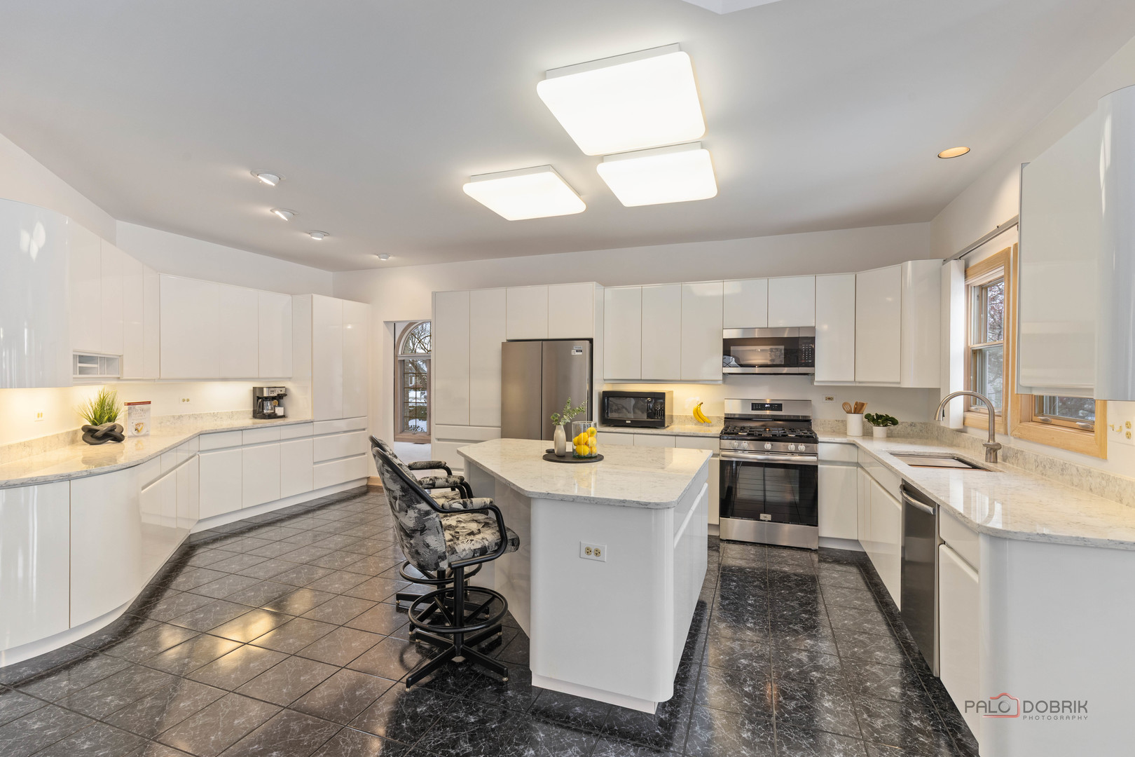 Nestled within the highly sought-after and award-winning Stevenson High School district, this beautifully appointed 5-bedroom, 3.1-bath home offers an exceptional blend of comfort, style, and functionality. From the moment you step inside, the impressive two-story foyer welcomes you with abundant natural light and a sense of spaciousness that flows throughout the home. To the left of the foyer, a spacious living room invites you to unwind beside a cozy fireplace, creating a warm and inviting atmosphere. This room seamlessly transitions into the expansive formal dining room, an ideal setting for hosting dinner parties, holiday celebrations, or intimate gatherings. The heart of the home lies in the well-equipped kitchen, designed to meet the needs of everyday living and culinary creativity. It features an island with a breakfast bar for casual dining, brand-new stainless-steel appliances, brand-new quartz countertops, and an abundance of cabinetry offering ample storage. The bright eating area, surrounded by windows, fills the space with warm natural light and grants direct access to the patio, making outdoor dining and entertaining simple and convenient. Adjacent to the kitchen, the cozy yet spacious family room serves as a comfortable retreat for relaxing evenings. Highlighted by a beautiful fireplace, this room is perfect for gathering with loved ones or enjoying a quiet night at home. The main level is completed by a private office ideal for remote work, study, or creative pursuits. A well-appointed laundry room with direct garage access adds everyday convenience, while a stylish half bath rounds out the main floor. Upstairs, the serene primary suite offers a luxurious escape, featuring a generous sitting area perfect for lounging or unwinding with a book. The walk-in closet provides ample space for wardrobe organization, and the ensuite bathroom enhances the retreat with two separate vanities, a soothing soaking tub, a real bidet, and a separate shower for maximum comfort and convenience. Three additional spacious bedrooms, each with its own walk-in closet, provide versatility for family, guests, or hobbies. A full hallway bath serves these bedrooms with ease and functionality. The fully finished lower level expands your living space even further, offering endless possibilities for entertainment and recreation. Highlights include a second full kitchen, a dedicated game area, a large recreation room complete with a wet bar, a full bathroom, and an additional fifth bedroom or an office, exercise area, or hobby space. The brick paver patio includes a long walkway connecting to the garage side door and driveway! Additional standout features include R38 insulation throughout the home and attic for enhanced energy efficiency, as well as UL-listed lightning protection for added peace of mind. Ideally located just minutes from parks, shopping, and restaurants, this home combines comfort, convenience, and exceptional value.