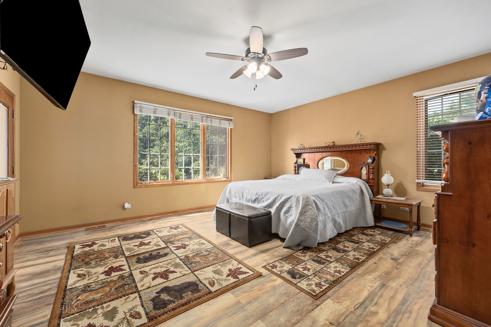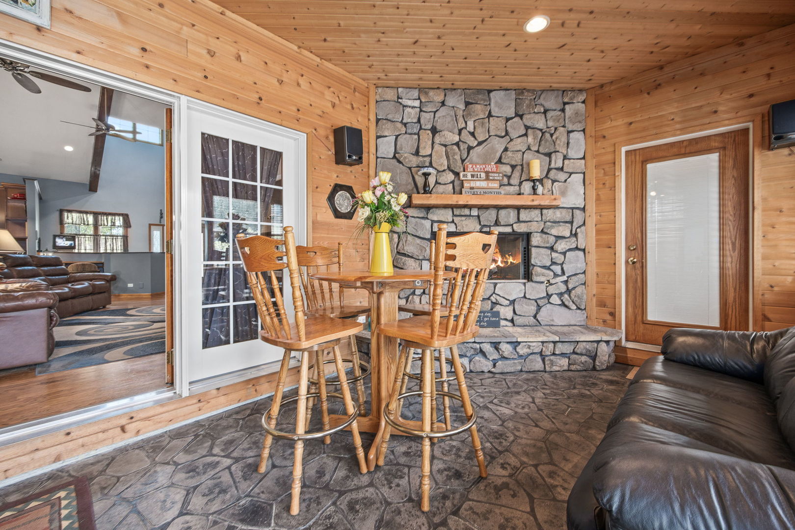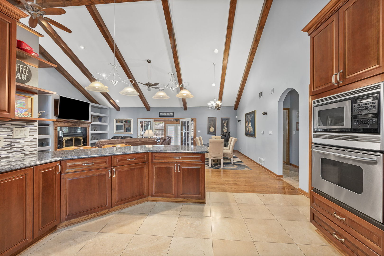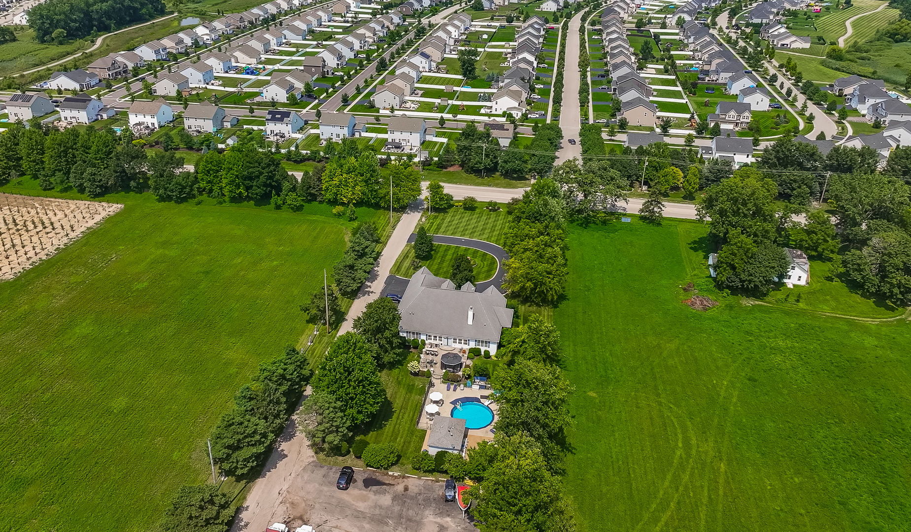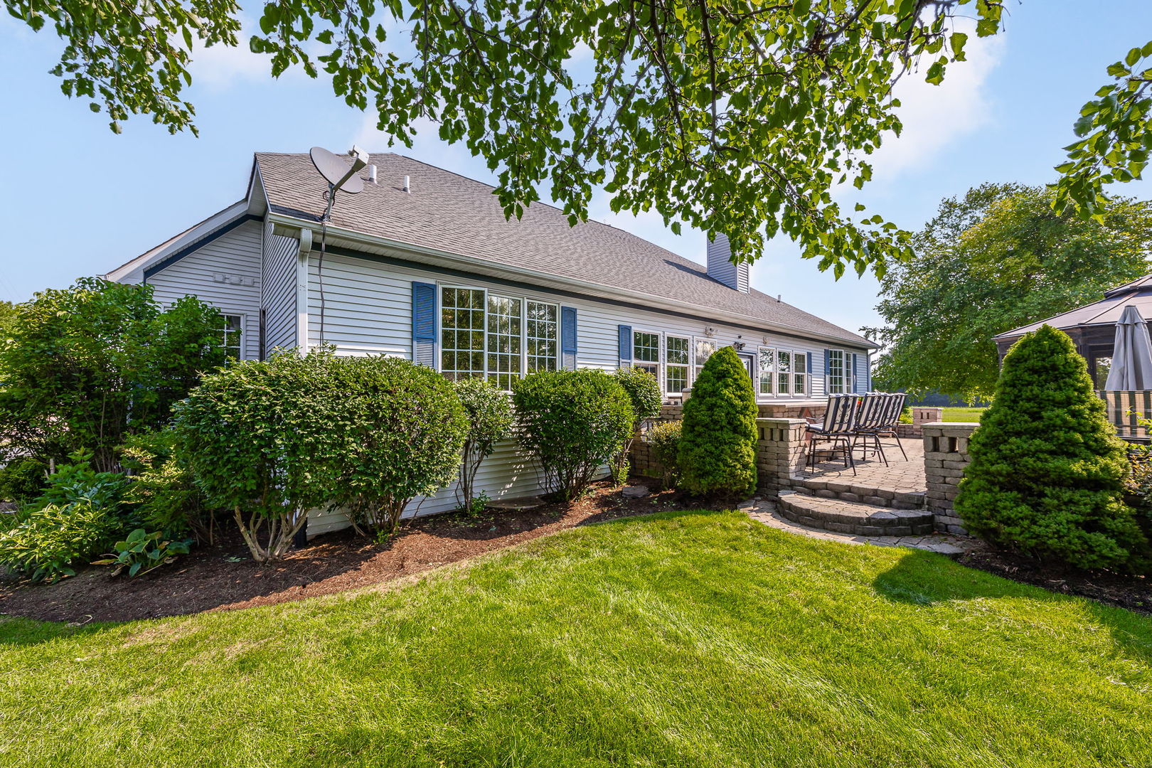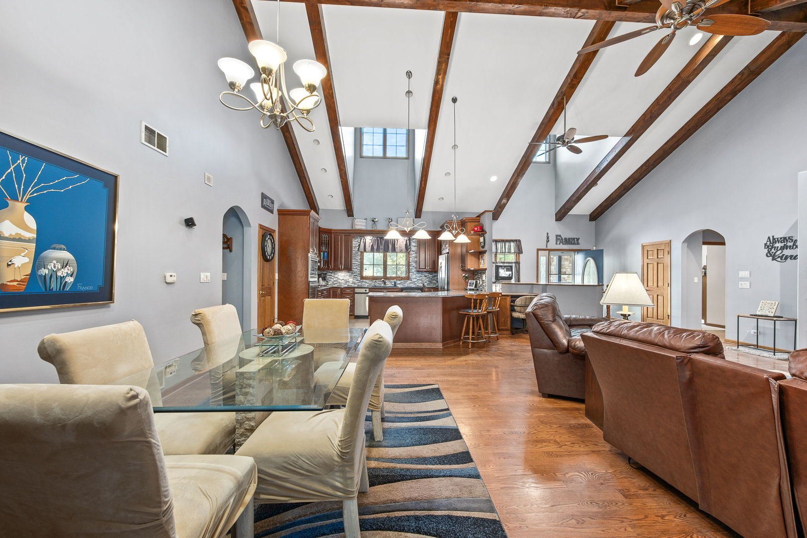 Escape to your own private sanctuary set on over 2 acres of peaceful land. Tucked away beyond a private driveway and elegant circular entrance, this exquisite custom-built brick ranch is perfectly nestled on a sprawling rural lot, embraced by a tranquil forest preserve and a picturesque tree farm. Whether you envision serene country living or require ample space for a home-based business, this exceptional property offers it all including a substantial pole barn with generous room for equipment, recreational vehicles, or prized collections. The expansive grounds open up endless possibilities for multi-use living, recreation, or expansion. Step inside and be captivated by soaring cathedral ceilings and striking exposed wood beams in the great room, where rustic charm meets refined design. The heart of the home boasts a spacious, well-appointed chef’s kitchen designed for both functionality and effortless entertaining. Gleaming hardwood floors, strategically placed overstory windows, and a wealth of natural light flow seamlessly throughout, enhancing the warmth and elegance of every room. The main level is thoughtfully designed with two luxurious primary suites, each featuring their own inspired spa baths, a cozy fireplace and custom walk-in closets ideal for multi-generational living or hosting with sophistication and comfort. A third bedroom, complete with its own private en-suite bath, offers an inviting retreat for guests. Built-in shelving adds tasteful charm and convenience to the home’s overall aesthetic. Through glass French doors, extend your living experience into a beautifully enclosed Florida/Sun Room with heated floors-an all-season escape. Entertain in style or unwind in the fully finished lower level, a true extension of the home’s luxurious living space. Featuring a full bar, kitchenette, heated floors, a stylish tiled fireplace, additional bedroom, and full bathroom, this space provides exceptional versatility perfectly suited for an in-law suite or a private haven for a family member seeking independence. Outdoors, enjoy a sweeping brick paver patio with a built-in grill, ideal for al fresco dining and entertaining. Take a dip in the sparkling in-ground pool, retreat to your private pool house, or find peace in the calming sounds of your own waterfall pond. Completing this extraordinary offering is a heated three-car garage, combining practicality with luxury. This is more than a home it’s an experience. A destination where refined rustic, comfort, and versatility converge to create resort-style living at its finest. Located in a quiet neighborhood with walking trails, parks, and just minutes from I-90, shopping, and dining.