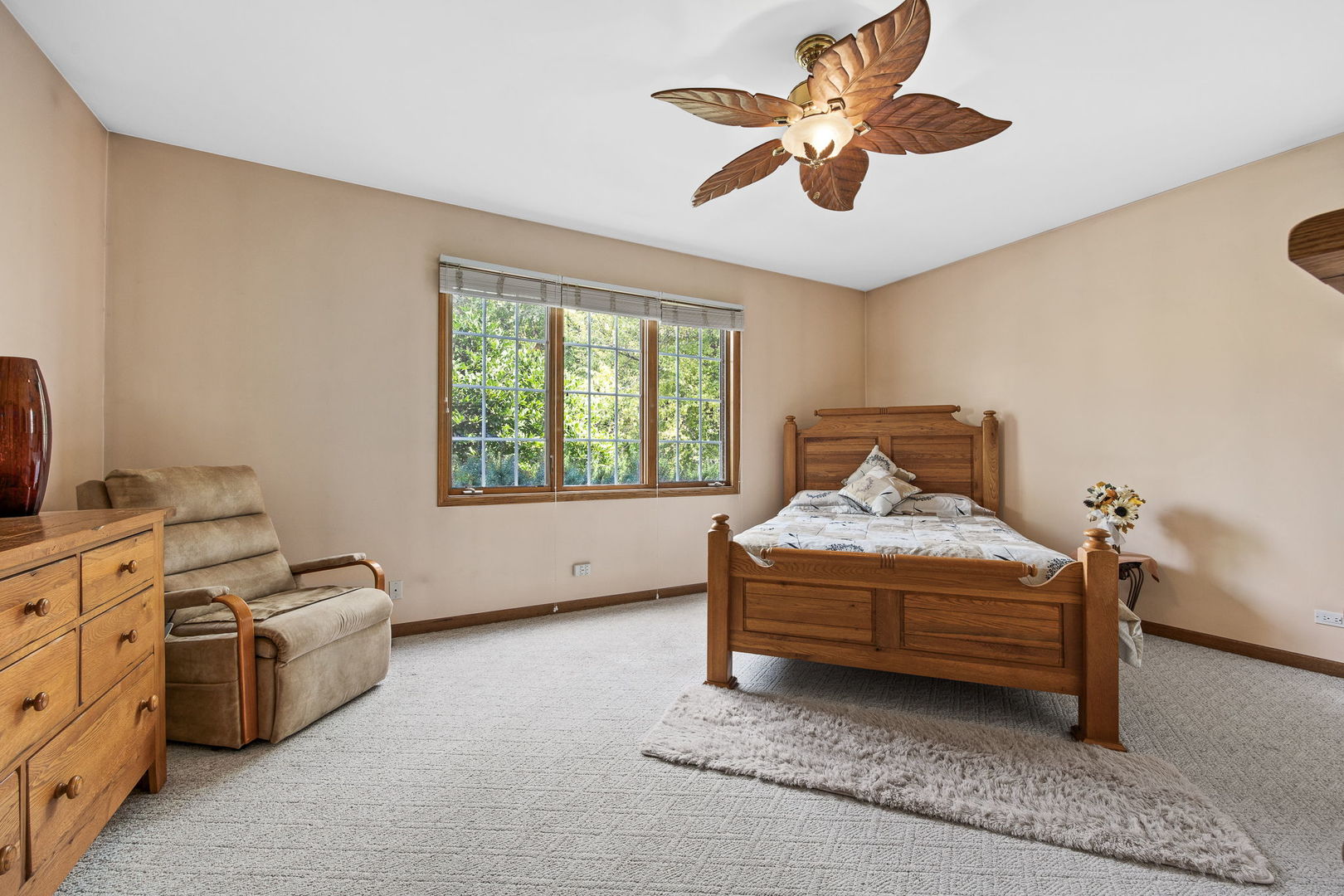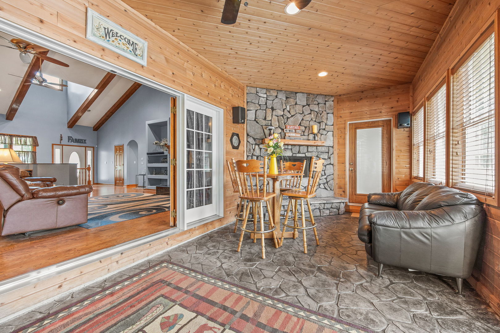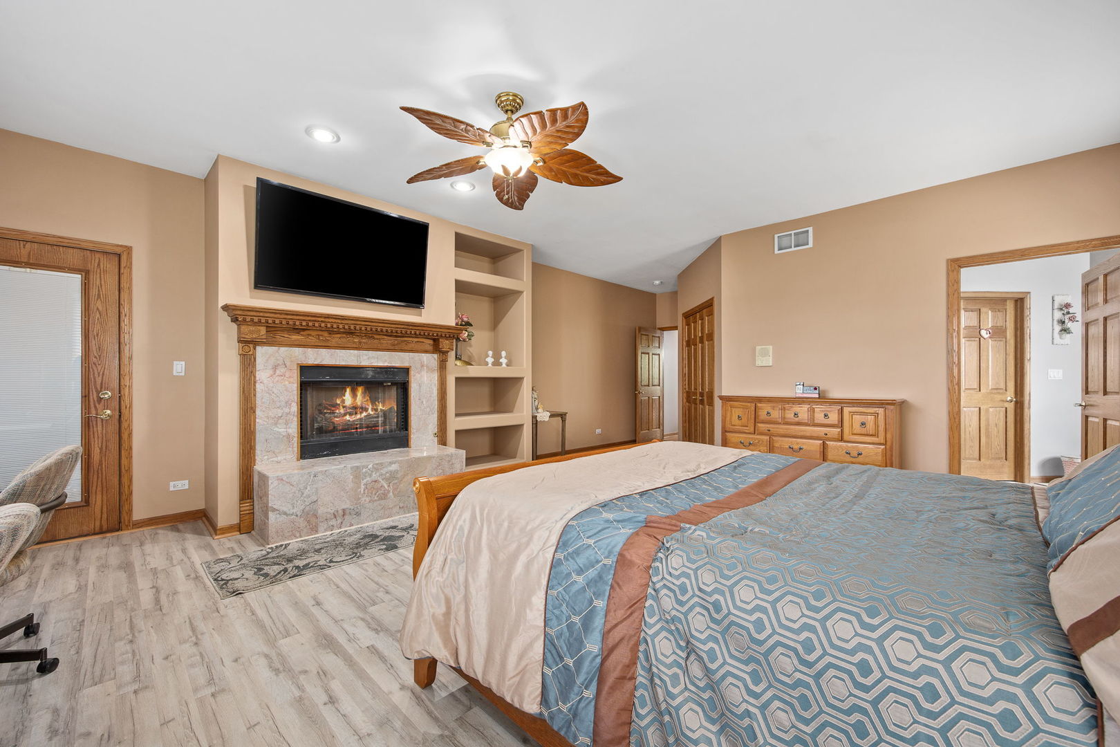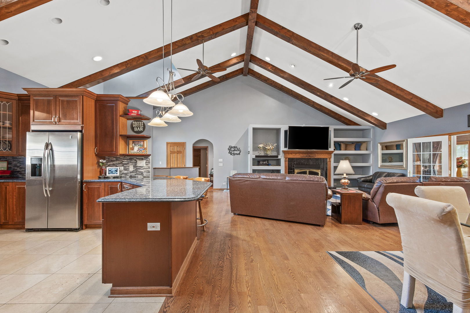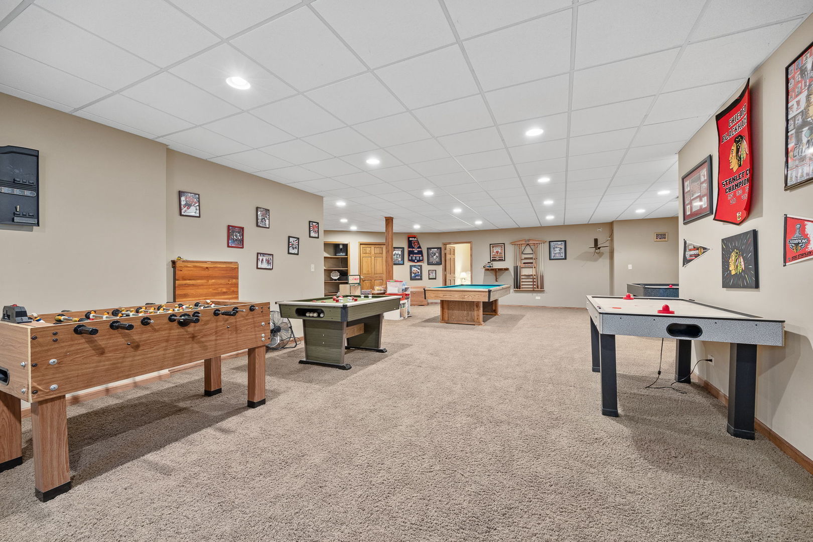 Escape to your own private sanctuary set on over 2 acres of peaceful land. Tucked away beyond a private driveway and elegant circular entrance, this exquisite custom-built brick ranch is perfectly nestled on a sprawling rural lot, embraced by a tranquil forest preserve and a picturesque tree farm. Whether you envision serene country living or require ample space for a home-based business, this exceptional property offers it all including a substantial pole barn with generous room for equipment, recreational vehicles, or prized collections. The expansive grounds open up endless possibilities for multi-use living, recreation, or expansion. Step inside and be captivated by soaring cathedral ceilings and striking exposed wood beams in the great room, where rustic charm meets refined design. The heart of the home boasts a spacious, well-appointed chef’s kitchen designed for both functionality and effortless entertaining. Gleaming hardwood floors, strategically placed overstory windows, and a wealth of natural light flow seamlessly throughout, enhancing the warmth and elegance of every room. The main level is thoughtfully designed with two luxurious primary suites, each featuring their own inspired spa baths, a cozy fireplace and custom walk-in closets ideal for multi-generational living or hosting with sophistication and comfort. A third bedroom, complete with its own private en-suite bath, offers an inviting retreat for guests. Built-in shelving adds tasteful charm and convenience to the home’s overall aesthetic. Through glass French doors, extend your living experience into a beautifully enclosed Florida/Sun Room with heated floors-an all-season escape. Entertain in style or unwind in the fully finished lower level, a true extension of the home’s luxurious living space. Featuring a full bar, kitchenette, heated floors, a stylish tiled fireplace, additional bedroom, and full bathroom, this space provides exceptional versatility perfectly suited for an in-law suite or a private haven for a family member seeking independence. Outdoors, enjoy a sweeping brick paver patio with a built-in grill, ideal for al fresco dining and entertaining. Take a dip in the sparkling in-ground pool, retreat to your private pool house, or find peace in the calming sounds of your own waterfall pond. Completing this extraordinary offering is a heated three-car garage, combining practicality with luxury. This is more than a home it’s an experience. A destination where refined rustic, comfort, and versatility converge to create resort-style living at its finest. Located in a quiet neighborhood with walking trails, parks, and just minutes from I-90, shopping, and dining.