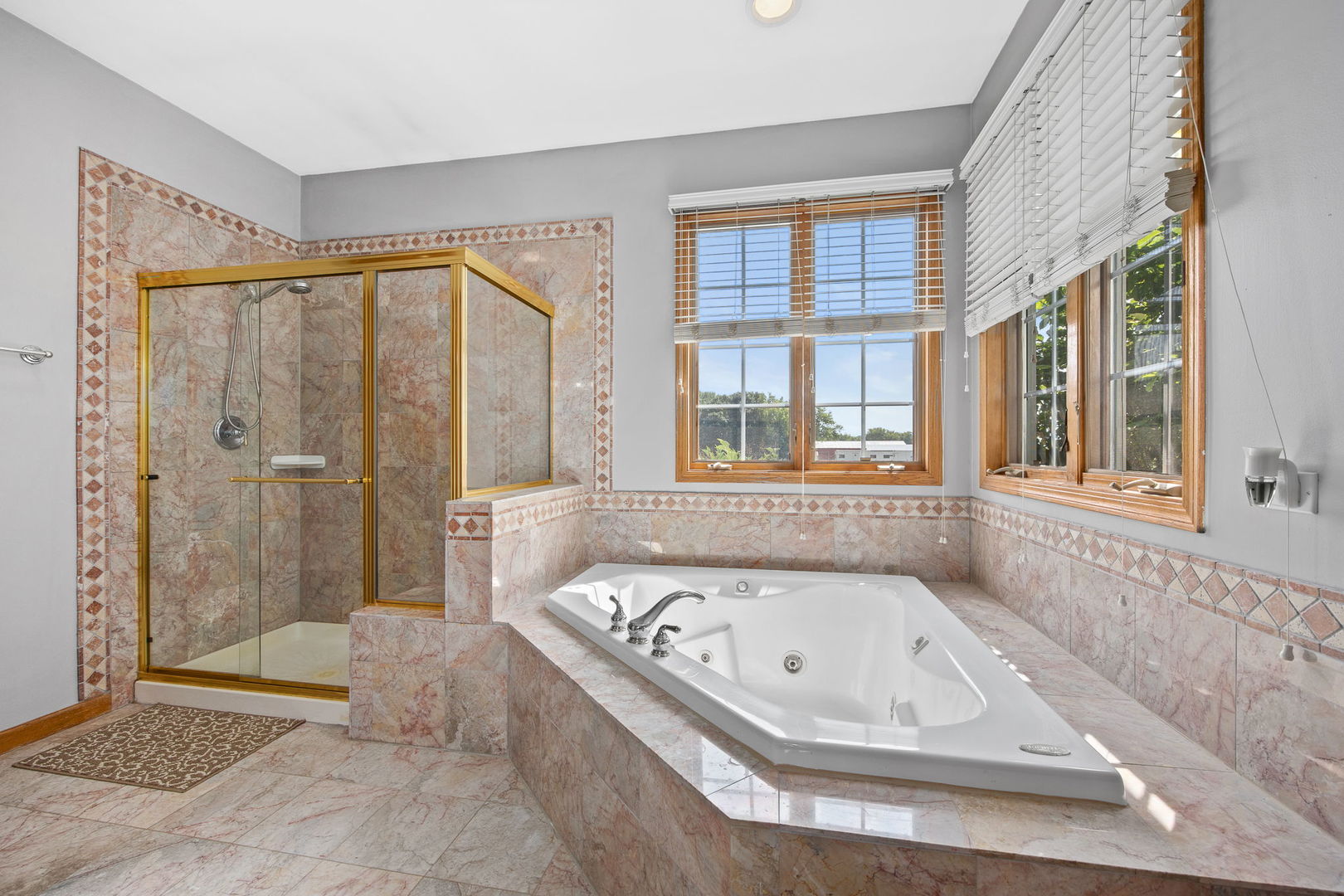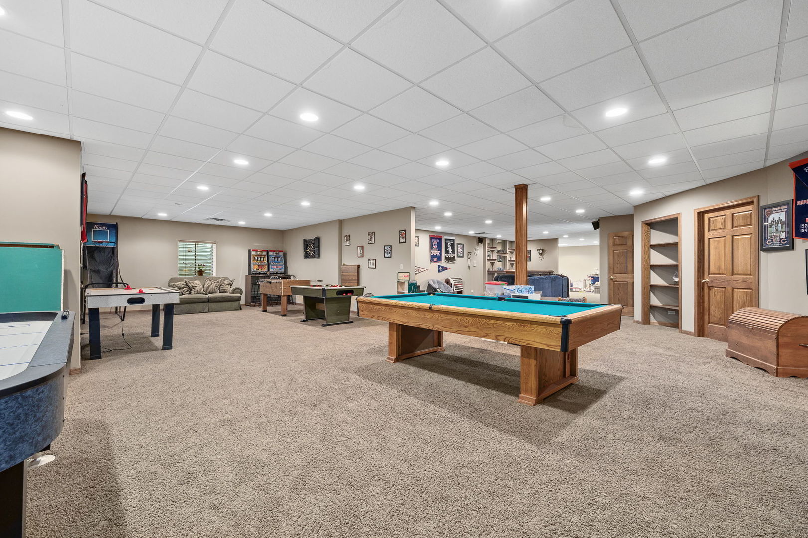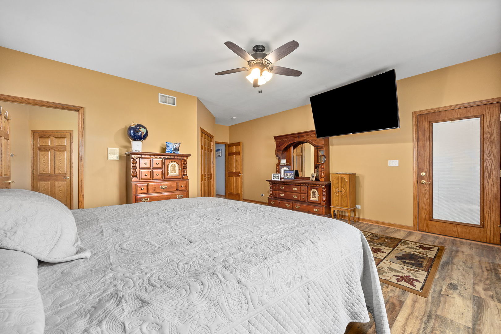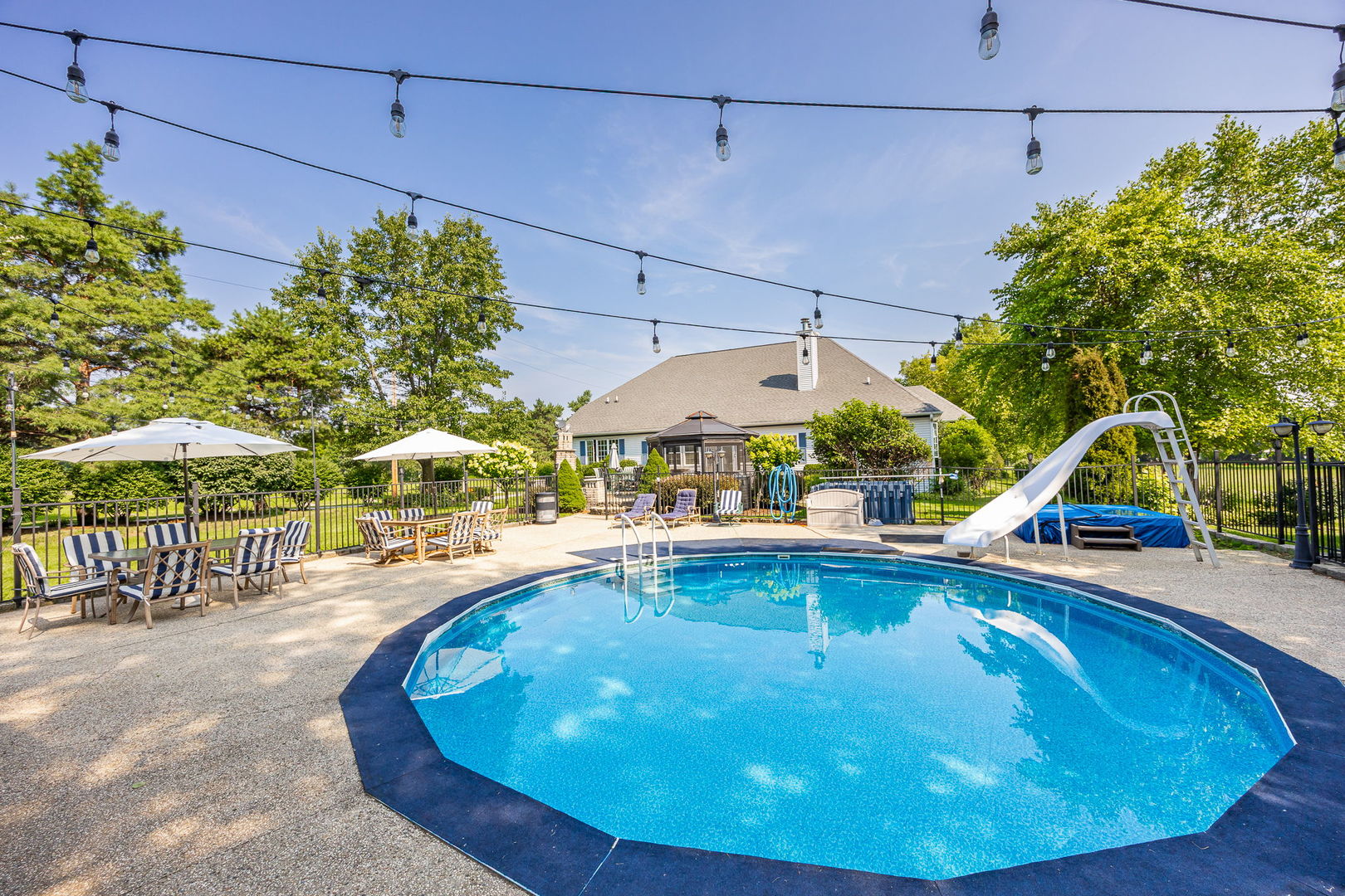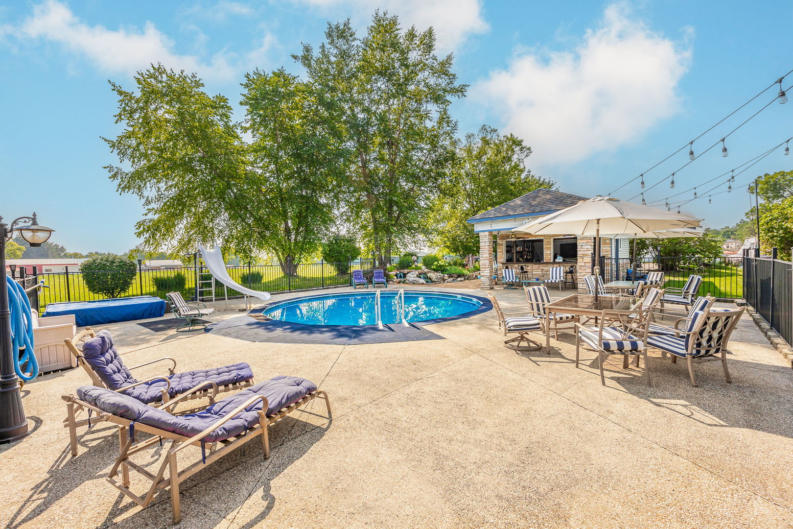 Escape to your own private sanctuary set on over 2 acres of peaceful land. Tucked away beyond a private driveway and elegant circular entrance, this exquisite custom-built brick ranch is perfectly nestled on a sprawling rural lot, embraced by a tranquil forest preserve and a picturesque tree farm. Whether you envision serene country living or require ample space for a home-based business, this exceptional property offers it all including a substantial pole barn with generous room for equipment, recreational vehicles, or prized collections. The expansive grounds open up endless possibilities for multi-use living, recreation, or expansion. Step inside and be captivated by soaring cathedral ceilings and striking exposed wood beams in the great room, where rustic charm meets refined design. The heart of the home boasts a spacious, well-appointed chef’s kitchen designed for both functionality and effortless entertaining. Gleaming hardwood floors, strategically placed overstory windows, and a wealth of natural light flow seamlessly throughout, enhancing the warmth and elegance of every room. The main level is thoughtfully designed with two luxurious primary suites, each featuring their own inspired spa baths, a cozy fireplace and custom walk-in closets ideal for multi-generational living or hosting with sophistication and comfort. A third bedroom, complete with its own private en-suite bath, offers an inviting retreat for guests. Built-in shelving adds tasteful charm and convenience to the home’s overall aesthetic. Through glass French doors, extend your living experience into a beautifully enclosed Florida/Sun Room with heated floors-an all-season escape. Entertain in style or unwind in the fully finished lower level, a true extension of the home’s luxurious living space. Featuring a full bar, kitchenette, heated floors, a stylish tiled fireplace, additional bedroom, and full bathroom, this space provides exceptional versatility perfectly suited for an in-law suite or a private haven for a family member seeking independence. Outdoors, enjoy a sweeping brick paver patio with a built-in grill, ideal for al fresco dining and entertaining. Take a dip in the sparkling in-ground pool, retreat to your private pool house, or find peace in the calming sounds of your own waterfall pond. Completing this extraordinary offering is a heated three-car garage, combining practicality with luxury. This is more than a home it’s an experience. A destination where refined rustic, comfort, and versatility converge to create resort-style living at its finest. Located in a quiet neighborhood with walking trails, parks, and just minutes from I-90, shopping, and dining.