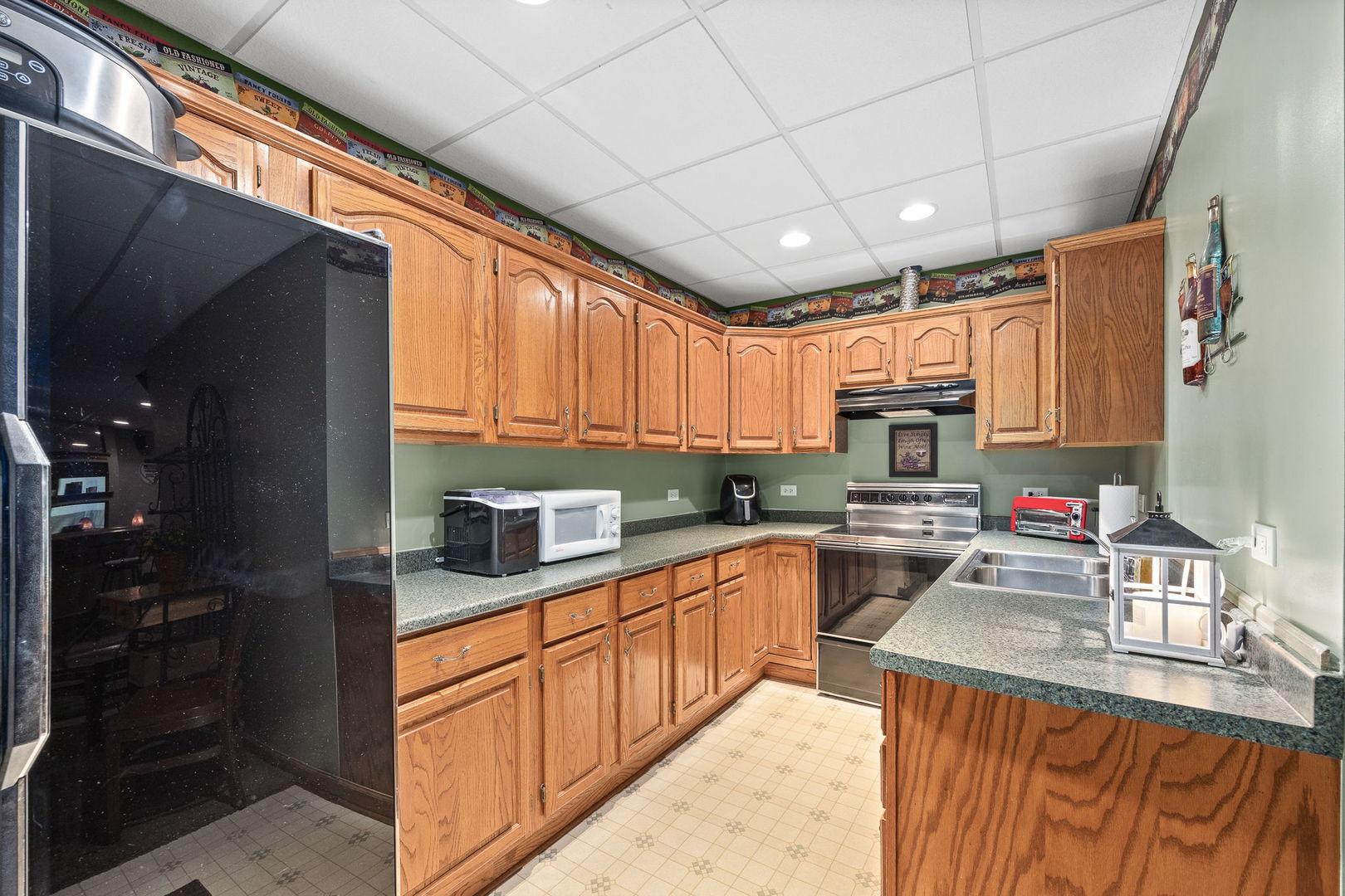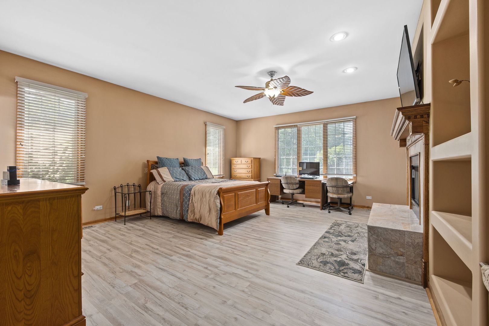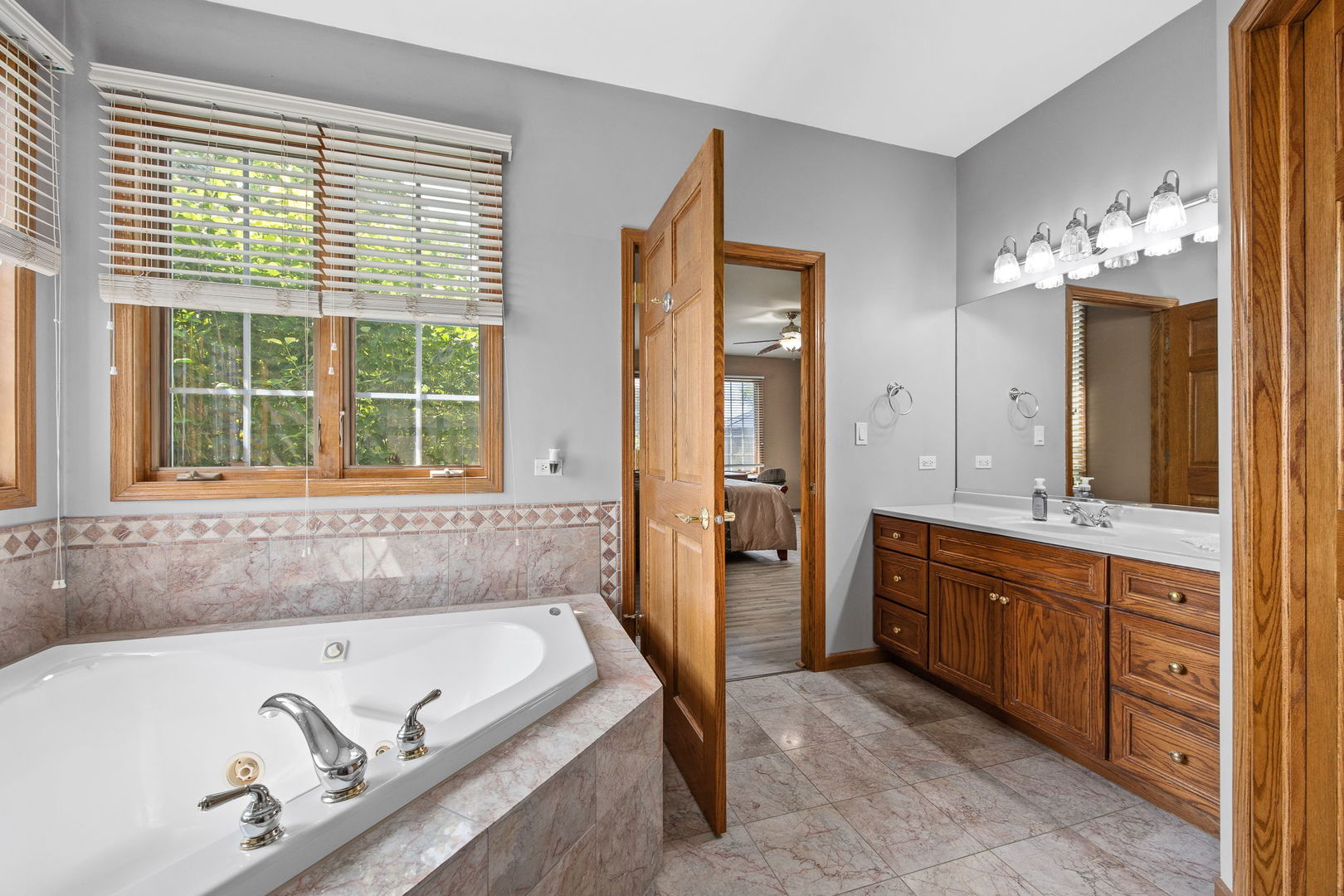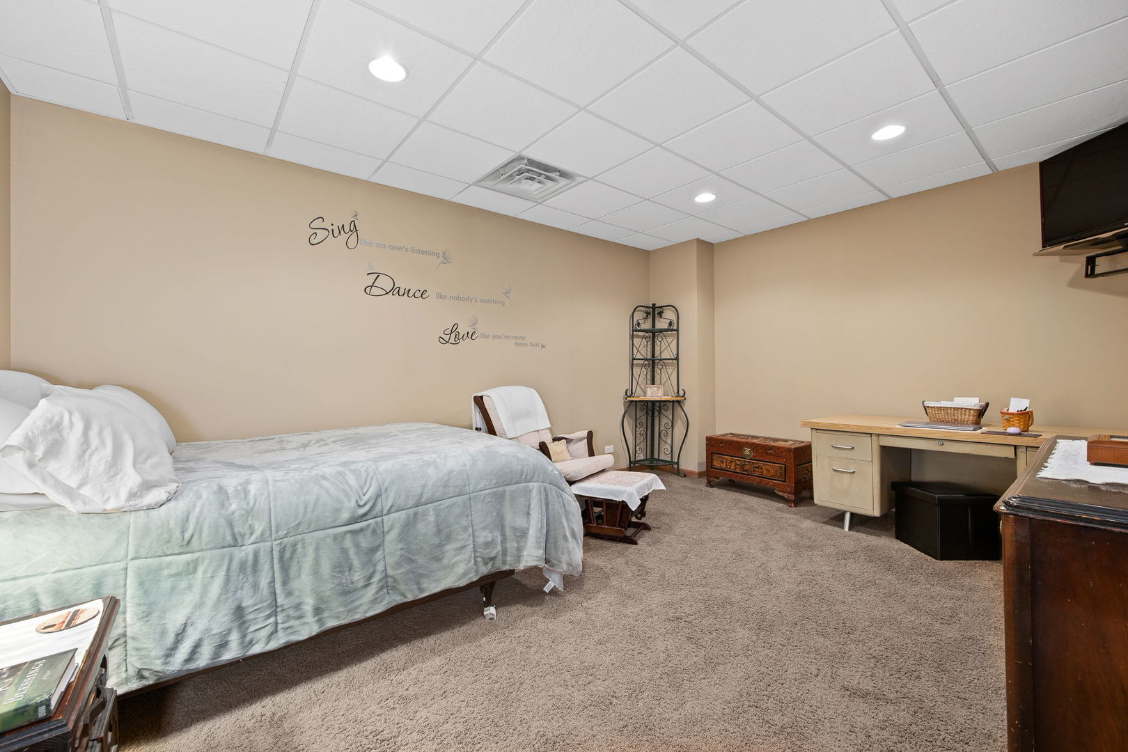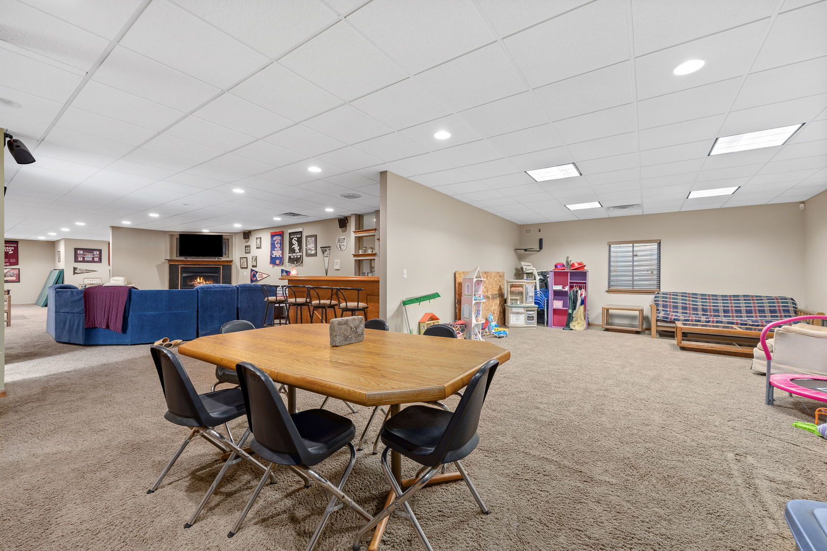 Escape to your own private sanctuary set on over 2 acres of peaceful land. Tucked away beyond a private driveway and elegant circular entrance, this exquisite custom-built brick ranch is perfectly nestled on a sprawling rural lot, embraced by a tranquil forest preserve and a picturesque tree farm. Whether you envision serene country living or require ample space for a home-based business, this exceptional property offers it all including a substantial pole barn with generous room for equipment, recreational vehicles, or prized collections. The expansive grounds open up endless possibilities for multi-use living, recreation, or expansion. Step inside and be captivated by soaring cathedral ceilings and striking exposed wood beams in the great room, where rustic charm meets refined design. The heart of the home boasts a spacious, well-appointed chef’s kitchen designed for both functionality and effortless entertaining. Gleaming hardwood floors, strategically placed overstory windows, and a wealth of natural light flow seamlessly throughout, enhancing the warmth and elegance of every room. The main level is thoughtfully designed with two luxurious primary suites, each featuring their own inspired spa baths, a cozy fireplace and custom walk-in closets ideal for multi-generational living or hosting with sophistication and comfort. A third bedroom, complete with its own private en-suite bath, offers an inviting retreat for guests. Built-in shelving adds tasteful charm and convenience to the home’s overall aesthetic. Through glass French doors, extend your living experience into a beautifully enclosed Florida/Sun Room with heated floors-an all-season escape. Entertain in style or unwind in the fully finished lower level, a true extension of the home’s luxurious living space. Featuring a full bar, kitchenette, heated floors, a stylish tiled fireplace, additional bedroom, and full bathroom, this space provides exceptional versatility perfectly suited for an in-law suite or a private haven for a family member seeking independence. Outdoors, enjoy a sweeping brick paver patio with a built-in grill, ideal for al fresco dining and entertaining. Take a dip in the sparkling in-ground pool, retreat to your private pool house, or find peace in the calming sounds of your own waterfall pond. Completing this extraordinary offering is a heated three-car garage, combining practicality with luxury. This is more than a home it’s an experience. A destination where refined rustic, comfort, and versatility converge to create resort-style living at its finest. Located in a quiet neighborhood with walking trails, parks, and just minutes from I-90, shopping, and dining.