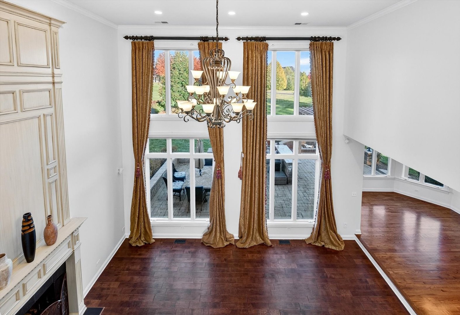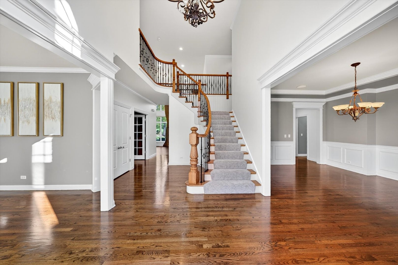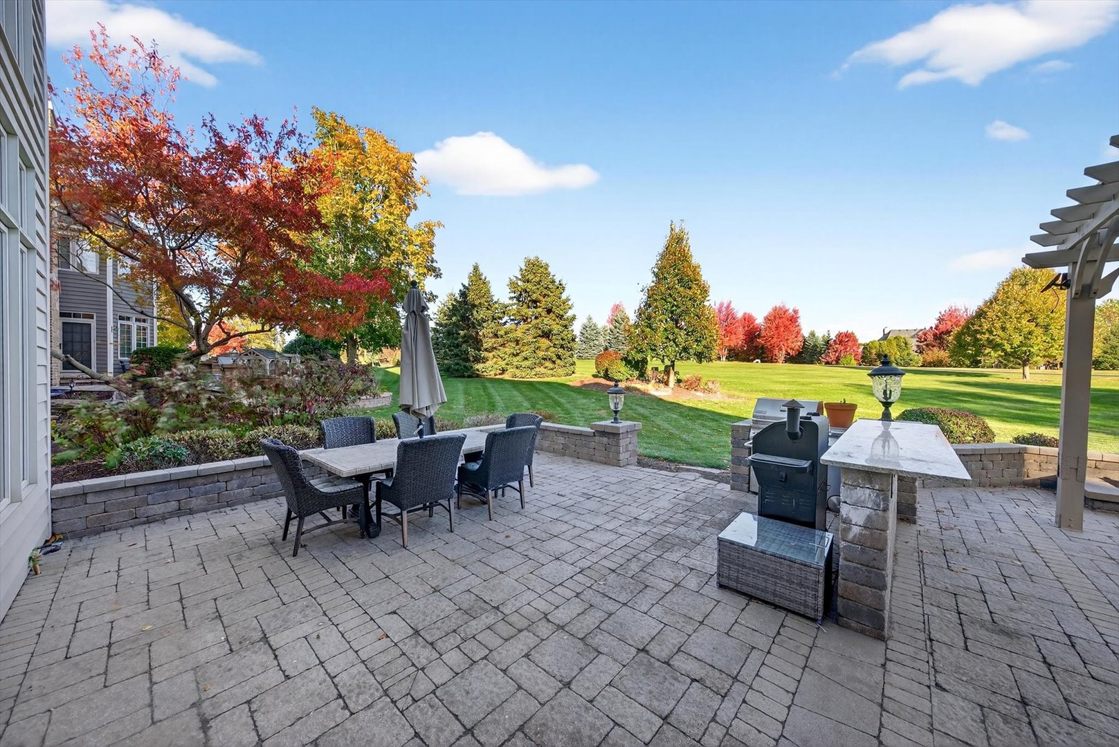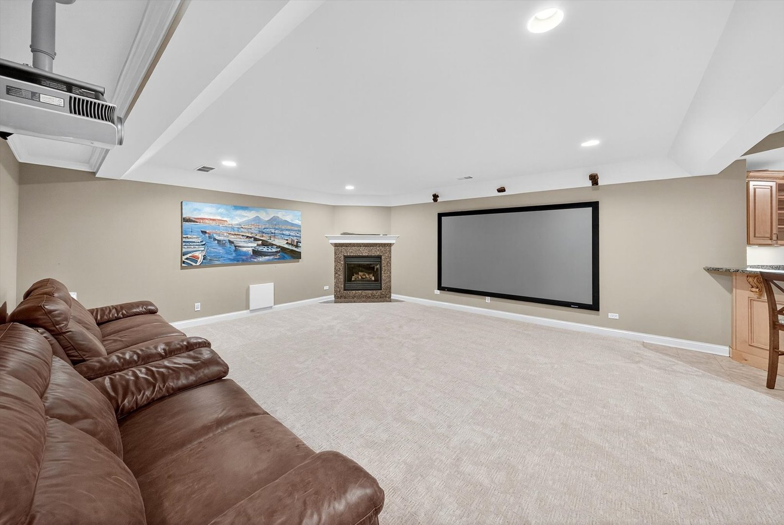 Welcome to your next chapter in this stunning five-bedroom, four-and-a-half-bathroom home that perfectly balances sophistication with everyday comfort. Located in the sought-after Fox Mill Subdivision, this custom model residence sits on a premium lot where mature landscaping meets thoughtful design. Every detail, from the professional-grade kitchen to the opulent bathrooms, reflects meticulous craftsmanship and upscale finishes. The interior spaces exude gracefulness and sophistication, offering a harmonious blend of comfort and style. Every detail has been meticulously designed to create an atmosphere of grandeur and extravagance. Enter through the formal entry and discover flowing living spaces that invite both quiet moments and lively gatherings. The completely remodeled kitchen takes center stage with refined finishes, a modern layout, and gleaming high end stainless-steel appliances that enhance the cooking experience. Adjacent casual dining and entertaining zones create the perfect backdrop for everything from morning coffee to dinner parties. Fresh paint throughout provides a crisp, clean canvas ready for your personal touch, while new carpet and luxury vinyl plank flooring in the bedrooms offer the perfect blend of comfort and durability. The luxurious primary suite serves as your personal retreat, featuring an elegant wet bar perfect for evening nightcaps and morning refreshments. Step into the spa-like primary bathroom where a full body spray shower system delivers a resort-quality experience, while the indulgent whirlpool tub transforms daily routines into relaxation rituals. Additional bedrooms feature thoughtful appointments that create restful retreats. Throughout the home, a whole house speaker system with surround sound creates the perfect ambiance for any occasion. The finished basement takes this home to the next level with its own kitchenette, home theater space with surround sound system, home gym with equipment, and ample storage. The entertainment possibilities are endless in the state-of-the-art finished basement! Recent updates demonstrate exceptional care and provide peace of mind. The new roof installed in 2020 protects your investment, while dual air conditioning units from the same year work in perfect harmony with two new furnaces also installed in 2020 to create a complete, modern heating and cooling system that ensures year-round comfort throughout every corner of the home. Updated water heaters from 2019 mean reliable hot showers for everyone, and fresh exterior paint from 2022 boosts curb appeal effortlessly. The cutting-edge smart sprinkler system brings technology to your fingertips, allowing you to control and monitor your lawn care from anywhere using your smartphone app. Fox Mill’s community amenities include a clubhouse, pool, mature landscaping, scenic open spaces, and convenient walking trails. Located near downtown St. Charles and Geneva, you’ll enjoy small-town charm with easy access to shopping, dining, and recreation. This turnkey home represents the ideal intersection of luxury and livability, where quality upgrades meet comfortable living in one of the area’s most desirable neighborhoods.