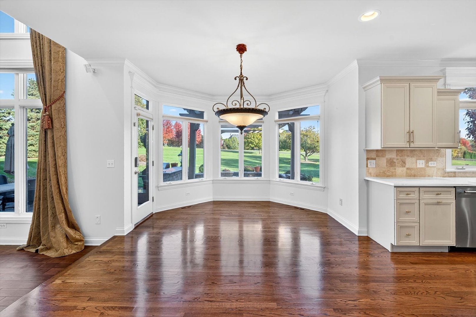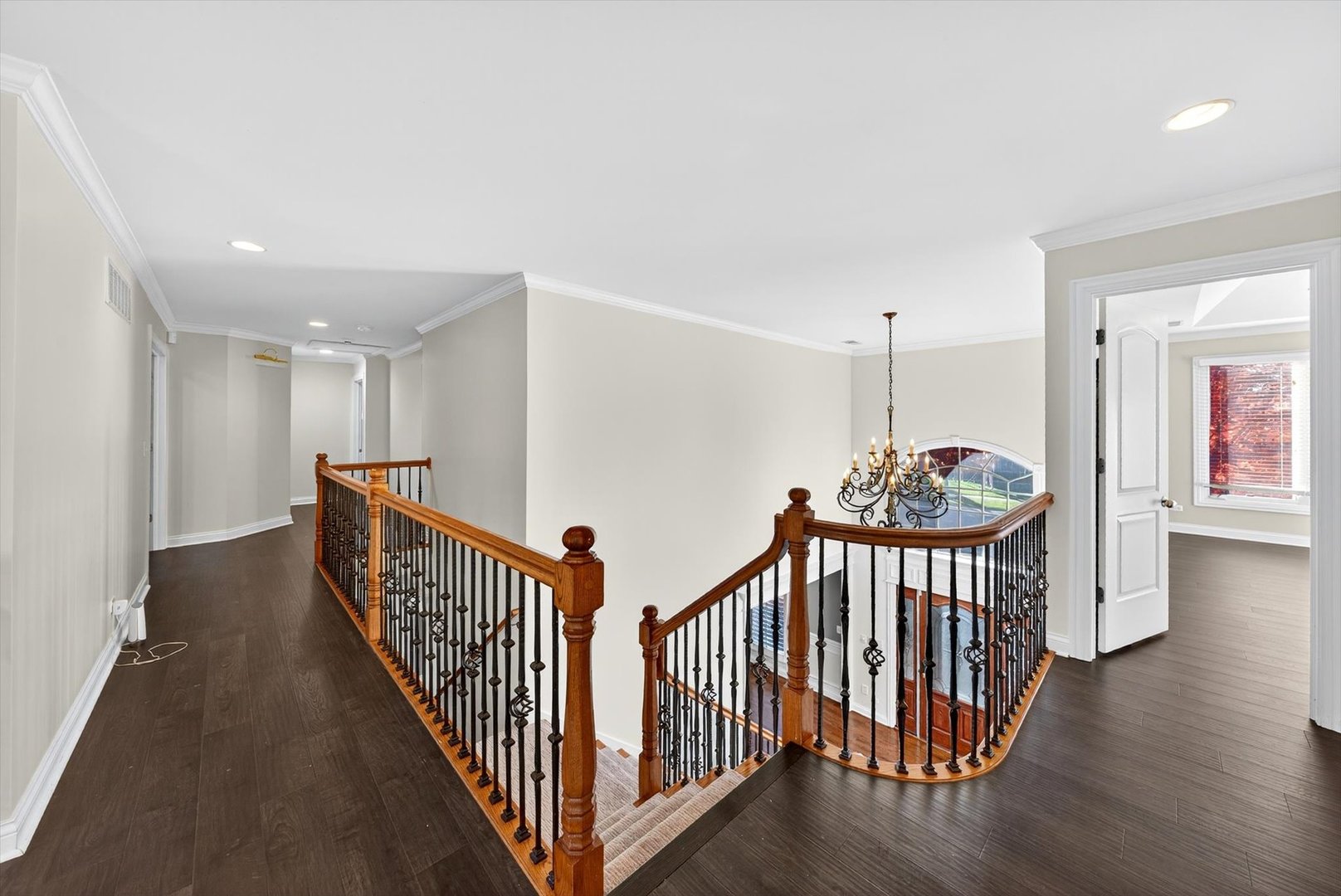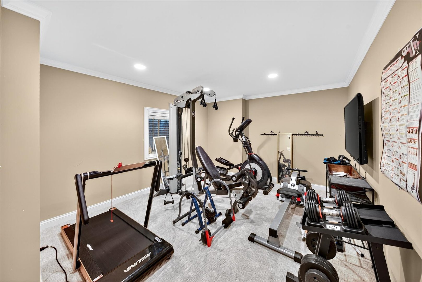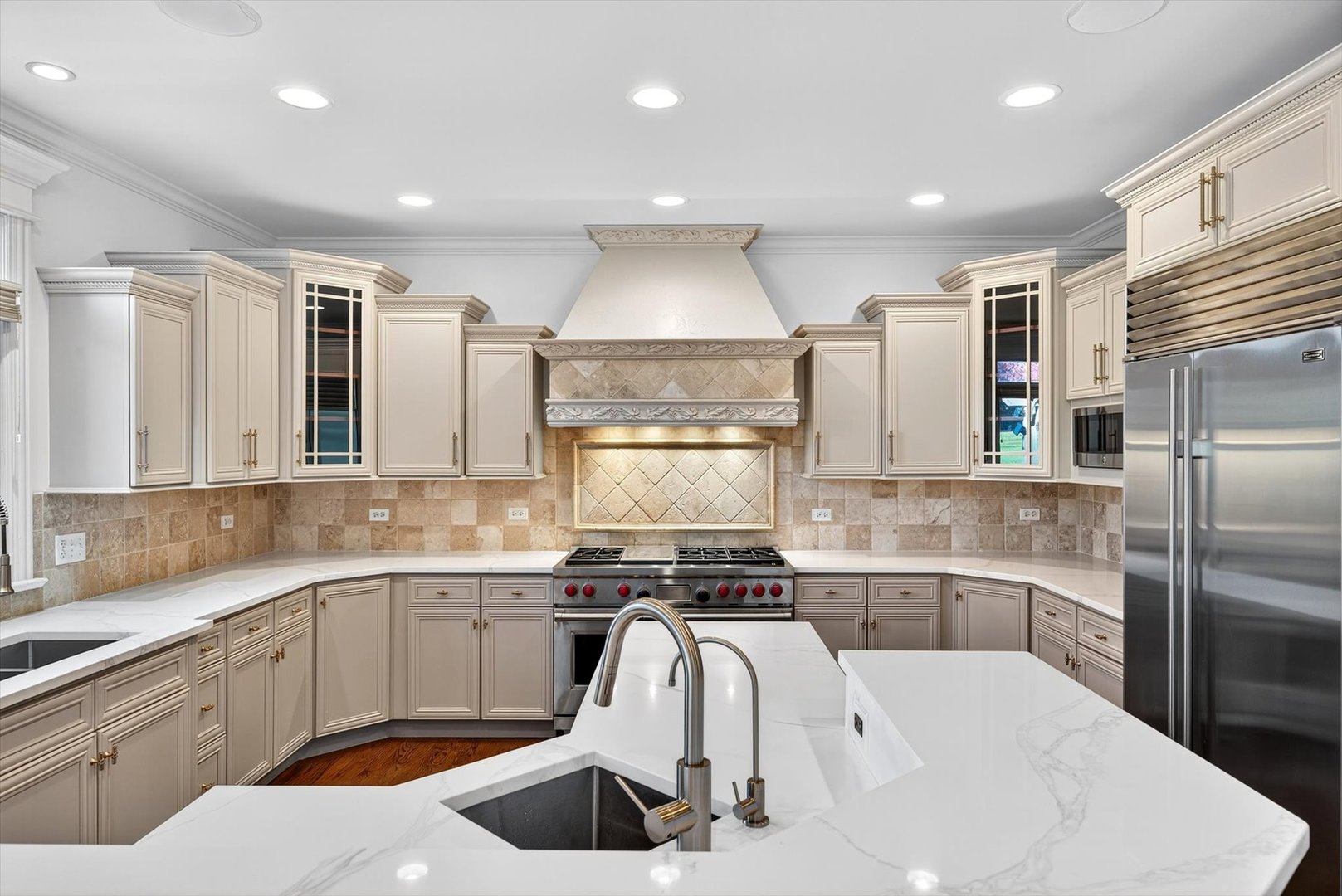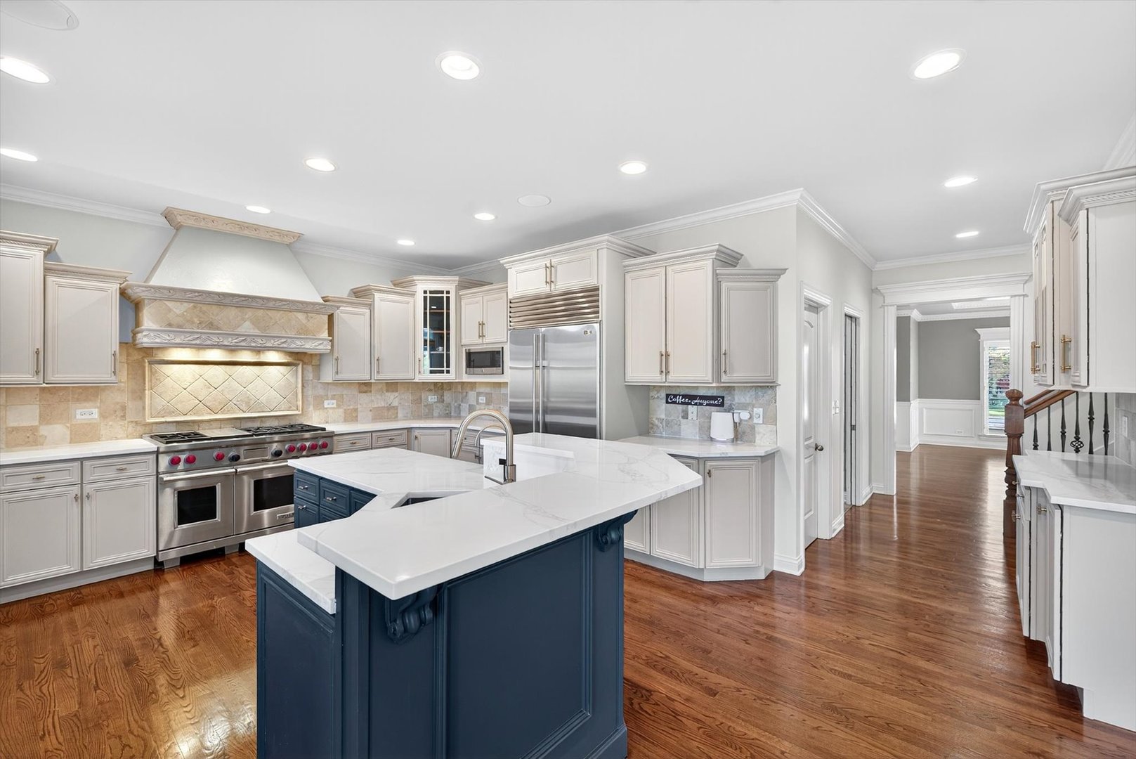 Welcome to your next chapter in this stunning five-bedroom, four-and-a-half-bathroom home that perfectly balances sophistication with everyday comfort. Located in the sought-after Fox Mill Subdivision, this custom model residence sits on a premium lot where mature landscaping meets thoughtful design. Every detail, from the professional-grade kitchen to the opulent bathrooms, reflects meticulous craftsmanship and upscale finishes. The interior spaces exude gracefulness and sophistication, offering a harmonious blend of comfort and style. Every detail has been meticulously designed to create an atmosphere of grandeur and extravagance. Enter through the formal entry and discover flowing living spaces that invite both quiet moments and lively gatherings. The completely remodeled kitchen takes center stage with refined finishes, a modern layout, and gleaming high end stainless-steel appliances that enhance the cooking experience. Adjacent casual dining and entertaining zones create the perfect backdrop for everything from morning coffee to dinner parties. Fresh paint throughout provides a crisp, clean canvas ready for your personal touch, while new carpet and luxury vinyl plank flooring in the bedrooms offer the perfect blend of comfort and durability. The luxurious primary suite serves as your personal retreat, featuring an elegant wet bar perfect for evening nightcaps and morning refreshments. Step into the spa-like primary bathroom where a full body spray shower system delivers a resort-quality experience, while the indulgent whirlpool tub transforms daily routines into relaxation rituals. Additional bedrooms feature thoughtful appointments that create restful retreats. Throughout the home, a whole house speaker system with surround sound creates the perfect ambiance for any occasion. The finished basement takes this home to the next level with its own kitchenette, home theater space with surround sound system, home gym with equipment, and ample storage. The entertainment possibilities are endless in the state-of-the-art finished basement! Recent updates demonstrate exceptional care and provide peace of mind. The new roof installed in 2020 protects your investment, while dual air conditioning units from the same year work in perfect harmony with two new furnaces also installed in 2020 to create a complete, modern heating and cooling system that ensures year-round comfort throughout every corner of the home. Updated water heaters from 2019 mean reliable hot showers for everyone, and fresh exterior paint from 2022 boosts curb appeal effortlessly. The cutting-edge smart sprinkler system brings technology to your fingertips, allowing you to control and monitor your lawn care from anywhere using your smartphone app. Fox Mill’s community amenities include a clubhouse, pool, mature landscaping, scenic open spaces, and convenient walking trails. Located near downtown St. Charles and Geneva, you’ll enjoy small-town charm with easy access to shopping, dining, and recreation. This turnkey home represents the ideal intersection of luxury and livability, where quality upgrades meet comfortable living in one of the area’s most desirable neighborhoods.