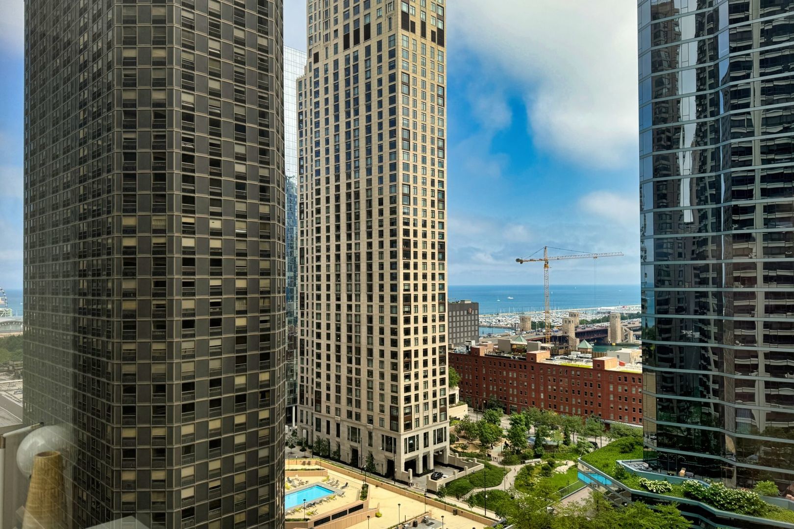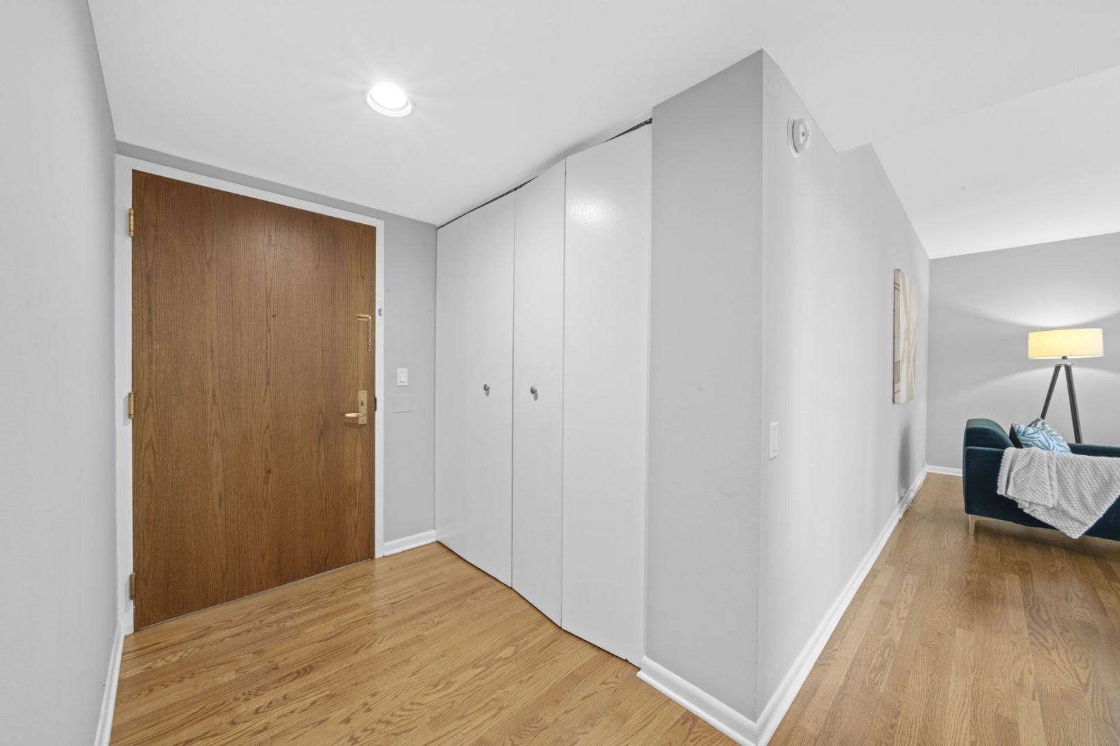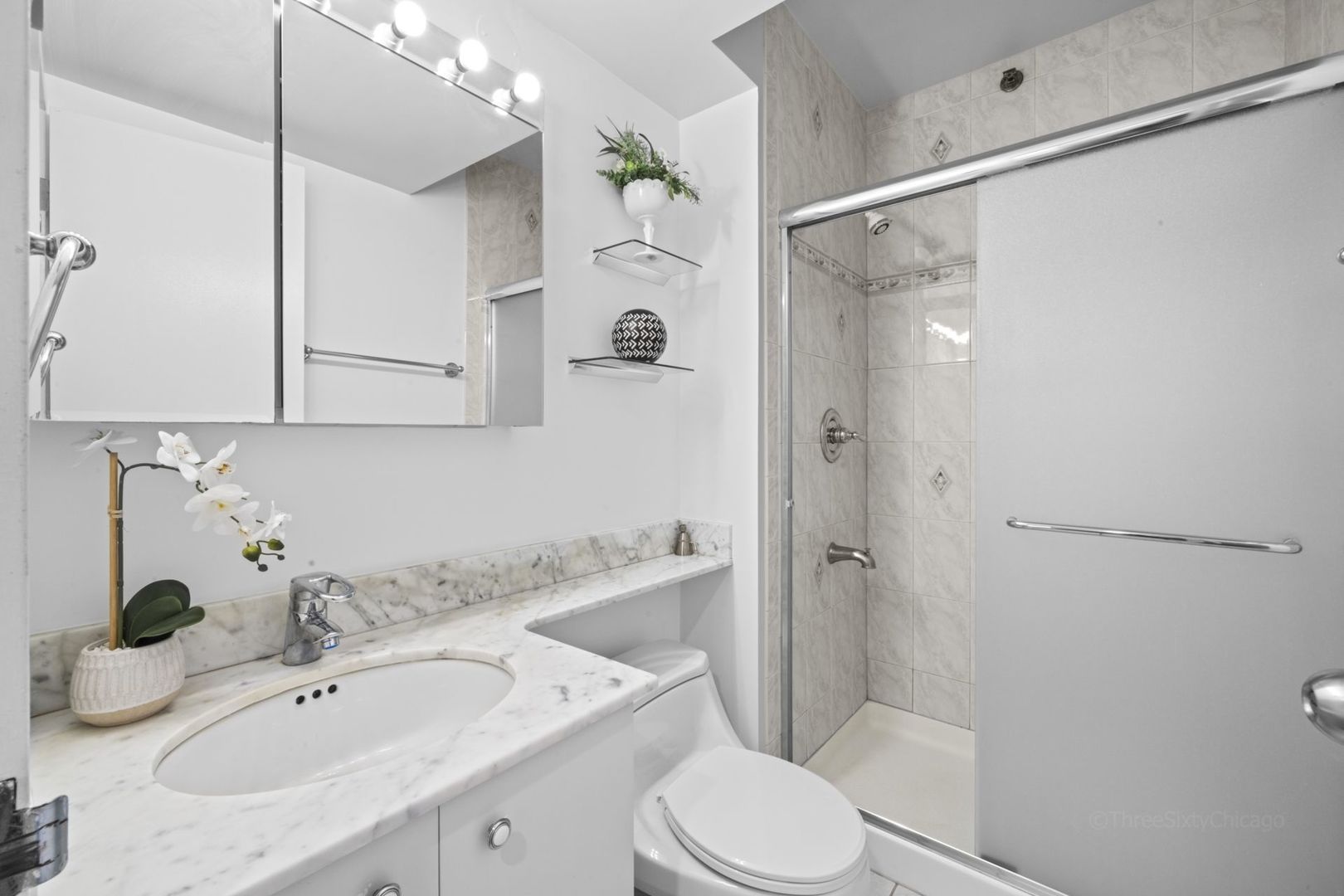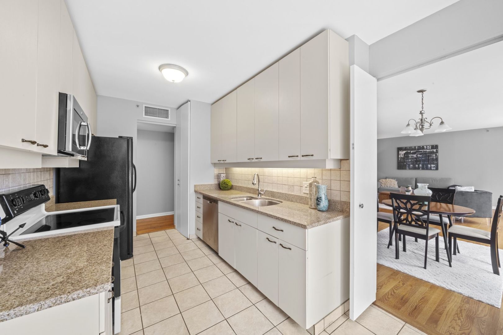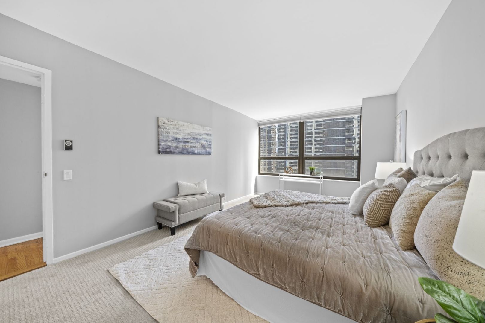 Enjoy sweeping city and lake views from every room in this spacious Streeterville 2 Bed/2 Bath condo. Real hardwood floors and an abundance of natural light flow from South facing windows. Enjoy a view of Navy Pier from the kitchen breakfast nook. The extra large living area and dining space are perfect for entertaining. The primary bedroom features a wall of closet space and an en-suite bath. Unit also features a walk-in storage closet with built-in shelving, in-unit Bosch washer/dryer and a heated garage parking that is included in the price. 400 Ohio is a wonderful full amenity building including 24-hour doorman, fitness center, pool, sauna, sundeck w firepit and grills. Close to transportation, lakefront, Whole Foods, Mag Mile shopping, Northwestern Medical Center, restaurants, nightlife!