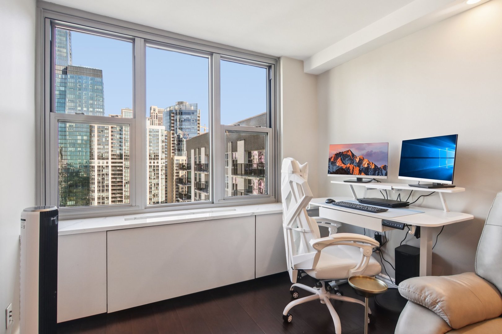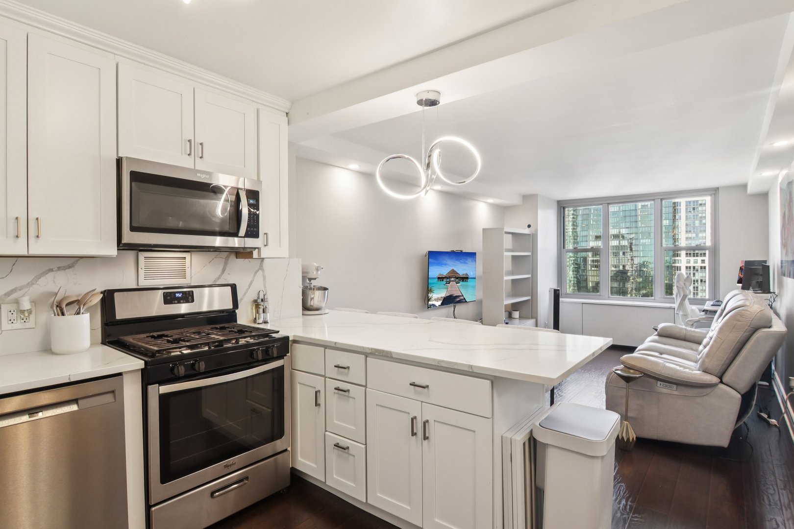 Stunning 1-Bed/1-Bth junior condo on the 37th floor with breathtaking views of Lakeshore East Park and surrounded by Maggie Daley, Grant & Millennium Parks. The updated unit features an open concept floor plan with gorgeous wood laminate floors that flow throughout. The living room is spacious and flows seamlessly into the update kitchen complete with a breakfast bar with seating for 4, white shaker cabinets, beautiful countertops and all SS appliances. The bedroom is a great size and has a large walk-in closet with custom shelving! The bathroom was renovated in 2024. The perks of this unit don’t end there – enjoy all the resort-style amenities this building offers! You have everything you could ever want or need right at your fingertips. Amenities include one of the city’s only indoor lit dome pools, a sundeck, a fitness center & spa, basketball and racquet ball courts, a library, business center, children’s playroom, nail salon & spa, storage, 24/7 security and so much more. Almost everything is covered by your low monthly assessment as well – heat, AC, water, gas, cable & internet. All of this while being centrally located next to Chicago’s best parks, the Lakefront & Riverwalk trails, and all that this area has to offer. Schedule your tour today to experience resort-style living every day.