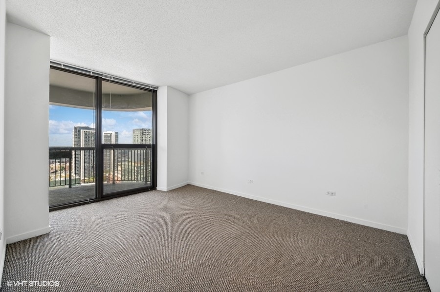 Stunning views from this high floor 1 bedroom condo in one of the most popular full amenity buildings in the heart of River North! This spacious, freshly painted, light-filled, 42nd-floor unit features hardwood floors, an open kitchen with granite countertops and stainless steel appliances, large balcony, ample storage, and in-unit washer & dryer. The spacious living/dining area has spectacular southern and western views of the city skyline. Large bedroom has walk-in closet. The building features hotel-like amenities including an 8th-floor terrace with an outdoor pool & cabanas, hot tub, sundeck, BBQ area, fire pit, and beautifully landscaped garden. Step inside to a spacious fitness center with updated equipment, a party room with ping-pong & foosball tables, a kitchen, and a lounge area perfect for entertaining and watching a game. There is full-time on-site maintenance, 24-hour door staff, and a dry cleaners. Located in the heart of River North and steps from world-class dining, shopping, theaters, nightclubs, Chicago’s beautiful river walk, and the CTA. Attached garage parking is available for rent. Investor-friendly building with no rental cap restrictions. Welcome Home!