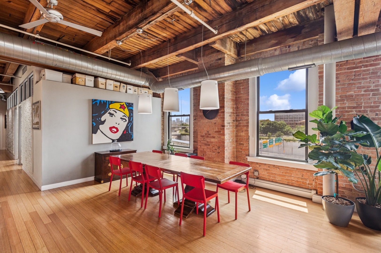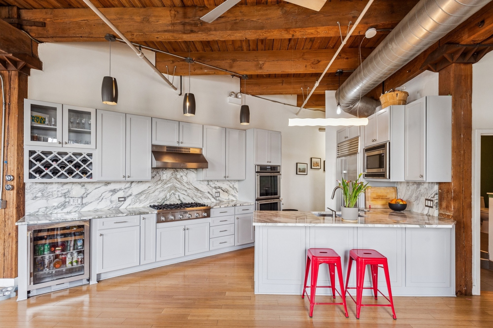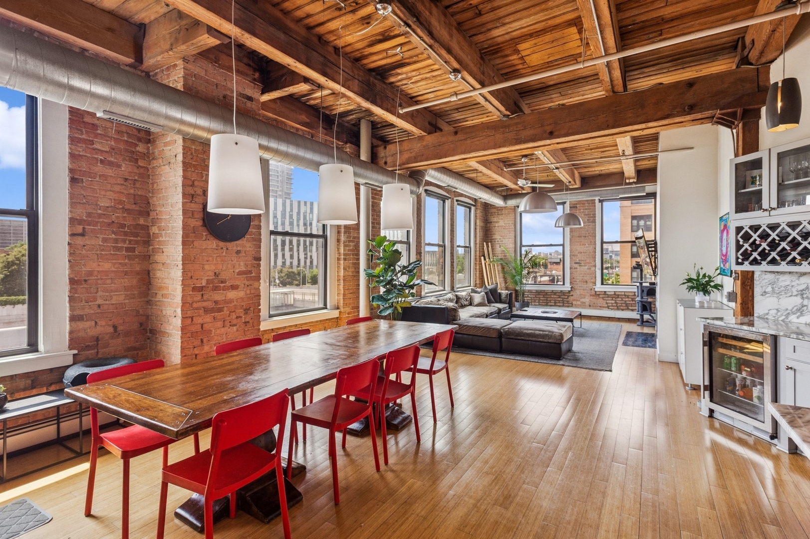 Fabulous opportunity in Skinner School District! 4BR + Office West Loop Loft | Move-In Ready | Scavolini Baths | Chef’s Kitchen. Discover an exceptionally rare and spacious 4-bedroom + office, 3.1-bath loft in the heart of the West Loop, offering 2,781 sq. ft. of beautifully finished, move-in ready space. Tailor-made for today’s live/work lifestyle, blending character and comfort with soaring timber ceilings, exposed brick, bamboo flooring, and an entire wall of oversized windows flooding the home with natural light. The open-concept chef’s kitchen features top-tier Thermador and Sub-Zero appliances, a wine fridge, and generous storage-perfect for everyday living and entertaining. Custom Scavolini bathrooms showcase sleek, modern design. Recent upgrades include a new zoned HVAC systems and dual water heaters for enhanced efficiency. Located just steps from the UIC Blue Line, this home offers unmatched convenience with direct access to the Loop and O’Hare. Enjoy walking distance to Greektown, Mary Bartelme Park, UIC, acclaimed restaurants, shops, and more. Two indoor deeded parking spaces available for purchase. An extraordinary opportunity to own one of the West Loop’s largest and most versatile condos.