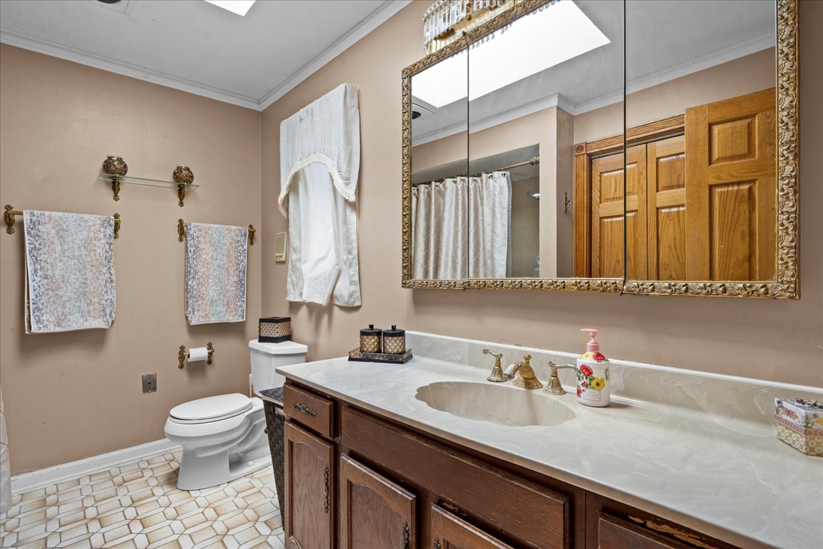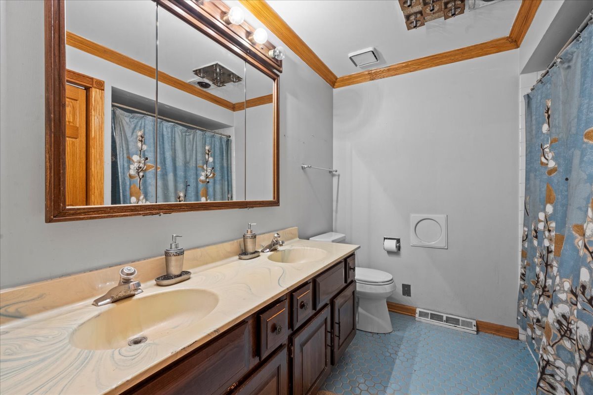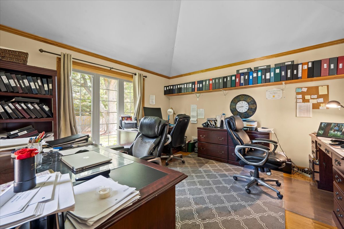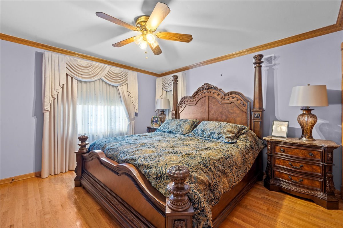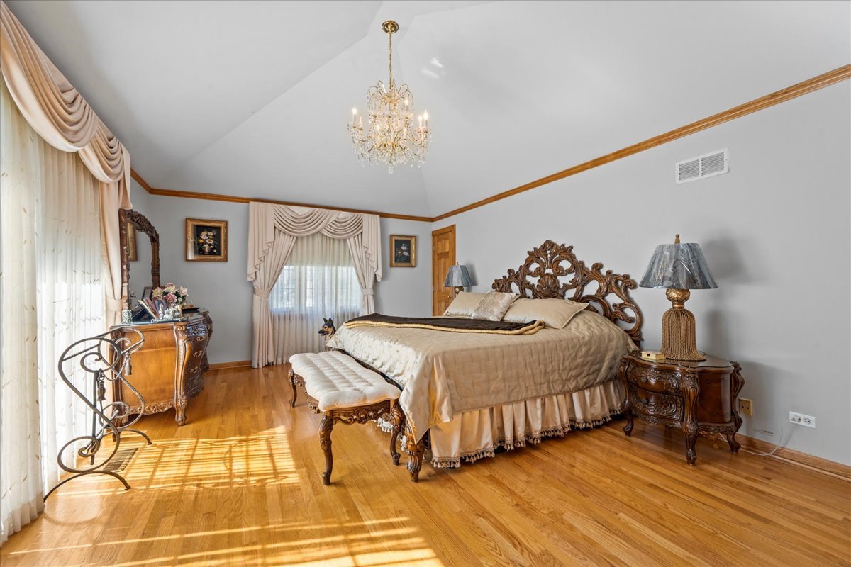 All brick home on a huge lot with 3 car garage and an impossible to find 2 primary suites (or 2 offices on the main floor). The spacious floor plan a main floor office, a main floor en suite bedroom, huge kitchen that can be open to the family room, formal dining room and formal living room, oversized 3 car garage, large mudroom, and offers 4 bedrooms on the second floor. The enormous unfinished basement is a perfect play area and already has a bathroom roughed in should you decide to finish it down the road. Situated on a huge property in a cul de sac, and backing to the play field at Glen Grove School this home is truly a rare offering.