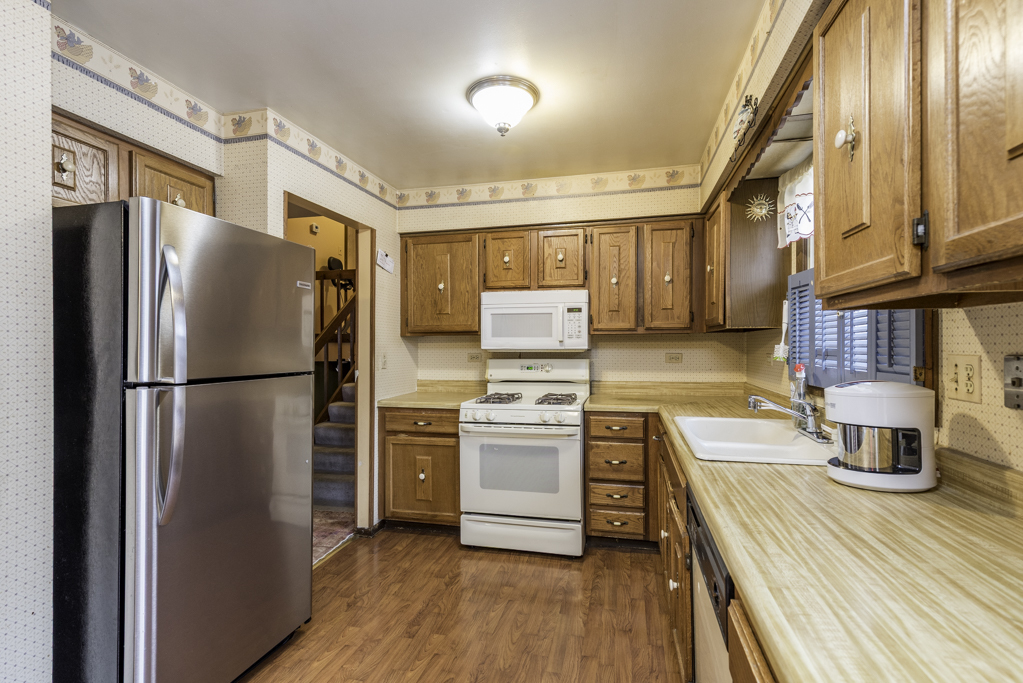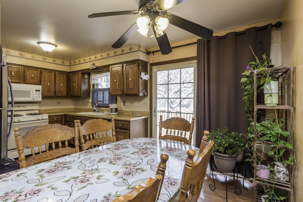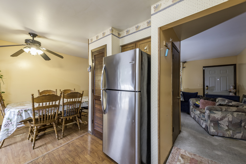 The main level features a bright living room and an eat-in kitchen with sliding doors that open to the backyard. The lower level offers a spacious family room, a full bath with a walk-in shower, a laundry area, and abundant storage space, making it a versatile area for recreation or a home office. The upper level houses all three generously sized bedrooms, including the primary bedroom.