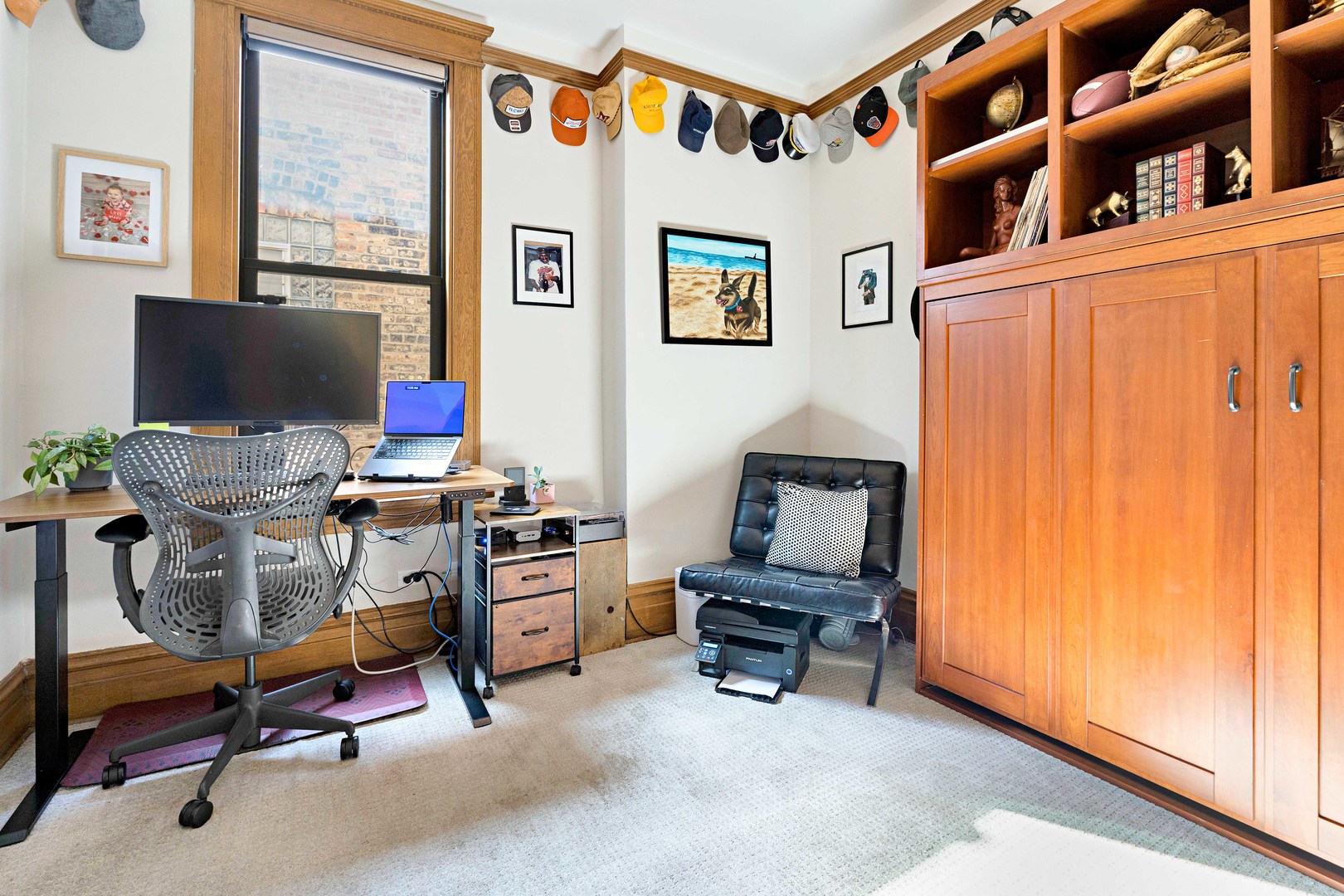 Welcome to this rare opportunity where vintage luxury meets smart living in Prime Buena Park. This timeless & elegant top-floor penthouse unit in the historic J.T Bunting House, is this neighborhood’s best home to hit the market in 2025. This sun drenched 3-bedroom – 1-bath unit is a perfect blend of unique vintage charm and cutting-edge modern upgrades. Inside, you’ll find exquisite original woodwork, leaded glass windows, custom cabinetry and two wood-burning fireplaces. Rich oak hardwood floors and heated flooring add comfort and warmth throughout. The smart home features are unparalleled – fully integrated with smartphone and Alexa voice control. Enjoy the convenience of smart locks, thermostats, security cameras, Flair smart vents, fans, Sonos sound system, motorized blinds, LED lighting, and more. The spacious primary bedroom boasts a cedar-lined walk-in closet with built-in organizers. The spa-inspired bathroom is a true showstopper, featuring heated travertine marble and granite floors, a TOTO NeoRest smart toilet, dual-head steam shower, soaking tub, fog-free heated mirrors, tech lighting, skylight, built-in TV/sound system, and luxurious LED crown molding accents. The chef’s kitchen is designed for performance and style with granite countertops, custom KitchenMaid maple cabinetry, heated porcelain tile floors, and a coffered ceiling with concealed lighting. Premium appliances include a GE French door refrigerator, Bosch dishwasher, U-Line beverage center, GE Advantium oven, new induction cooktop, Moen faucet, 4-stage water filtration system, and a powerful 2HP Insinkerator. A bright breakfast/grill room off the kitchen offers even more functionality with a built-in infrared gas grill, another fireplace, and dramatic skylights. Additional features include 9′ ceilings, a walk-in utility/pantry closet and a private 100 sq ft basement storage room/ workshop which can also be used as a private gym. Exterior parking space included with easy alley access. These classic gray stone units are hard to come by and with an unbeatable location! Located & within walking distance to the lakefront, golf course, red line, bus routes, iconic Wrigley Field, restaurants, shops, gyms, and more… Schedule your private showing today!