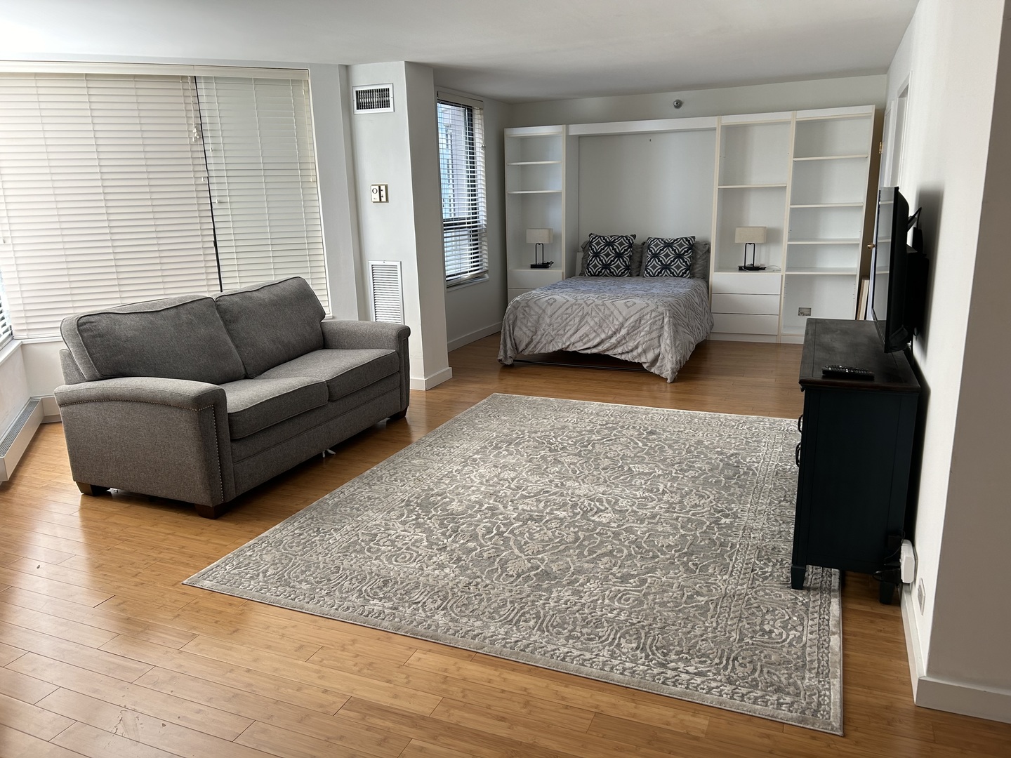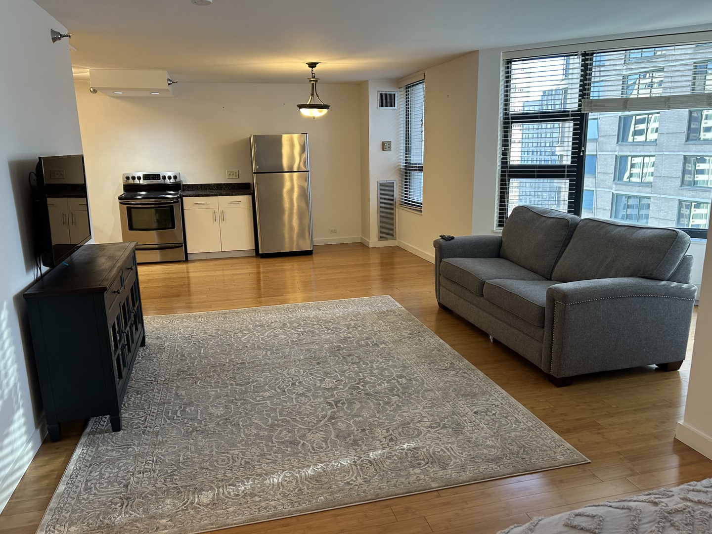 Beautiful open, spacious unit in the heart of Streeterville. One of the best-managed and best-maintained buildings in the area with friendly and helpful 24-hour door-person. This studio unit on the 26th floor is designed to be open and airy, unlike so many condos that are tightly compartmentalized. A bedroom wall partition could be added later by a buyer to provide more privacy if needed. Engineered bamboo floor throughout. Quartz countertop and stainless steel appliances in kitchen. Surprisingly large walk-in closets in the entryway and sleeping area provide generous room for storage. Amenities galore with indoor pool, whirlpool, sauna, fitness center, party room, and two skydecks on the top (48th) floor. A designated storage locker is included to provide additional storage space. View of the lake to the east and the skyline to the south. Come and enjoy all of the conveniences and attractions that Streeterville and the Near Northside have to offer – Lake Michigan, Ohio Street Beach, Navy Pier, The Magnificent Mile, with dozens of shopping and dining options – all within easy walking distance! This unit does not include parking but there are usually several spaces available for lease in the building’s parking garage.