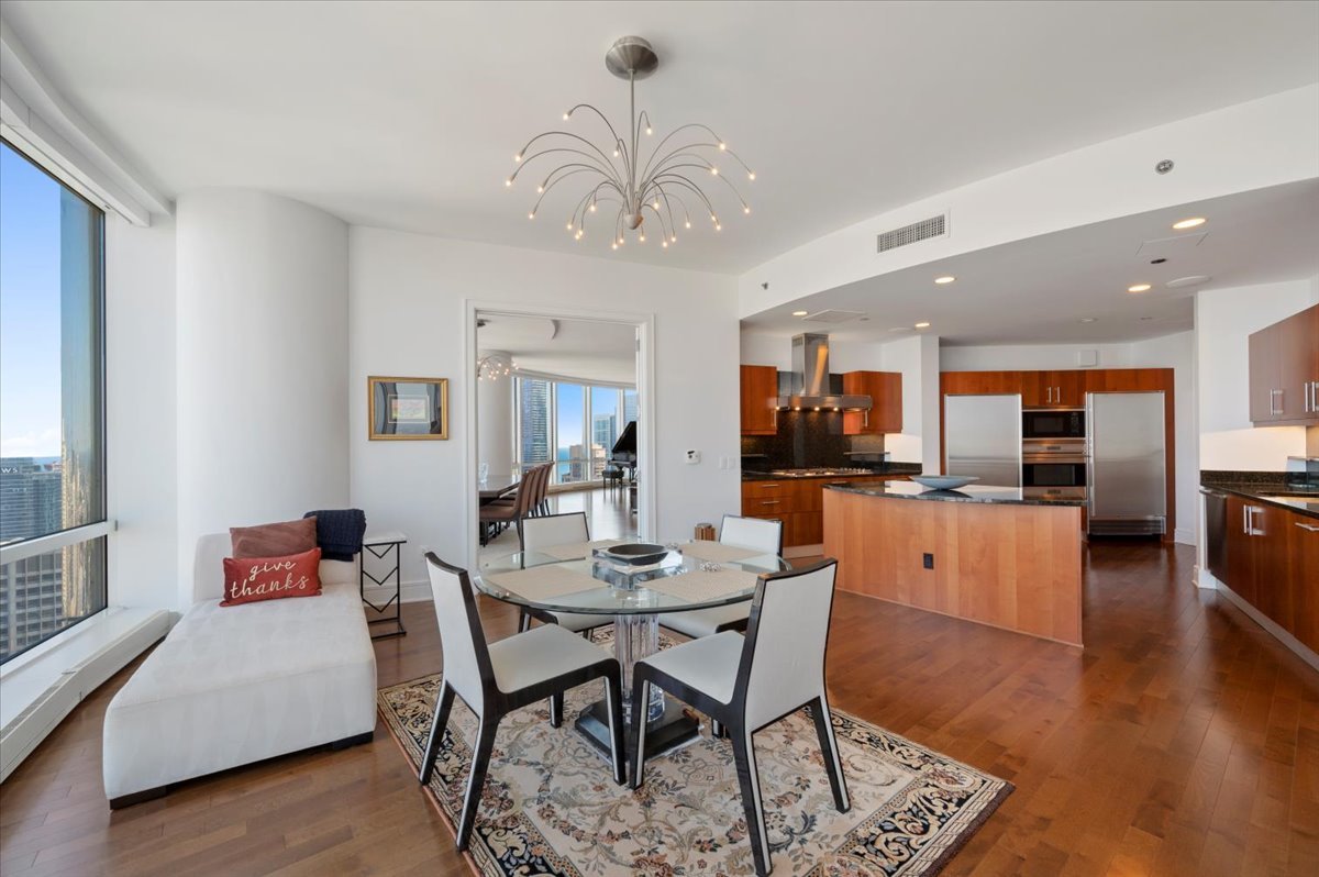 A rare opportunity, this coveted A-tier residence seldom becomes available. Only nine of these unique layouts were ever created by the developer, and all sold out on the very first day of pre-construction release. Experience unparalleled luxury in this spectacular 4,000 sq. ft. A-tier home at the iconic Trump Tower Chicago. Designed for elegant living and grand entertaining, the residence offers 3 bedrooms, a separate den, media room, and family room. A dramatic entry foyer opens to a sun-drenched, river-facing living room with soaring floor-to-ceiling windows showcasing breathtaking, unobstructed views of the Chicago skyline, river, and lake from every window. Motorized shades throughout operate with a single touch for effortless convenience. Beautifully customized by the current owner, the home features new bathroom vanities, rich birch hardwood floors, custom lighting, built-ins, and an integrated surround-sound system. The closets were designed with exceptional craftsmanship and luxury finishes. The chef’s kitchen is a true showpiece, boasting marble countertops, Miele cooktop and dishwasher, Wolf convection oven and microwave, and an impressive 64-inch Sub-Zero refrigerator and freezer. Three custom fireplaces with elegant stone mantels add warmth and sophistication throughout. The expansive primary suite offers two extraordinary walk-in closets and dual spa-inspired bathrooms, each finished in exquisite natural stone with oversized soaking tubs and separate glass-enclosed showers. A truly extraordinary residence that defines refined city living in one of Chicago’s most prestigious addresses. Opportunities like this are exceptionally rare and highly sought after.