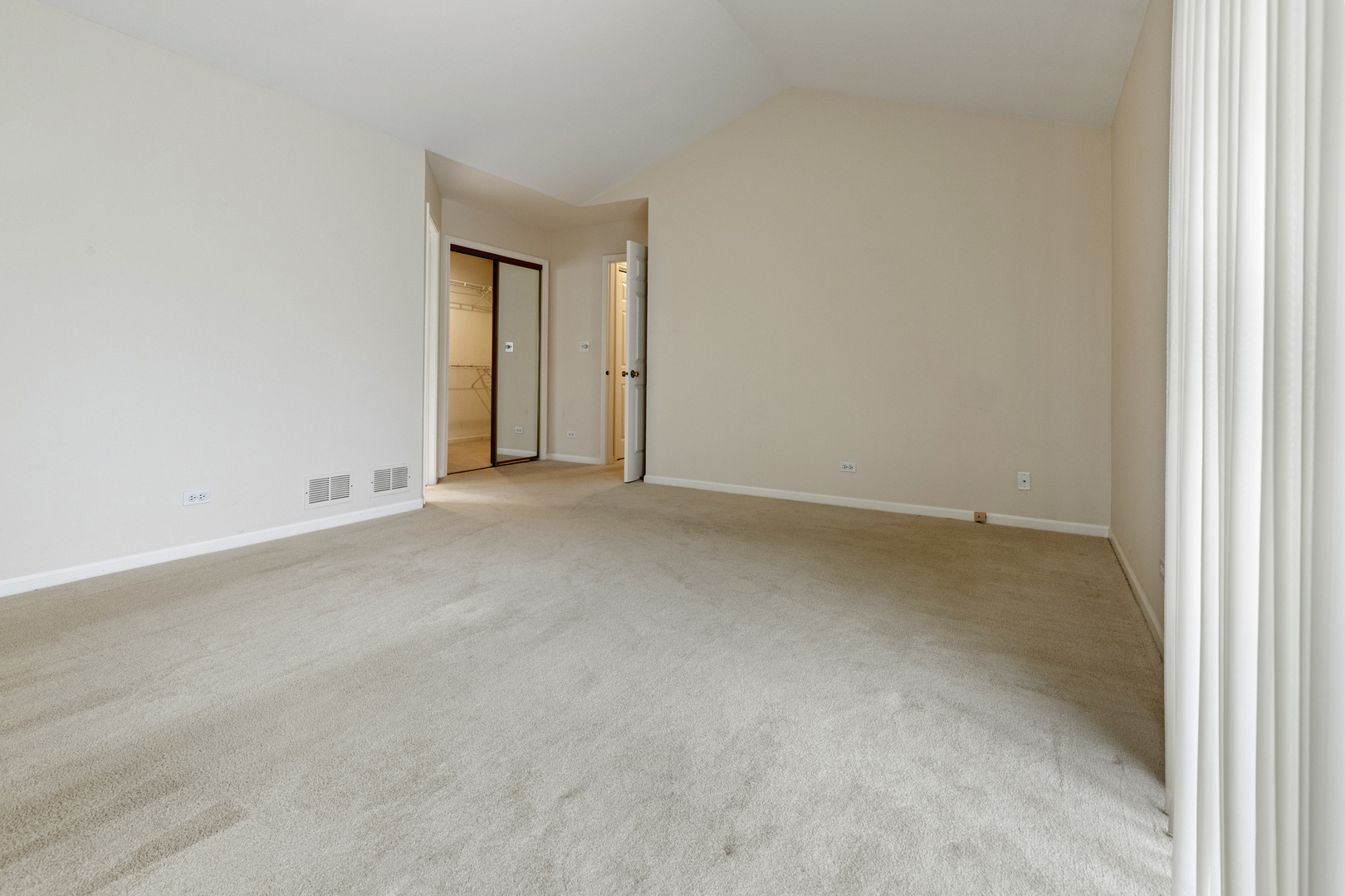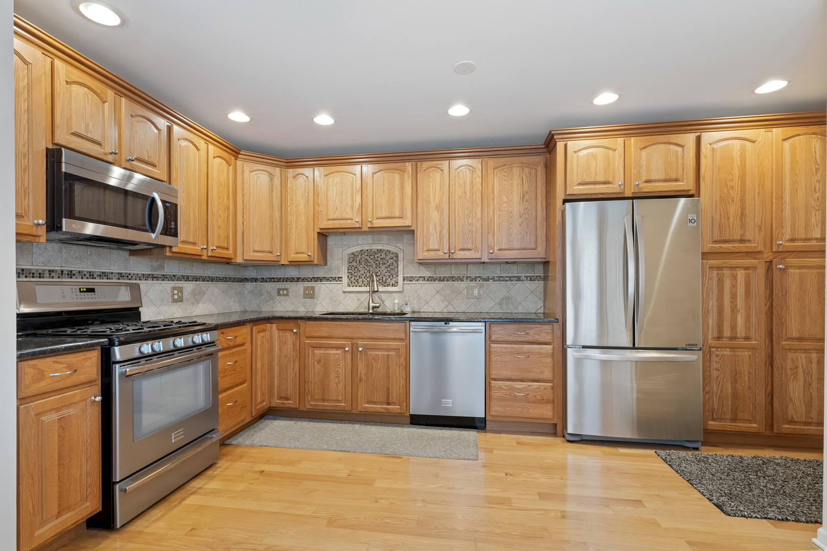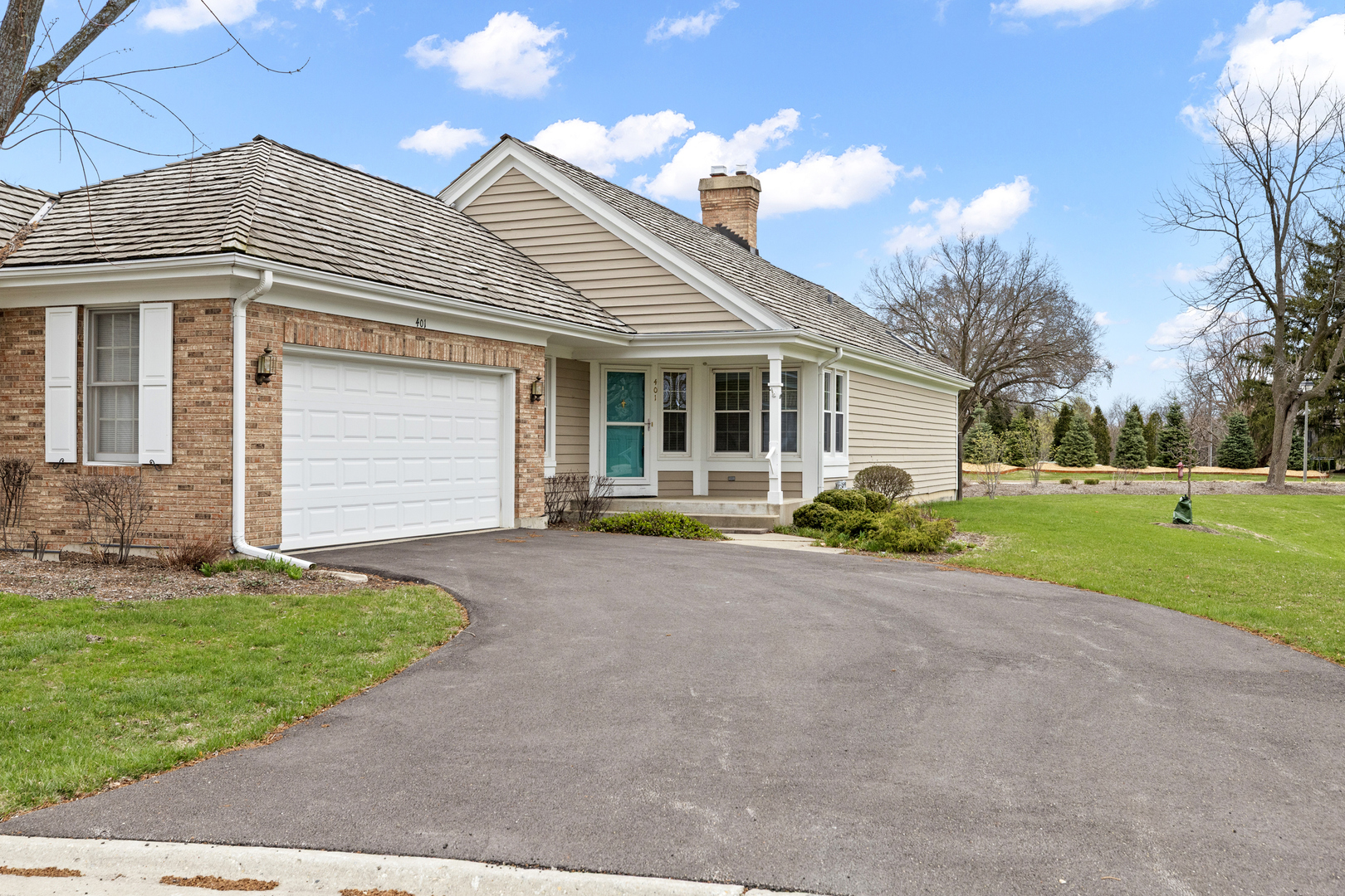 This bright and sunny ranch home is MOVE IN READY! Enjoy the unique end location with fenced back yard and pond views that provide both privacy and plenty of space. Enter the spacious living room with gas fire place and patio doors that lead to a large deck! Large master suite with doors to back yard, second bedroom and bath! An updated kitchen with stainless steel appliance round out the main level. Finished basement includes a living area and separate storage room with extensive storage shelving. Well maintained and ready for you to move right in! Enjoy the benefits of this maintenance-free community that’s close to town, train, schools, Ron Beese park and forest preserve walking trails, and shopping.
