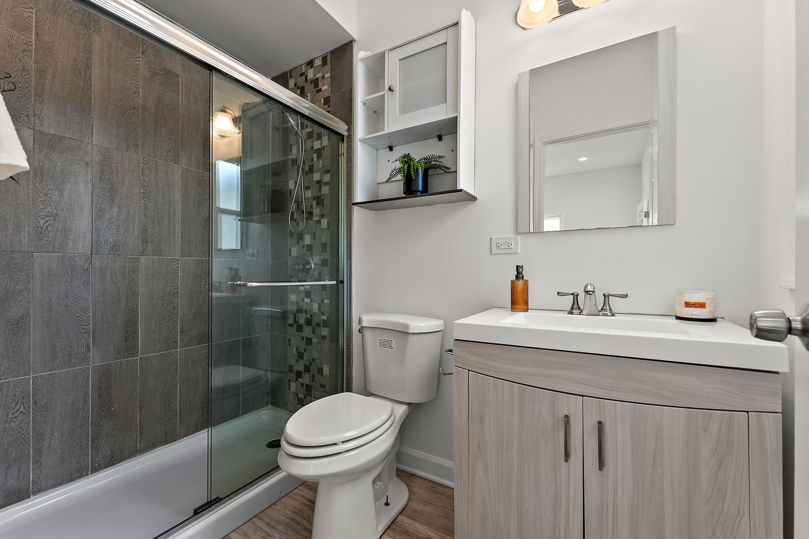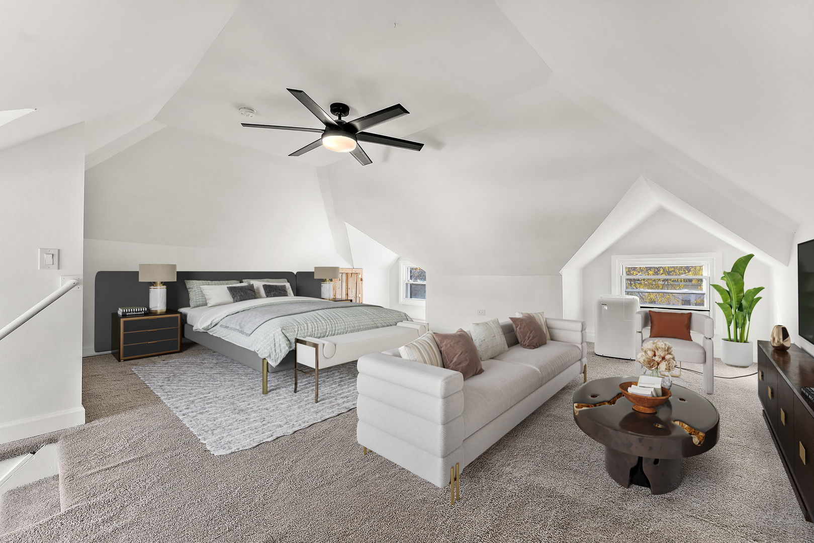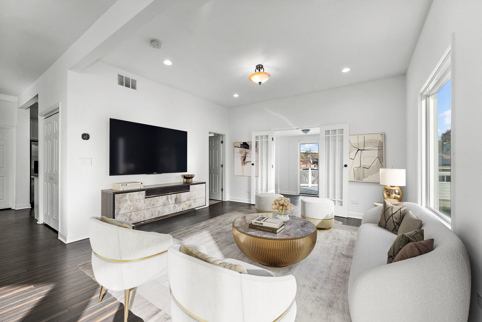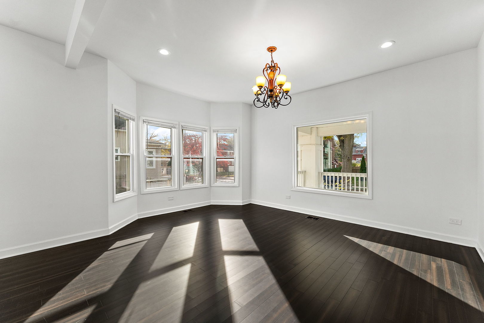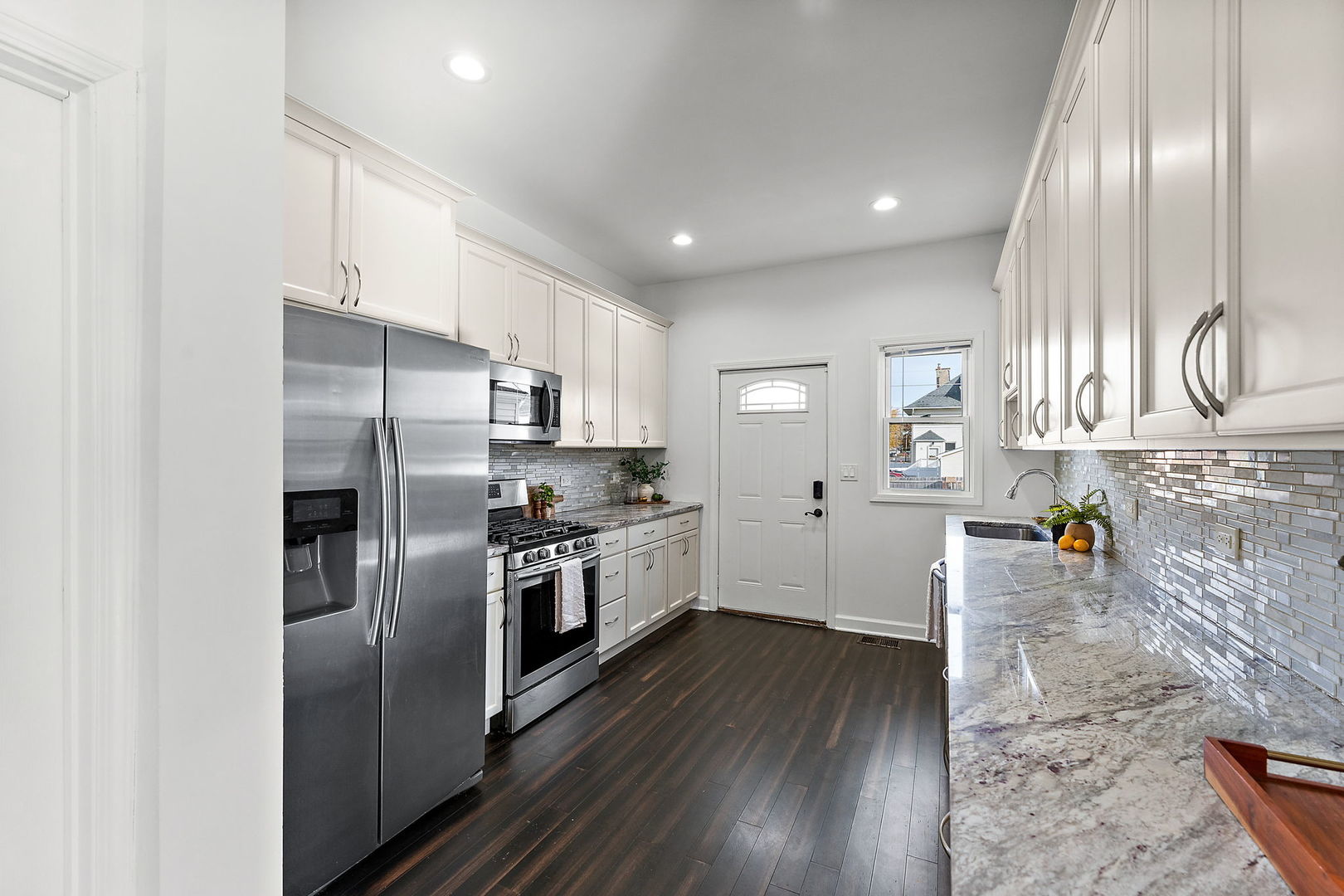 Step into the timeless elegance of this fully renovated 1908 three-story home, perfectly situated on a beautiful corner lot in Chicago’s historic western suburb, Maywood. Reimagined in 2019 with brand new everything, this residence blends the warmth of turn-of-the-century architecture with the sophistication of today’s high-end design. From the moment you arrive, the quaint covered porch invites you to slow down – the perfect spot for a morning coffee or a relaxing afternoon on your porch swing as sunlight filters through the trees. Inside, the home opens to soaring 10-foot ceilings and a bright, airy layout filled with character and light. The open staircase, adorned with its original vintage newel post details, sets a striking tone that blends history and craftsmanship. The spacious living and dining areas flow effortlessly together, anchored by a charming bay window dining nook that creates the perfect setting for intimate dinners or morning brunches bathed in natural light. The modern kitchen is a true showpiece – designed with stone countertops, sleek stainless steel Samsung appliances, a designer glass backsplash, and elegant 42″ cabinetry that adds height and drama to the space. Engineered bamboo floors stretch across the main level, complementing the home’s sophisticated palette and airy feel, along with a main floor bathroom with a step-in shower with custom tile surround. French doors greet you to the perfect main floor sunroom or office, that gives bright natural light through the sliding doors and access to your large back deck! Upstairs, 3 spacious bedrooms + an office space and a second bathroom has been meticulously appointed with fine tilework, charming vanity, and contemporary fixtures. The finished third story offers a sprawling fifth bedroom, creative studio, or private retreat – a cozy hideaway tucked above it all with lots of storage. Head down to the walkout basement, which is bright and spacious, and has been extended to a fully functional height. It features a fully waterproofed and reinforced foundation with a lifetime transferable warranty. Outside, the fully fenced yard and 2.5-car garage within the fence line offer privacy and convenience. A refinished front porch and back deck extend the living space outdoors, perfect for gatherings or quiet evenings under the stars. With a newer roof, windows, mechanicals, and systems throughout, every detail has been completed with care and craftsmanship. This home is a perfect balance of storybook charm and modern ease – a place where history meets harmony. With a straight shot down 290 to the city, you will enjoy the ideal suburban lifestyle with al of the amenities of beautiful Chicago at your fingertips!