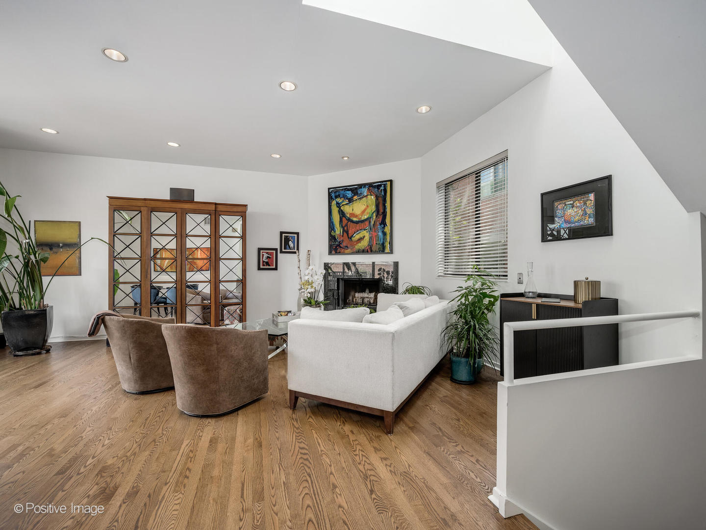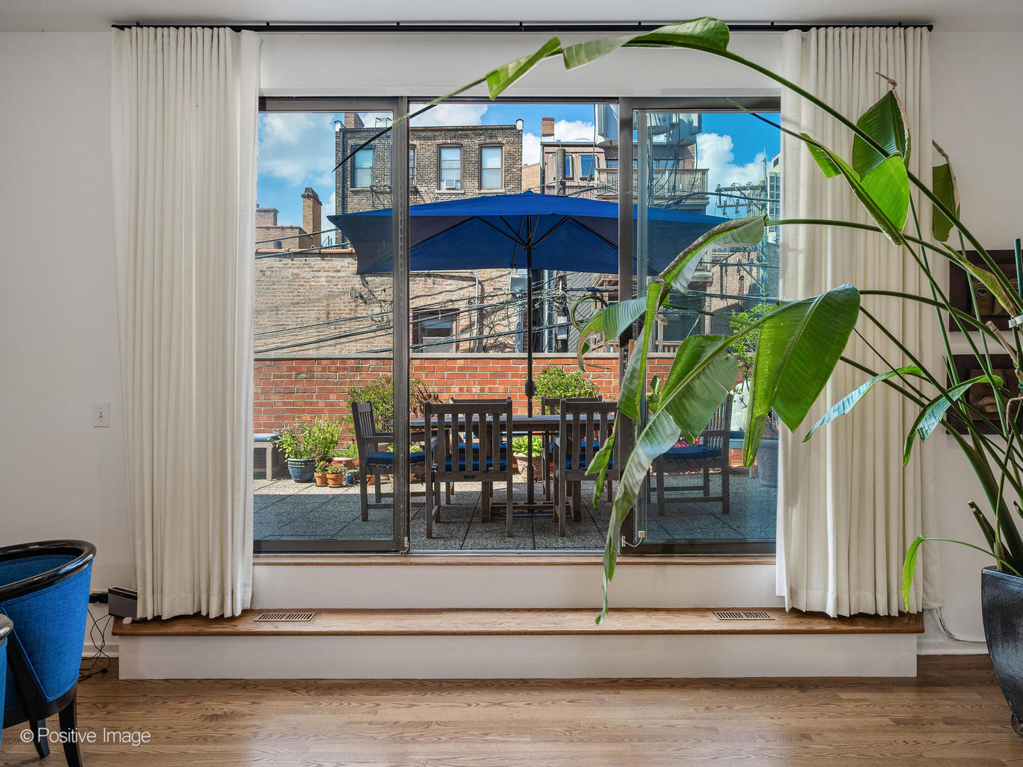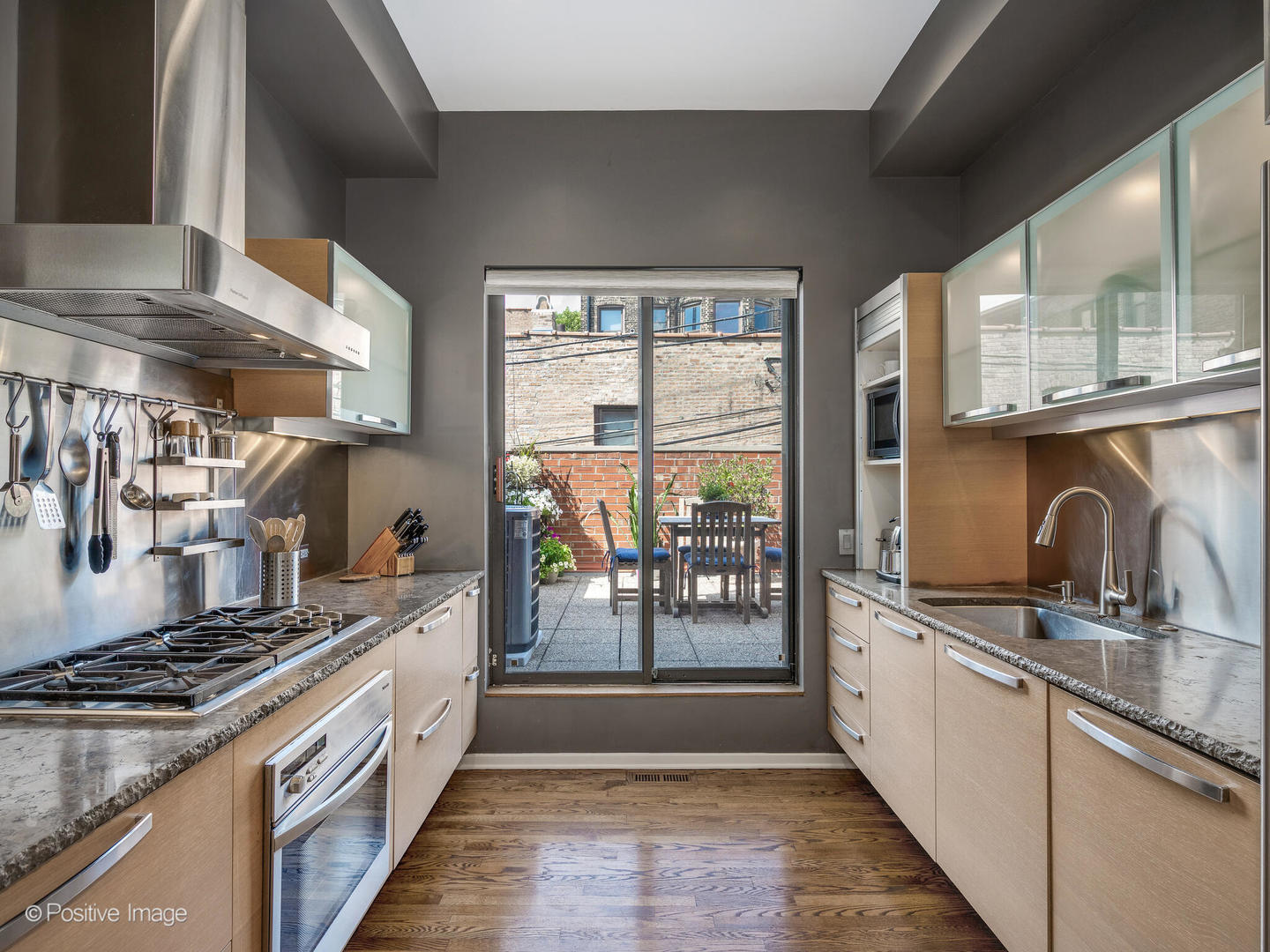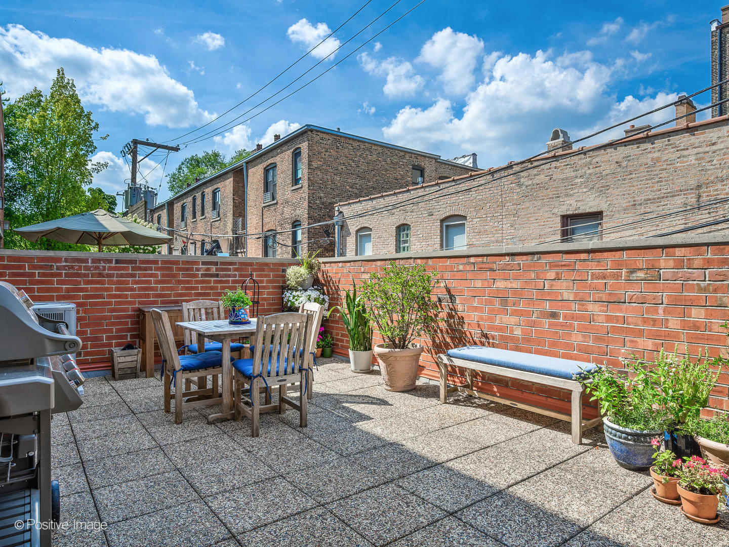 Rarely available, this stunning three bedroom, three bathroom brick townhome in East Lincoln Park offers a massive private terrace and lives like a single family home. Fully renovated with crisp transitional finishes throughout, this home is move in ready. Enter through a private landscaped courtyard to the main level of this home offering a spacious entry foyer with two closets, a large laundry room and the convenience of an updated full bathroom and bedroom. Versatile main level bedroom was just renovated with a brand new sliding barn door and closet ideal for guests or can easily function as a family room or a home office with glass sliding doors leading to a quaint patio overlooking the lush courtyard. On the second level the expansive living and dining rooms are bathed in sunlight from skylights, dramatic two-story windows, and an airy atrium ceiling. The living, dining rooms and kitchen flow seamlessly to an expansive, private landscaped terrace spanning the width of the home with pavers, gas, water & electric, ideal for grilling an entertaining. Sliding glass doors from the living & dining room bring the outside in, while a second set of sliding doors to the kitchen provide added convenience and light. The sleek kitchen is updated with custom Italian cabinetry, stone counter tops, Sub Zero and Wolf appliances and leads to a charming breakfast room. The entire main and second level of the home are outfitted with newer hardwood floors & custom lighting and a second corner fireplace in the living room. The top floor features two spacious bedrooms and two fully renovated bathrooms, including a luxe primary suite with a large en-suite stone bath with a custom vanity and built ins. The second bedrooms offers plenty of space for a desk, has wall to wall closets and and offers a fully updated guest bathroom with custom, stone counter tops and tub surround. This coveted townhome offers a secured gated entry, one car garage, updated mechanicals, full size laundry room and plenty of storage throughout. Located on a quiet tree lined street just steps from top-rated schools (Parker, Latin, St. Clement, Lincoln Elementary, EFAC, and Lincoln Park High), the lakefront, parks, zoo, and some of the city’s best restaurants and shops.