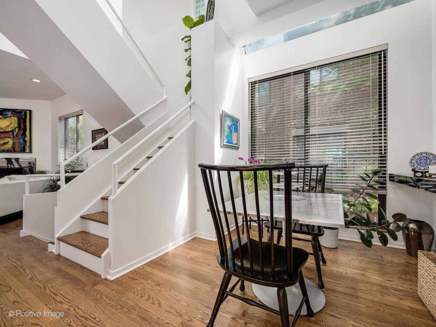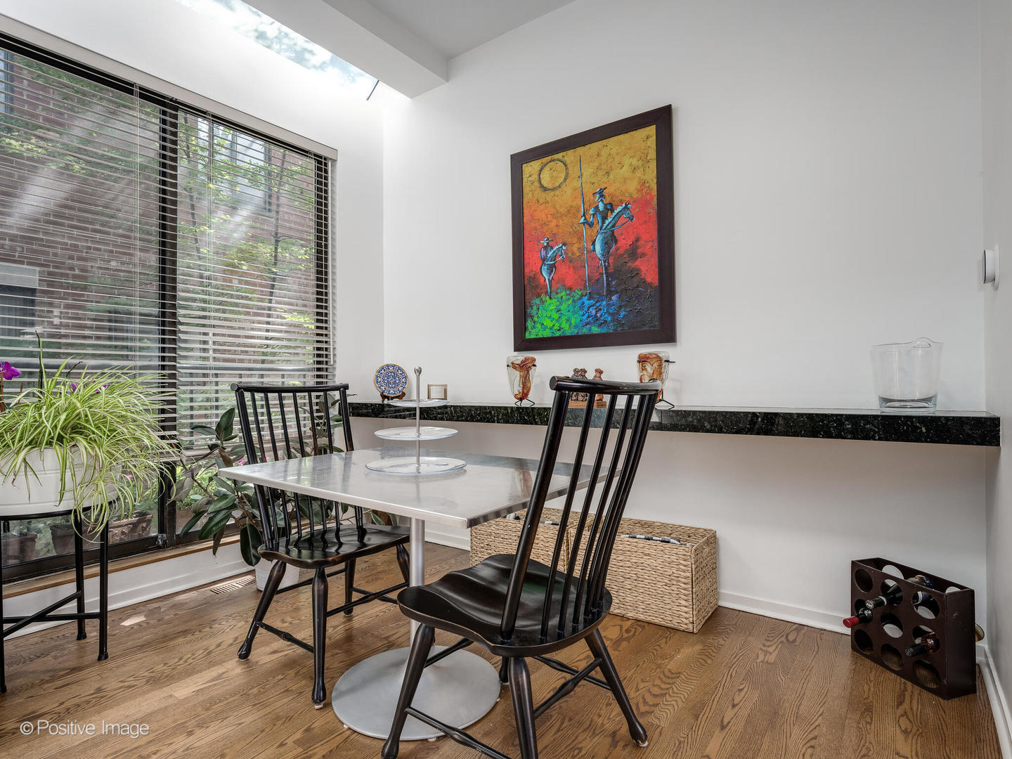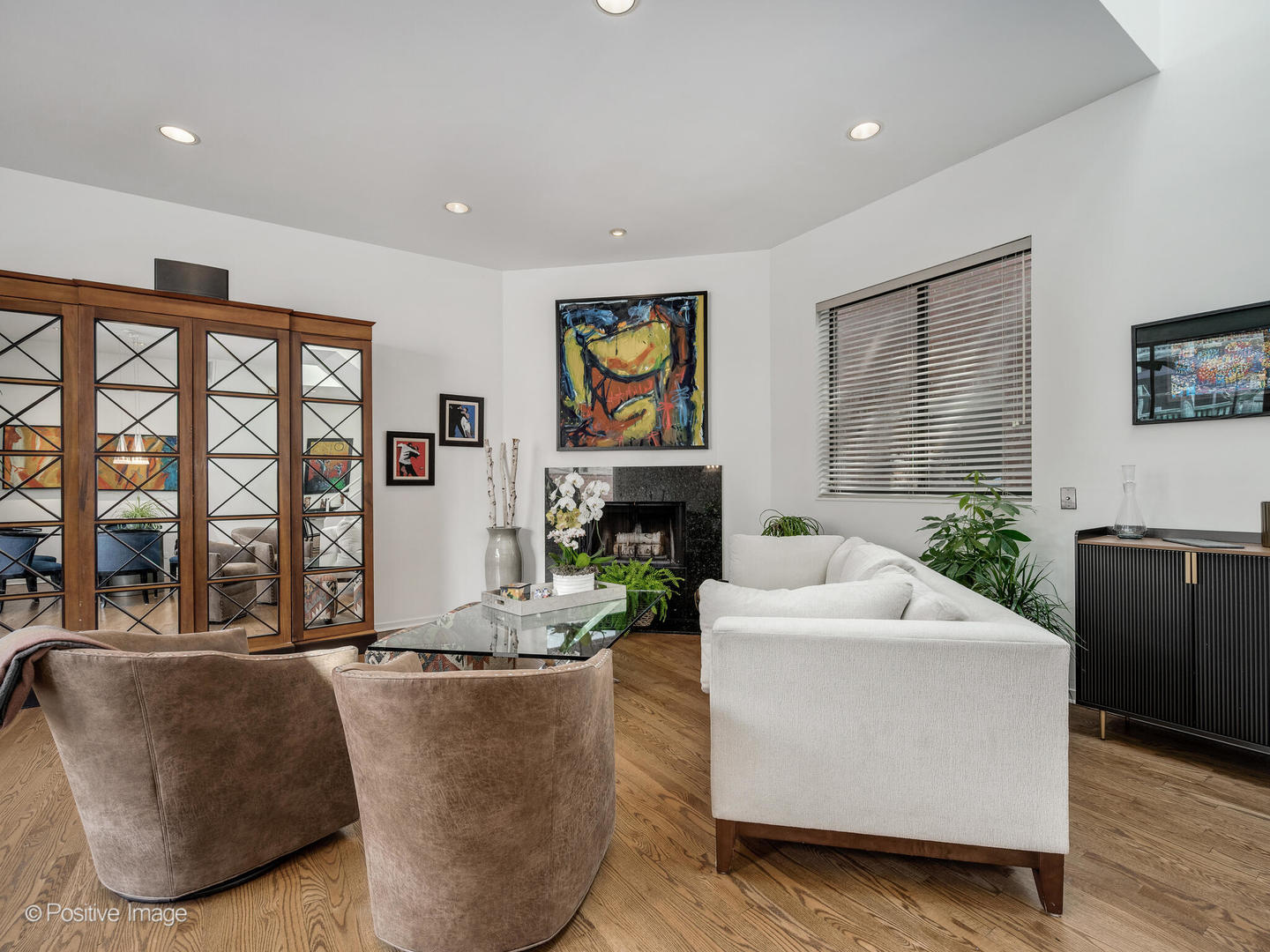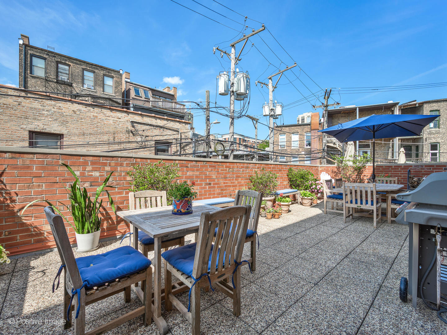 Rarely available, this stunning three bedroom, three bathroom brick townhome in East Lincoln Park offers a massive private terrace and lives like a single family home. Fully renovated with crisp transitional finishes throughout, this home is move in ready. Enter through a private landscaped courtyard to the main level of this home offering a spacious entry foyer with two closets, a large laundry room and the convenience of an updated full bathroom and bedroom. Versatile main level bedroom was just renovated with a brand new sliding barn door and closet ideal for guests or can easily function as a family room or a home office with glass sliding doors leading to a quaint patio overlooking the lush courtyard. On the second level the expansive living and dining rooms are bathed in sunlight from skylights, dramatic two-story windows, and an airy atrium ceiling. The living, dining rooms and kitchen flow seamlessly to an expansive, private landscaped terrace spanning the width of the home with pavers, gas, water & electric, ideal for grilling an entertaining. Sliding glass doors from the living & dining room bring the outside in, while a second set of sliding doors to the kitchen provide added convenience and light. The sleek kitchen is updated with custom Italian cabinetry, stone counter tops, Sub Zero and Wolf appliances and leads to a charming breakfast room. The entire main and second level of the home are outfitted with newer hardwood floors & custom lighting and a second corner fireplace in the living room. The top floor features two spacious bedrooms and two fully renovated bathrooms, including a luxe primary suite with a large en-suite stone bath with a custom vanity and built ins. The second bedrooms offers plenty of space for a desk, has wall to wall closets and and offers a fully updated guest bathroom with custom, stone counter tops and tub surround. This coveted townhome offers a secured gated entry, one car garage, updated mechanicals, full size laundry room and plenty of storage throughout. Located on a quiet tree lined street just steps from top-rated schools (Parker, Latin, St. Clement, Lincoln Elementary, EFAC, and Lincoln Park High), the lakefront, parks, zoo, and some of the city’s best restaurants and shops.