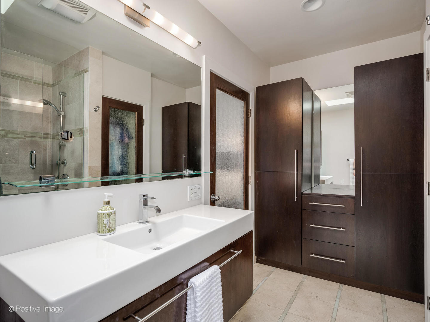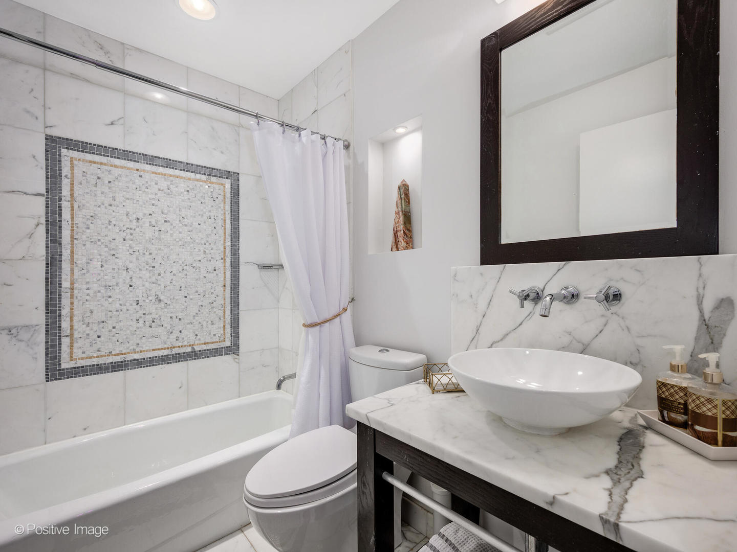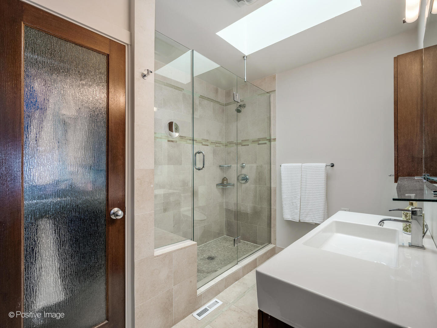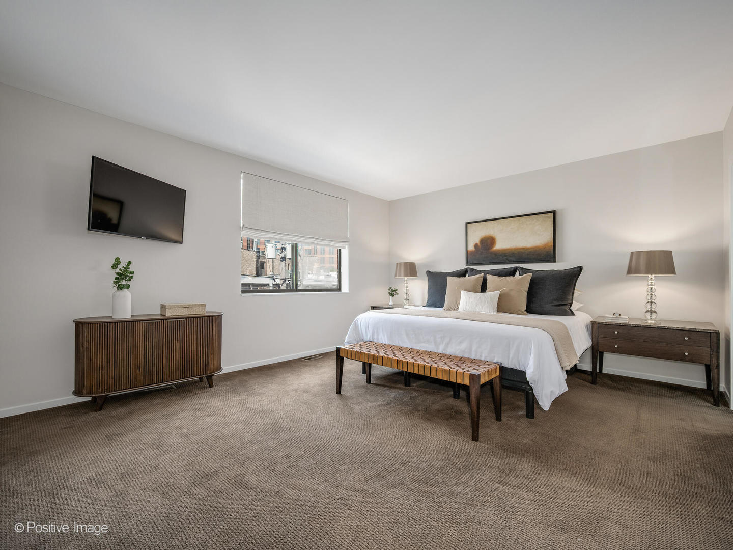 Rarely available, this stunning three bedroom, three bathroom brick townhome in East Lincoln Park offers a massive private terrace and lives like a single family home. Fully renovated with crisp transitional finishes throughout, this home is move in ready. Enter through a private landscaped courtyard to the main level of this home offering a spacious entry foyer with two closets, a large laundry room and the convenience of an updated full bathroom and bedroom. Versatile main level bedroom was just renovated with a brand new sliding barn door and closet ideal for guests or can easily function as a family room or a home office with glass sliding doors leading to a quaint patio overlooking the lush courtyard. On the second level the expansive living and dining rooms are bathed in sunlight from skylights, dramatic two-story windows, and an airy atrium ceiling. The living, dining rooms and kitchen flow seamlessly to an expansive, private landscaped terrace spanning the width of the home with pavers, gas, water & electric, ideal for grilling an entertaining. Sliding glass doors from the living & dining room bring the outside in, while a second set of sliding doors to the kitchen provide added convenience and light. The sleek kitchen is updated with custom Italian cabinetry, stone counter tops, Sub Zero and Wolf appliances and leads to a charming breakfast room. The entire main and second level of the home are outfitted with newer hardwood floors & custom lighting and a second corner fireplace in the living room. The top floor features two spacious bedrooms and two fully renovated bathrooms, including a luxe primary suite with a large en-suite stone bath with a custom vanity and built ins. The second bedrooms offers plenty of space for a desk, has wall to wall closets and and offers a fully updated guest bathroom with custom, stone counter tops and tub surround. This coveted townhome offers a secured gated entry, one car garage, updated mechanicals, full size laundry room and plenty of storage throughout. Located on a quiet tree lined street just steps from top-rated schools (Parker, Latin, St. Clement, Lincoln Elementary, EFAC, and Lincoln Park High), the lakefront, parks, zoo, and some of the city’s best restaurants and shops.