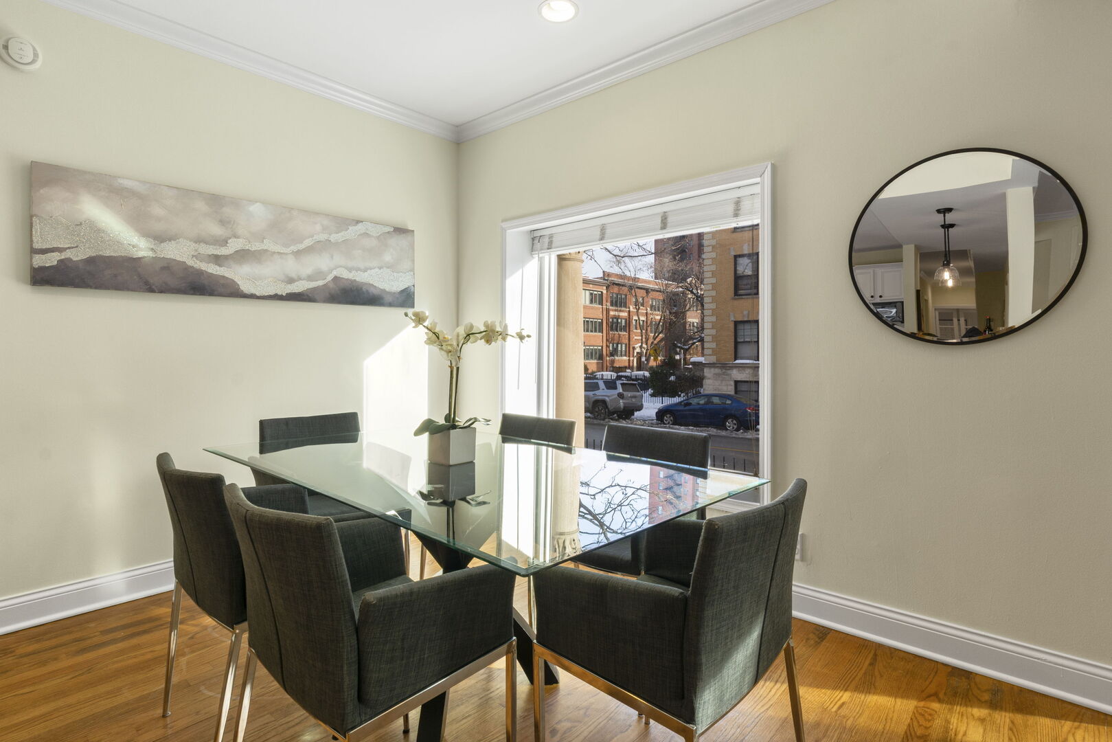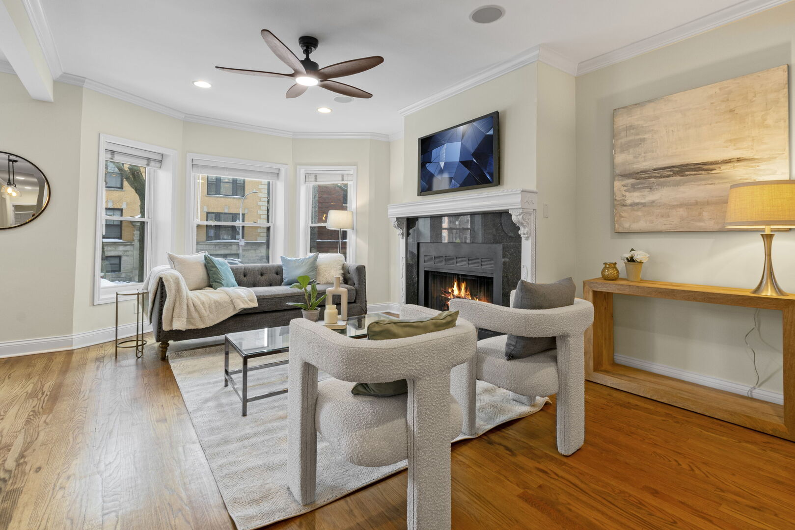Welcome to this bright, spacious, and sun-drenched duplex down in a lovely Greystone building in historic Buena Park! This three bed three bath home boasts the perfect combination of classic and modern features. Main level features an open floor plan with sizable rooms, beautiful crown molding and hardwood flooring. Spacious island kitchen with stainless steel appliances including a new refrigerator and new disposal, granite counters, white cabinets – a great configuration for entertaining while cooking. Kitchen opens to a separate dining area & charming living room with a gas fireplace. Primary suite includes four closets which include two walk ins, a large sitting area that can easily be used as an office space or nursery, an ensuite bathroom with a separate dressing/make-up vanity and walk-in shower with slate tile. Second bedroom and full 2nd bath located on main level. Two living spaces on both floor levels allow for easy entertaining and multi-floor living or the possibility of a roommate with their own space. Lower level includes large family room and a 3rd bedroom with a private bath. Newer in-unit front loading washer/dryer and a very large private storage room accessed from inside the unit, large private covered deck off primary bedroom overlooks a sizeable common backyard for family and fur babies to enjoy! Gorgeous Greystone building in a location that cannot be beat. A commuter’s dream minutes from public transportation with two express buses and the CTA train to downtown, a large assortment of nearby restaurants, shopping, gyms, close to Wrigleyville, the lake – this home is a true must see, freshly painted and move in ready. Ring in the New Year in this most amazing home! Parking options available nearby.