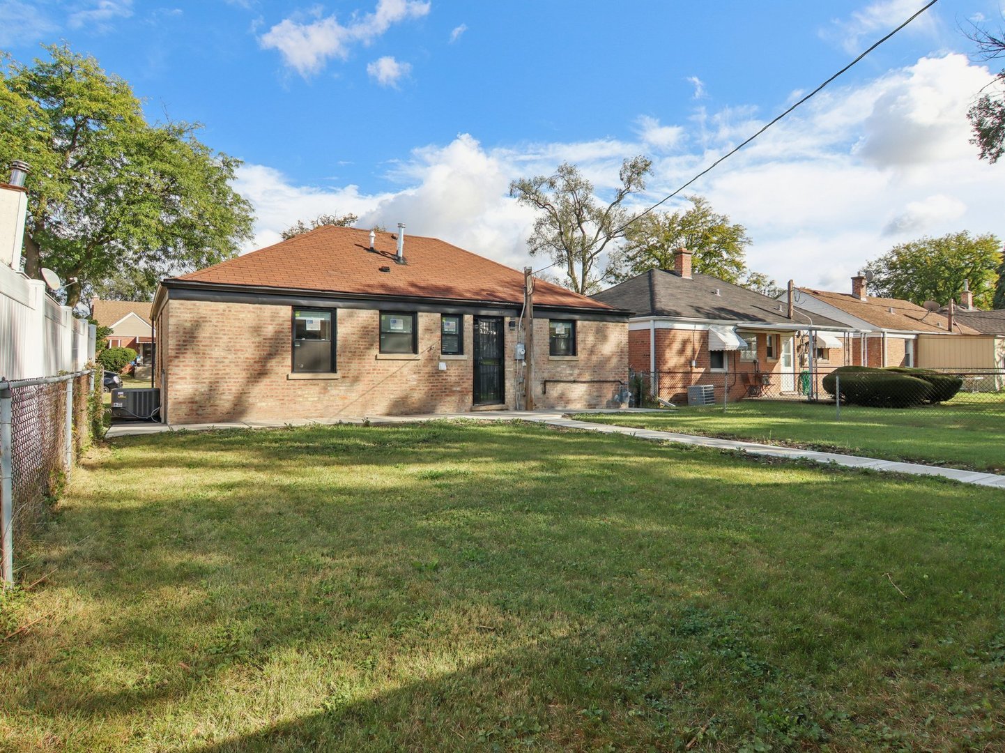 Contemporary and open-concept house now available in Bellwood. This Exceptional single-story modern brick home features Cathedral Ceilings two bedrooms and one bathroom, ideal for comfortable living. The interior boasts beautiful hardwood floors throughout, contributing to its sleek and modern aesthetic. Situated on a quiet street, the property offers a peaceful residential environment. Additionally, the large rear yard provides an excellent space for entertaining, complemented by a detached two-car brick garage for convenience.