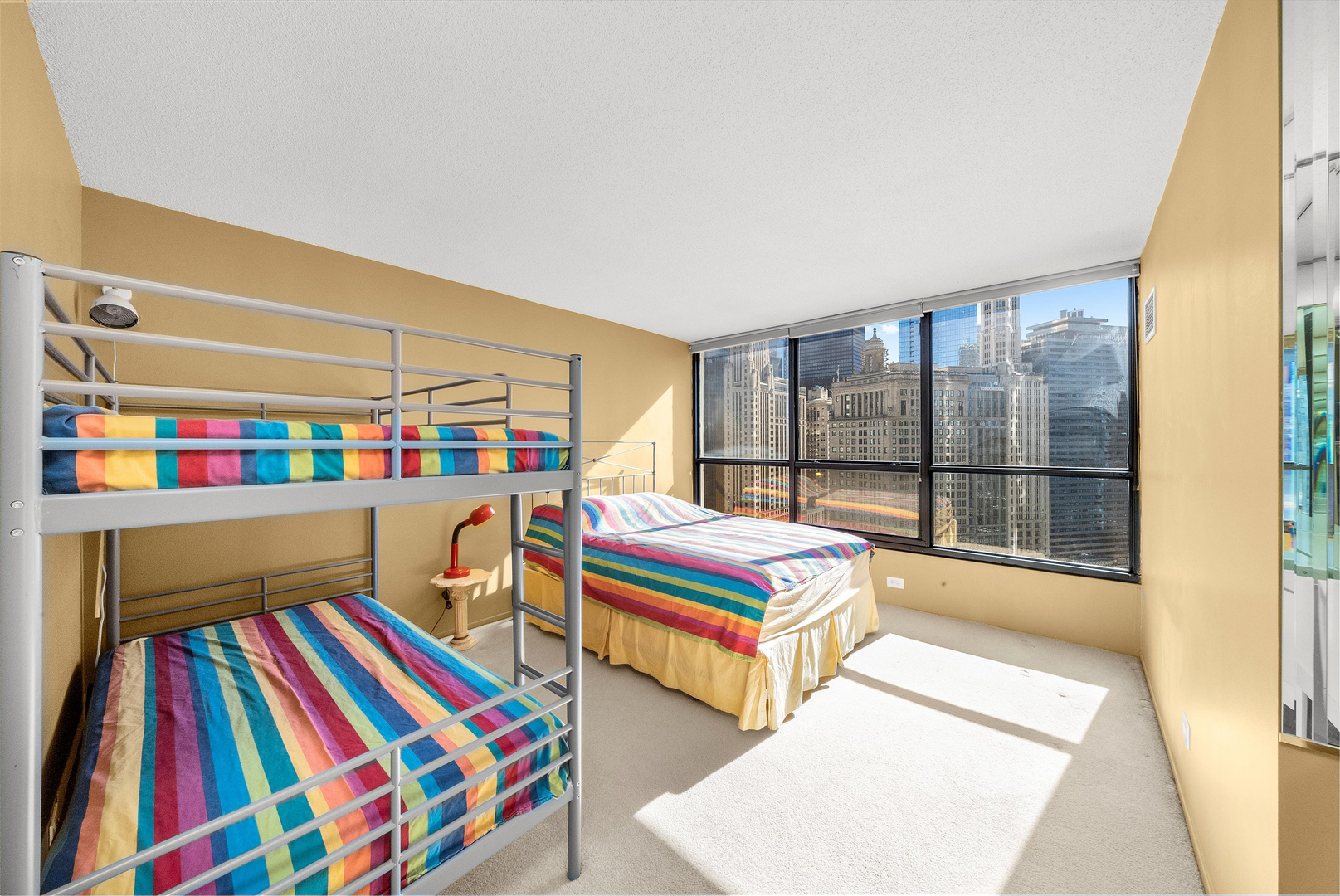 Experience breathtaking skyline views from this stunning south-facing one-bedroom at River Plaza! This sun-filled home features an open kitchen, generous closet space, and captivating views from every window. The oversized bedroom showcases large windows that perfectly frame Chicago’s iconic skyline. Additional highlights include Hunter Douglas blinds throughout, an updated HVAC system, and deeded heated garage parking for 35k. Residents at River Plaza enjoy resort-style amenities, including a 3,000+ sq. ft. fitness center with state-of-the-art LifeTime equipment, a year-round heated indoor lap pool, hot tub, sun deck, hospitality room, smart app-enabled laundry facilities, package room, and Wi-Fi in all common areas. Investor-friendly with no rental cap (minimum one-year lease required per association). Located in the heart of the city, you’re just steps from the Chicago River, Magnificent Mile, world-class dining, nightlife, and convenient transportation options such as the River Water Taxi and Wendella Cruises. Take the 3D tour-click the 3D button to explore this exceptional home today!