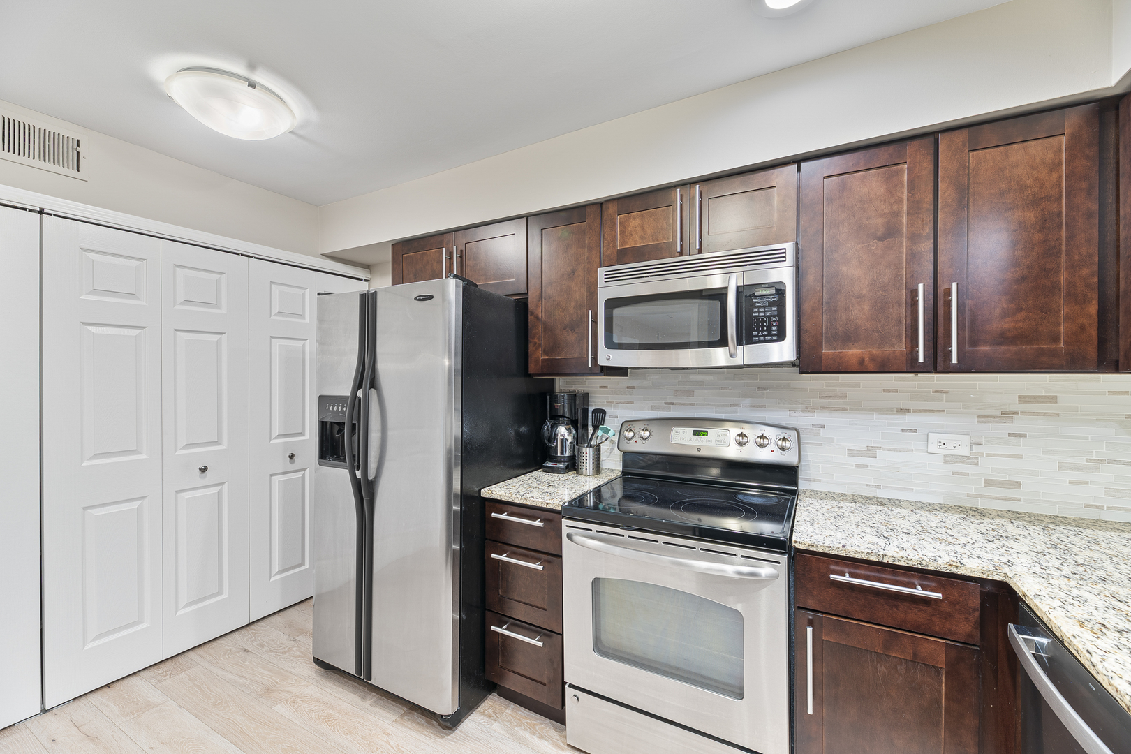 Welcome to 4050 Dundee Rd, Unit 205, Northbrook! This spacious 2-bedroom, 2-bath condo offers the perfect blend of comfort and modern style. The updated kitchen features elegant shaker-style cabinets, granite countertops, designer tile backsplash, stainless steel appliances, and a convenient double pantry. Enjoy meals in the separate formal dining room located just off the kitchen-perfect for everyday living or entertaining guests. A large, light-filled living room opens to Juliet balconies-perfect for fresh air and natural light. The primary suite is a true retreat, offering generous closet space, Juliet balcony access, and a beautifully updated full bath with a sleek stand-up shower. The second bedroom is equally spacious, also with Juliet balcony access, and is complemented by an updated second full bath. Additional highlights include storage unit and one parking space in the heated garage. The community offers fantastic amenities including a pool, clubhouse, and tennis courts-ideal for relaxation and social gatherings. Don’t miss out-schedule your showing today before this incredible opportunity is gone!