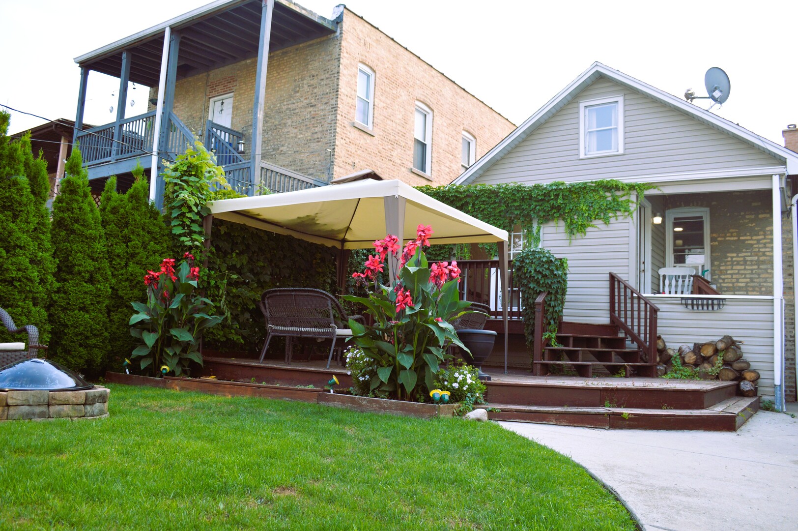 Classic Brick Bungalow in Portage Park! This solid home features a spacious living room and separate formal dining room, all with beautiful hardwood floors. The updated kitchen boasts 42″ custom cabinets, stainless steel appliances, and granite countertops! Sun-filled, enclosed back porch with French doors that lead out to a beautifully landscaped backyard, complete with a deck, gazebo, and garden – ideal for relaxing or entertaining. The second-floor attic and full basement offer ample storage and exciting potential for additional living space. Laundry area in the basement. Sold As-Is. bring your ideas and make it your own!