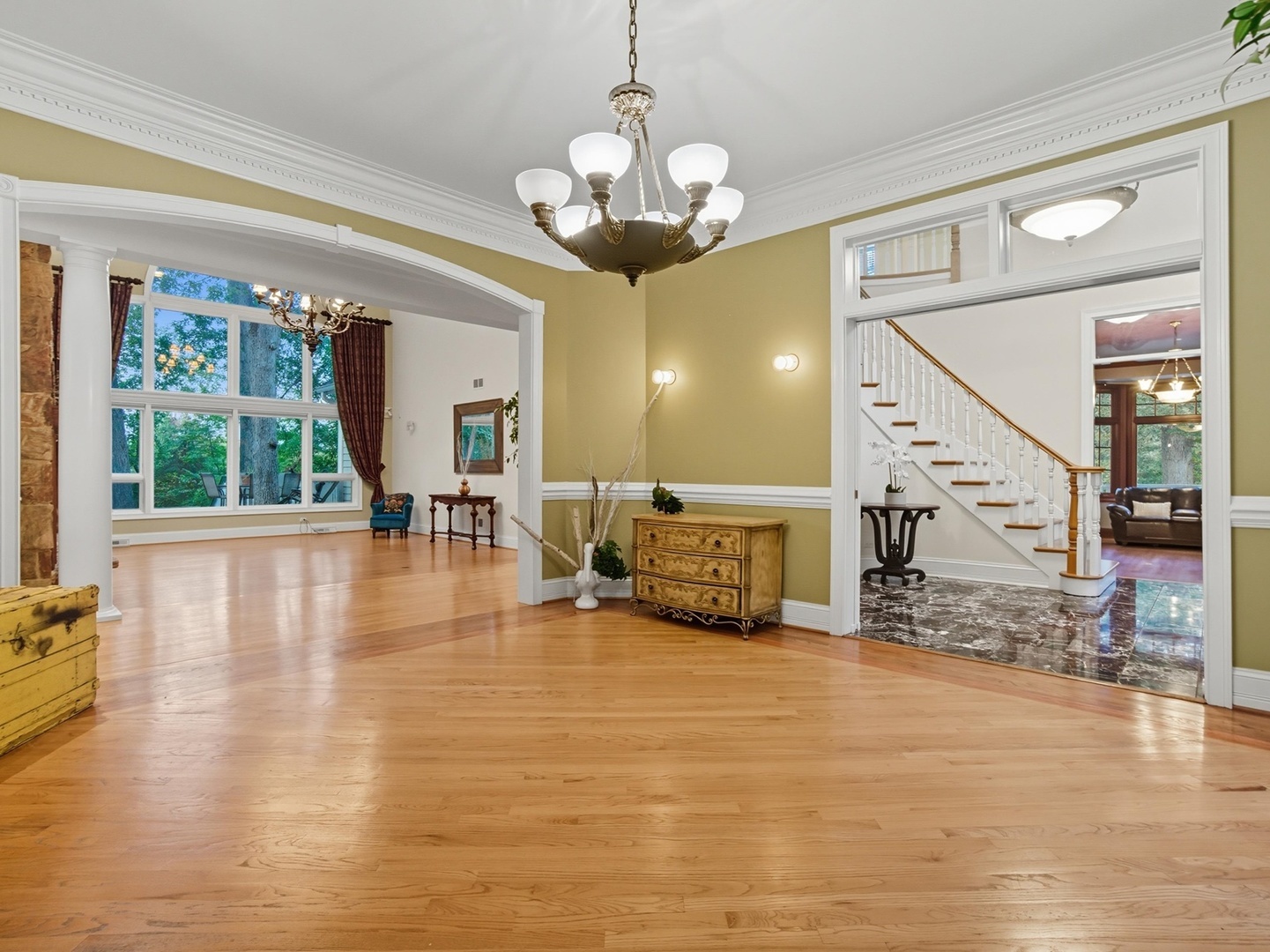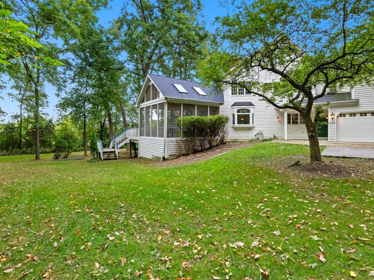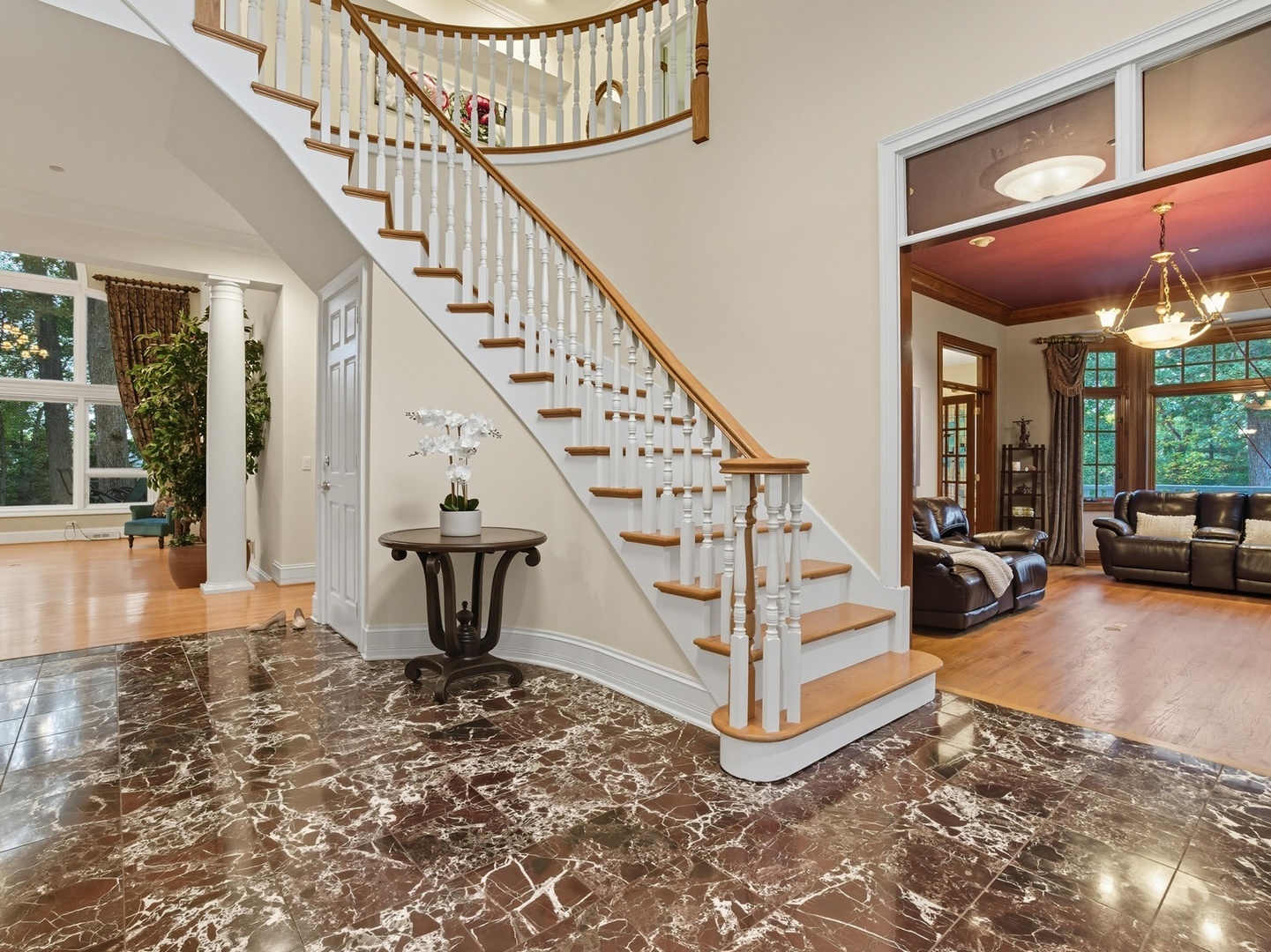 Welcome to 40W930 Trotter Lane – a truly exceptional 6 – bedroom, 7 -bathroom estate nestled on 1.75 wooded acres in the heart of St. Charles. Originally built by a premier luxury home builder as his personal residence, this timeless masterpiece showcases thoughtful craftsmanship and architectural elegance throughout. From the moment you enter, you’re greeted by dramatic volume ceilings, a sweeping staircase, and rich marble flooring. The formal living room features custom cherry millwork and a sunken design that adds both charm and sophistication. The sun-drenched dining room is equally refined with detailed dental crown molding – perfect for entertaining on any scale. At the heart of the home lies a gourmet chef’s kitchen, appointed with premium appliances and expansive granite counters. The adjoining screened porch and large deck offer a seamless transition to the peaceful, wooded outdoors – ideal for morning coffee or evening gatherings. The soaring family room impresses with 20+ ft ceilings, stately white columns, a dramatic floor-to-ceiling fireplace, and oversized Palladian windows that frame the picturesque views. The luxurious first-floor primary suite is a true retreat, featuring a walk-in closet and a spa-like European bath with Jacuzzi, steam shower, and direct access to a private library or office through French doors. Upstairs, you’ll find four generously sized bedrooms, two full baths, and access to an unbeatable in-law arrangement you won’t want to miss. The walk-out basement is built for entertaining, complete with a large recreation area, full bath, a 6th bedroom, and abundant storage. Recent updates include new Roof and Gutter Guards (2021), Furnaces, Humidifier,Thermostat (2022), Three AC units (2022), Two Water Heaters (2022), Refrigerator (2022), Double Oven (2020), New Carpet (2025), Septic Pump (2022), and Septic System Timer (2024) Washer and Dryer (2022). Additional features include a 3.5-car heated garage (with a 4th bay that can be converted back), central vacuum, built-in surround sound, and intercom system. This is more than a home – it’s a rare opportunity to own a one-of-a-kind estate in one of St. Charles’ most desirable locations. Located in the award-winning St. Charles School District.