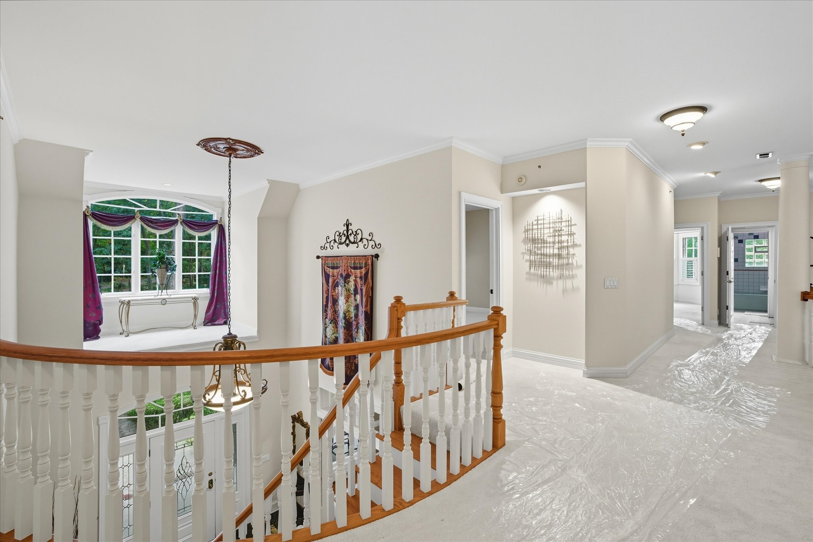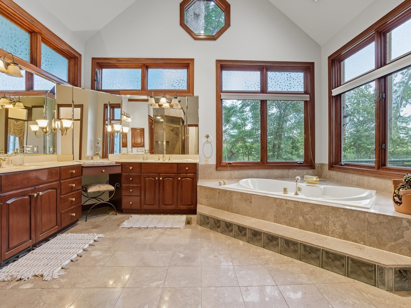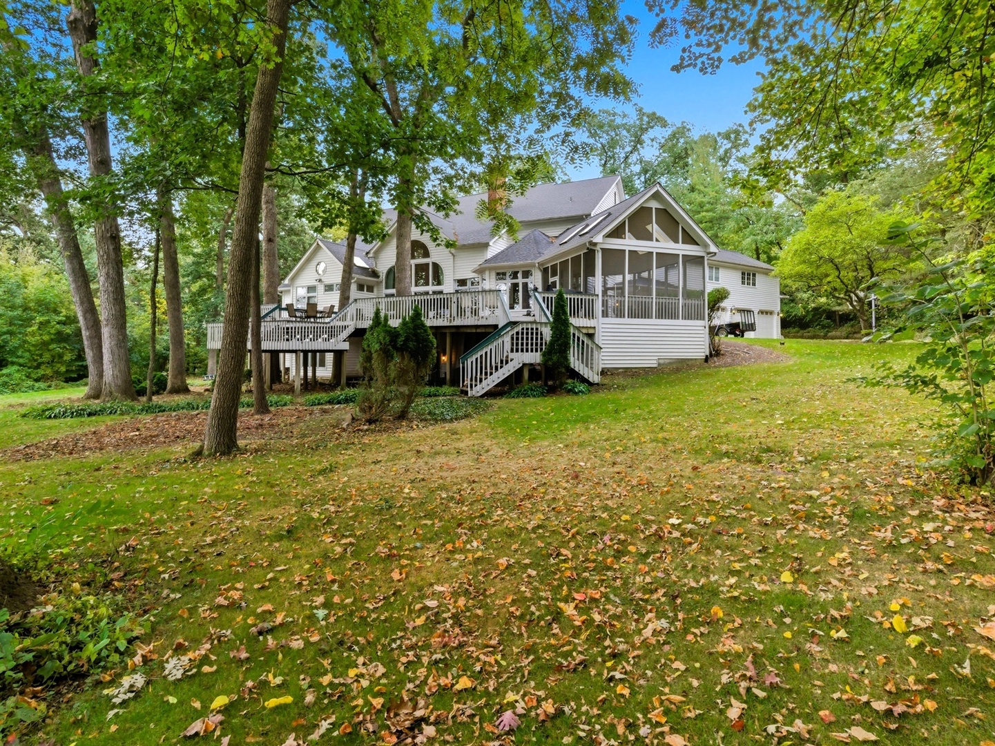Welcome to 40W930 Trotter Lane – a truly exceptional 6 – bedroom, 7 -bathroom estate nestled on 1.75 wooded acres in the heart of St. Charles. Originally built by a premier luxury home builder as his personal residence, this timeless masterpiece showcases thoughtful craftsmanship and architectural elegance throughout. From the moment you enter, you’re greeted by dramatic volume ceilings, a sweeping staircase, and rich marble flooring. The formal living room features custom cherry millwork and a sunken design that adds both charm and sophistication. The sun-drenched dining room is equally refined with detailed dental crown molding – perfect for entertaining on any scale. At the heart of the home lies a gourmet chef’s kitchen, appointed with premium appliances and expansive granite counters. The adjoining screened porch and large deck offer a seamless transition to the peaceful, wooded outdoors – ideal for morning coffee or evening gatherings. The soaring family room impresses with 20+ ft ceilings, stately white columns, a dramatic floor-to-ceiling fireplace, and oversized Palladian windows that frame the picturesque views. The luxurious first-floor primary suite is a true retreat, featuring a walk-in closet and a spa-like European bath with Jacuzzi, steam shower, and direct access to a private library or office through French doors. Upstairs, you’ll find four generously sized bedrooms, two full baths, and access to an unbeatable in-law arrangement you won’t want to miss. The walk-out basement is built for entertaining, complete with a large recreation area, full bath, a 6th bedroom, and abundant storage. Recent updates include new Roof and Gutter Guards (2021), Furnaces, Humidifier,Thermostat (2022), Three AC units (2022), Two Water Heaters (2022), Refrigerator (2022), Double Oven (2020), New Carpet (2025), Septic Pump (2022), and Septic System Timer (2024) Washer and Dryer (2022). Additional features include a 3.5-car heated garage (with a 4th bay that can be converted back), central vacuum, built-in surround sound, and intercom system. This is more than a home – it’s a rare opportunity to own a one-of-a-kind estate in one of St. Charles’ most desirable locations. Located in the award-winning St. Charles School District.