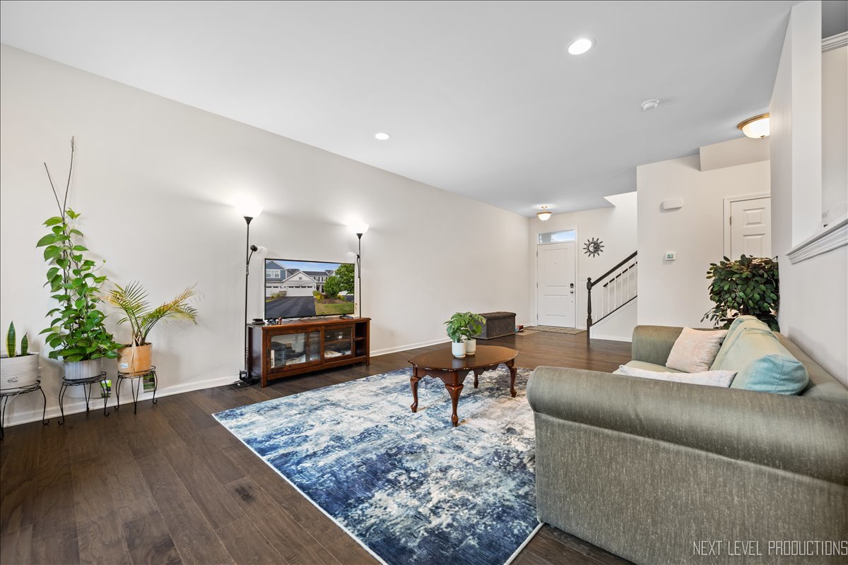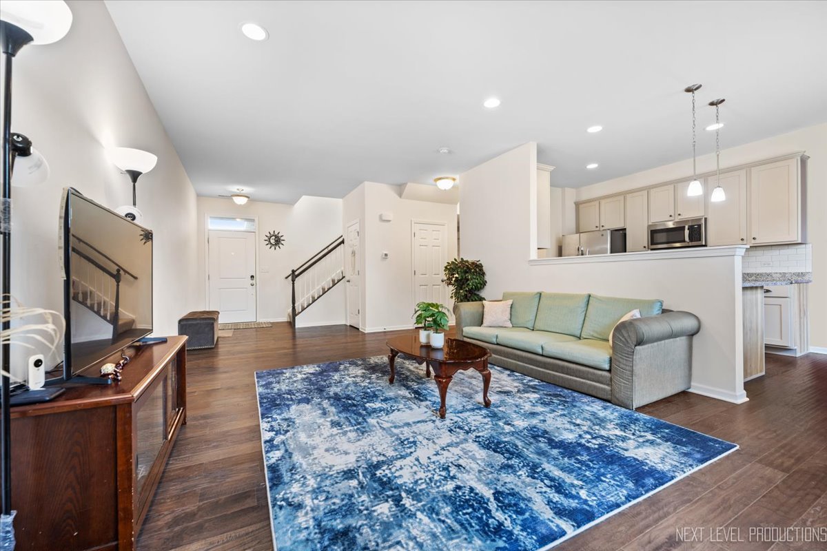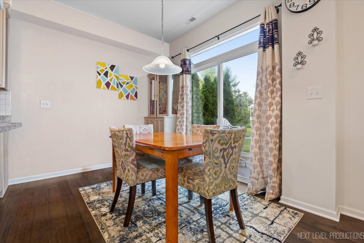 Discover this charming east facing 2-bedroom townhome nestled in the sought-after Gramercy Square community! Step into a welcoming foyer that flows seamlessly into a spacious living room, bathed in natural light and accented with elegant wood laminate flooring, creating a warm and inviting atmosphere. The open-concept layout connects the living area to a dining space and a well-appointed kitchen, featuring ample cabinetry, generous counter space, granite countertops with a stylish tile backsplash, stainless steel appliances, and a convenient pantry closet. Sliding glass doors lead to a private patio and backyard, perfect for relaxation. A half bath on the main level adds practicality. Retreat upstairs and enjoy a generous master suite with a spacious walk-in closet, dual vanity, and a modern shower. The second bedroom complemented by a second full bath, a cozy loft area, and the added convenience of an upstairs laundry complete the second story. A private two-car garage provides ample space for vehicles or additional storage. Located in the highly acclaimed Indian Prairie School District 204. Its prime location near Route 59 and 75th Street offers easy access to shopping, dining, and major commuter routes, with a nearby school bus pickup for added convenience.