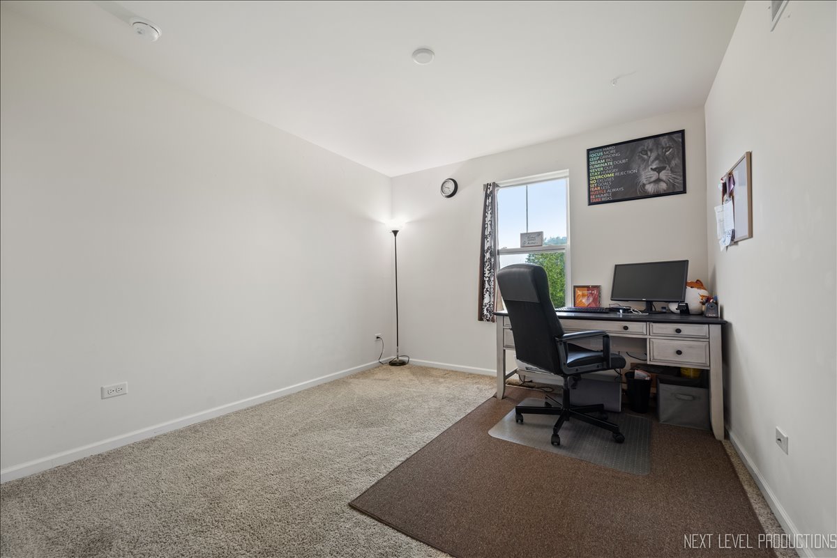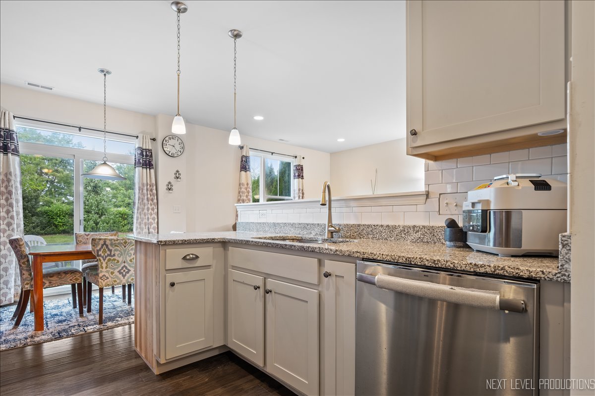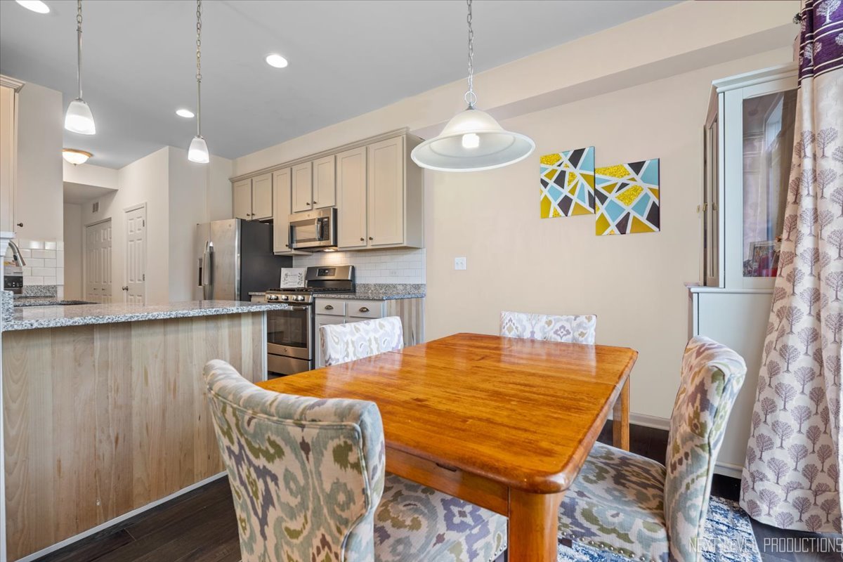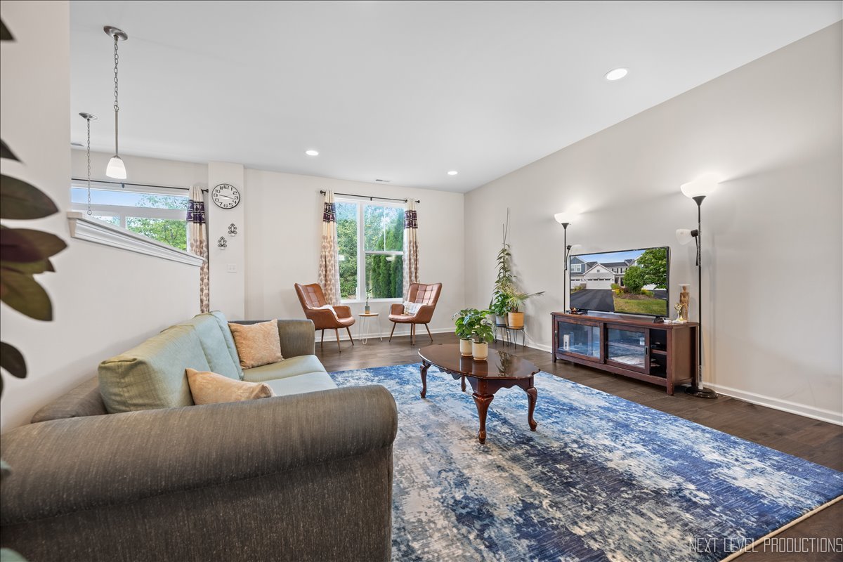 Discover this charming east facing 2-bedroom townhome nestled in the sought-after Gramercy Square community! Step into a welcoming foyer that flows seamlessly into a spacious living room, bathed in natural light and accented with elegant wood laminate flooring, creating a warm and inviting atmosphere. The open-concept layout connects the living area to a dining space and a well-appointed kitchen, featuring ample cabinetry, generous counter space, granite countertops with a stylish tile backsplash, stainless steel appliances, and a convenient pantry closet. Sliding glass doors lead to a private patio and backyard, perfect for relaxation. A half bath on the main level adds practicality. Retreat upstairs and enjoy a generous master suite with a spacious walk-in closet, dual vanity, and a modern shower. The second bedroom complemented by a second full bath, a cozy loft area, and the added convenience of an upstairs laundry complete the second story. A private two-car garage provides ample space for vehicles or additional storage. Located in the highly acclaimed Indian Prairie School District 204. Its prime location near Route 59 and 75th Street offers easy access to shopping, dining, and major commuter routes, with a nearby school bus pickup for added convenience.