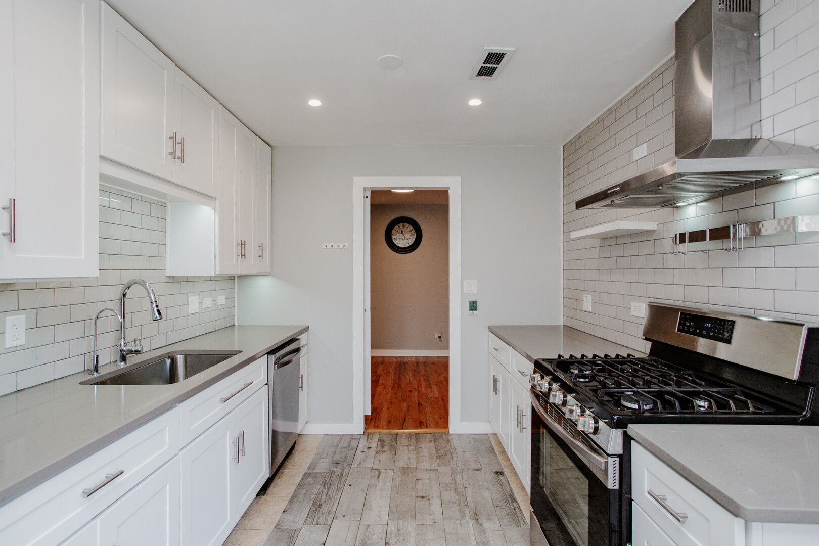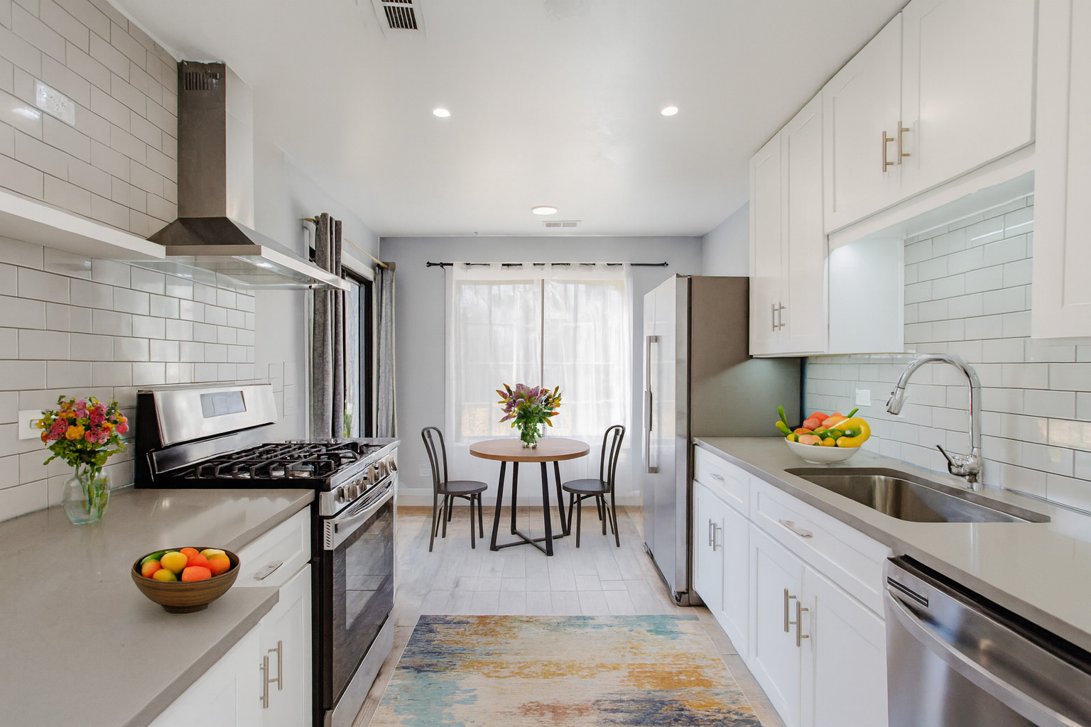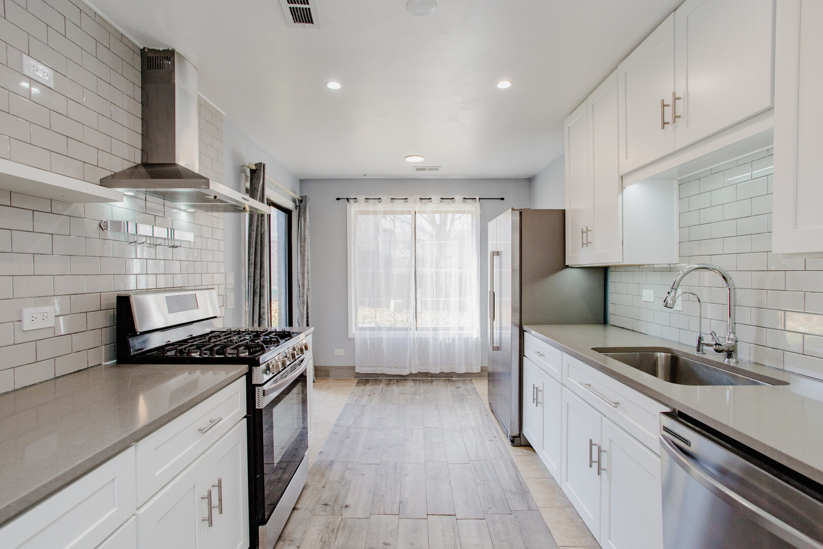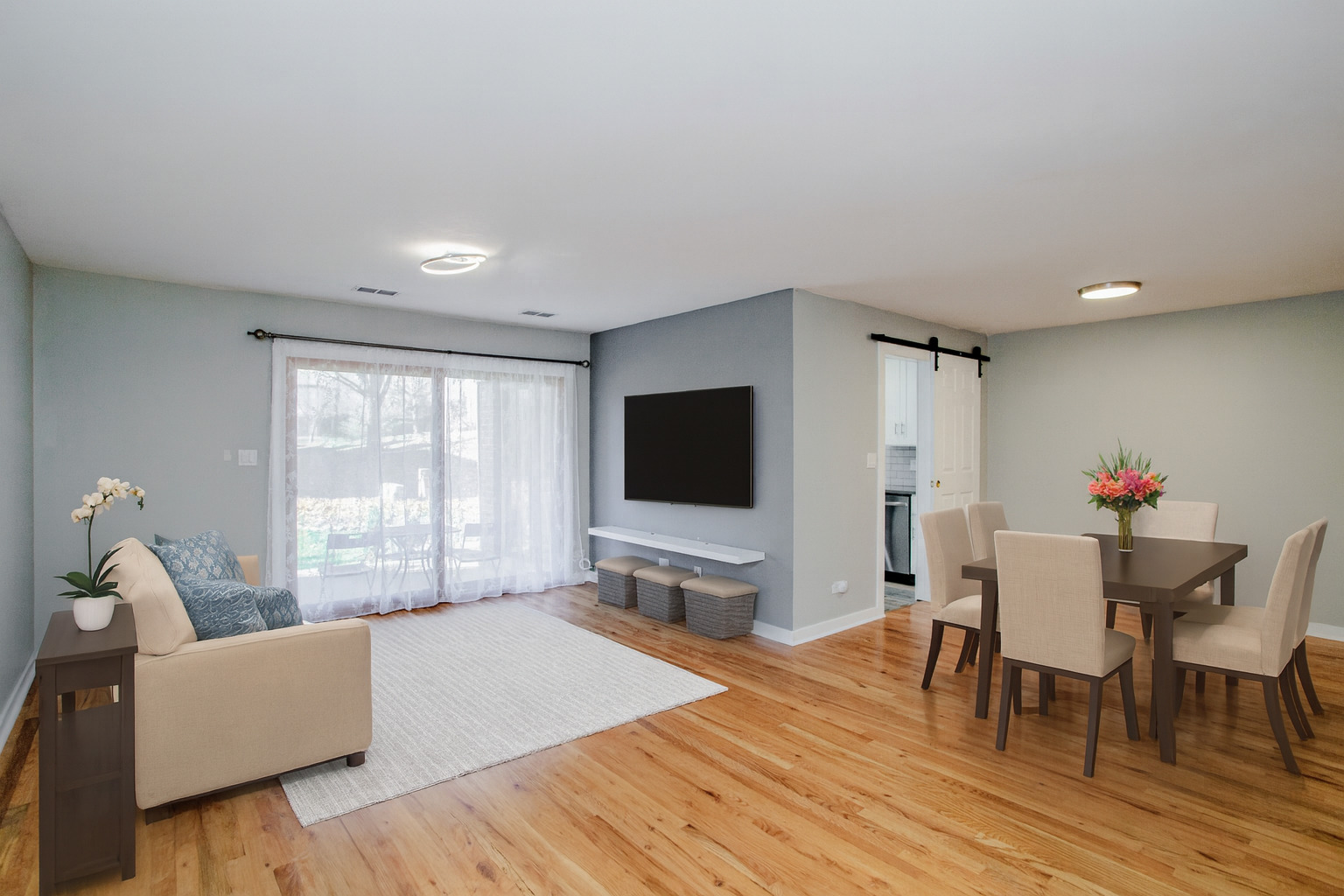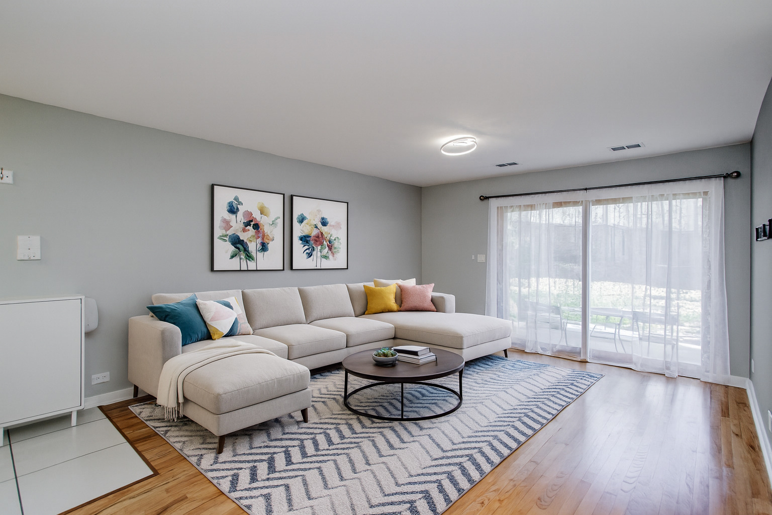 Welcome to this beautifully updated 2-bedroom, 1-bath first-floor home in the desirable Pheasant Trail subdivision of Arlington Heights, offering a 1-car garage, an additional exterior driveway space, and ample guest parking. Enjoy a spacious layout featuring hardwood floors in the living and dining rooms, carpeted bedrooms, double-pane windows, and large glass sliding doors leading to a 13′ x 11′ concrete patio overlooking peaceful green space with a 6′ x 4′ storage area-perfect for relaxing or entertaining. The modern kitchen (remodeled in 2020) impresses with soft-close white cabinetry, quartz countertops, white-and-gray timeless backsplash, LED under-cabinet lighting, deep stainless-steel sink with modern faucet, heated tile floors, stainless-steel appliances including a large fridge, range with stainless-steel hood, dishwasher (2024), garbage disposal, LED recessed lighting, and a reverse osmosis water filtration system, plus room for a breakfast table overlooking the patio. The fully remodeled 2022 bathroom showcases floor-to-ceiling porcelain tile, heated tile floor, heated towel rack, sleek vanity, LED light fixture, and a contemporary mirrored upper cabinet, all enhanced by a space-saving pocket door. The primary bedroom features an impressive 8′ x 6′ walk-in closet, and a second generous size bedroom. Additional highlights include a ready-to-use TV bracket with shelf, contemporary dining room fixture, and furnace/AC replaced in July 2021. The large garage includes a Chamberlain 1/2 HP opener. Located minutes from transportation, shopping, golf, entertainment, Route 53, Deer Park Town Center, and steps from Buffalo Creek Forest Preserve with 5.5 miles of walking trails-plus moderate taxes and a low $275 assessment covering water, parking, exterior maintenance, lawn care, scavenger, snow removal, and insurance. Quick closing possible. Click the Virtual Tour for an immersive experience-move in, enjoy, and make this exceptional home yours today!