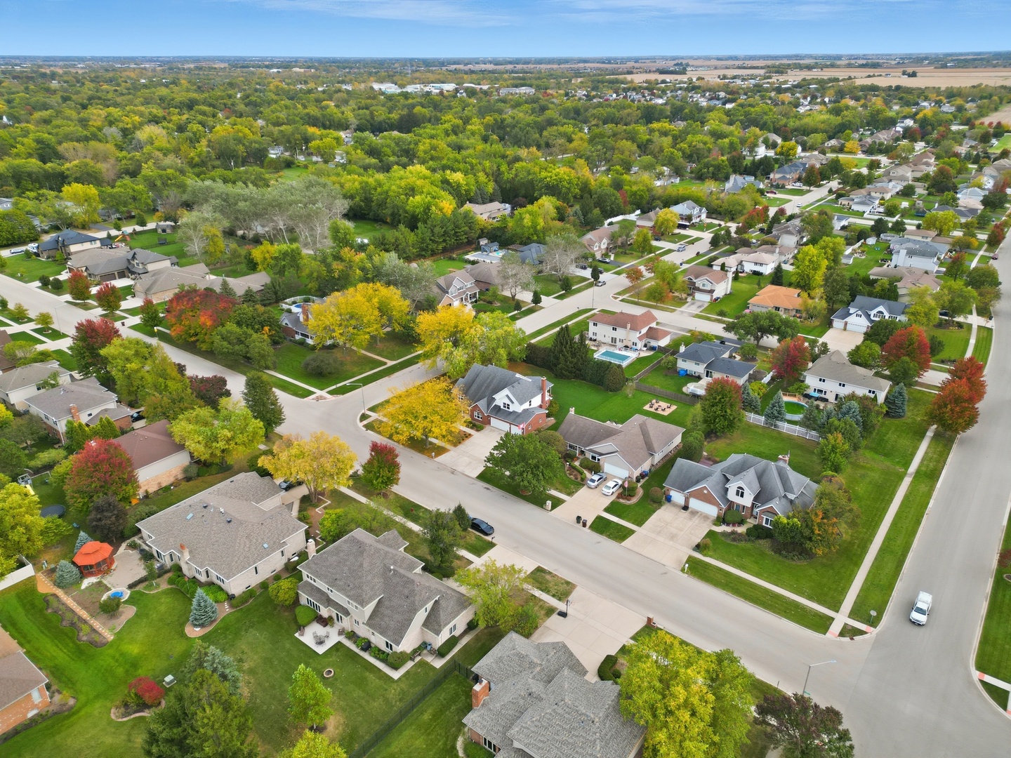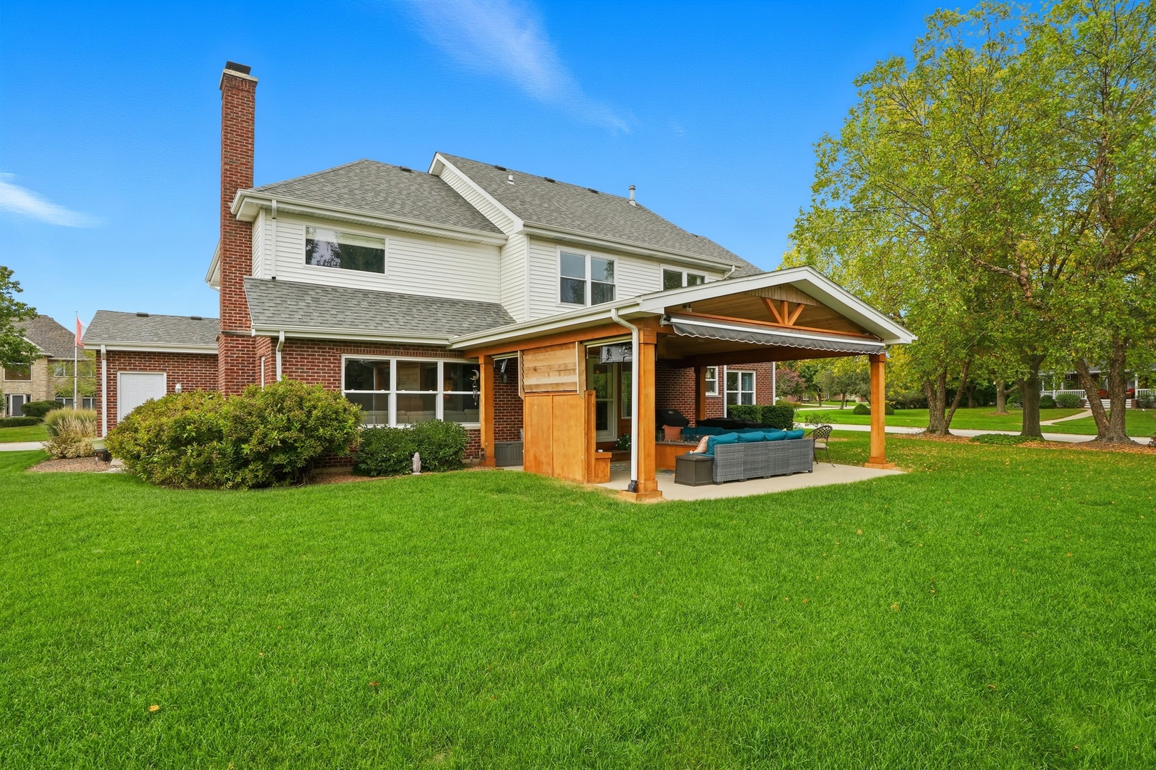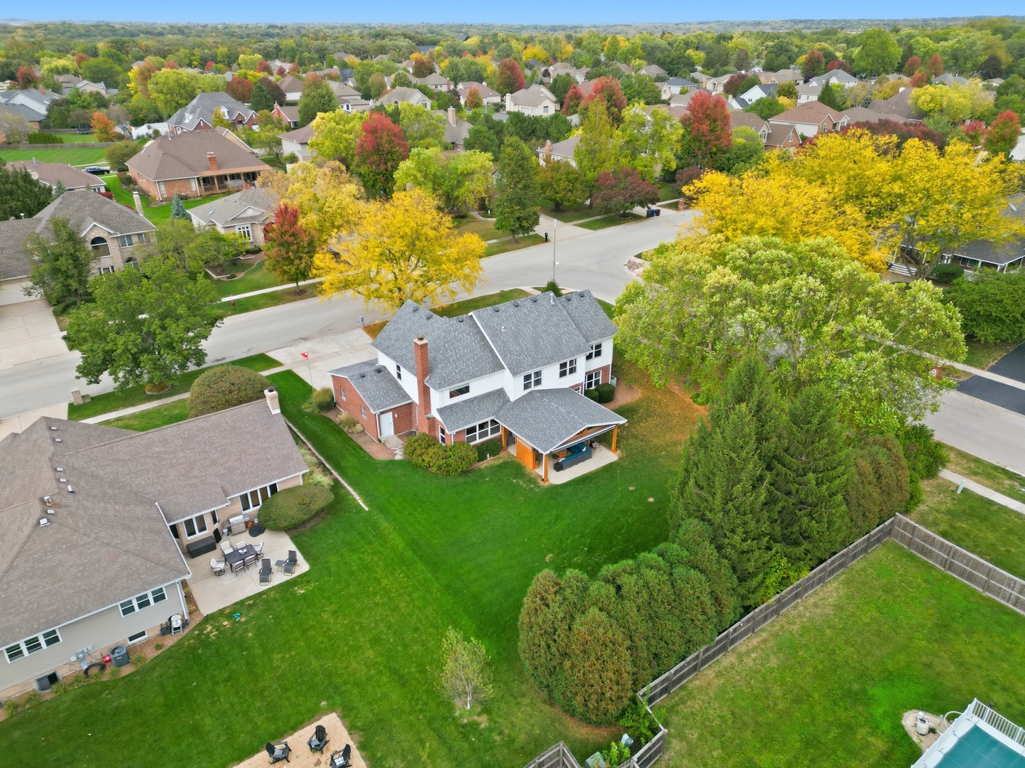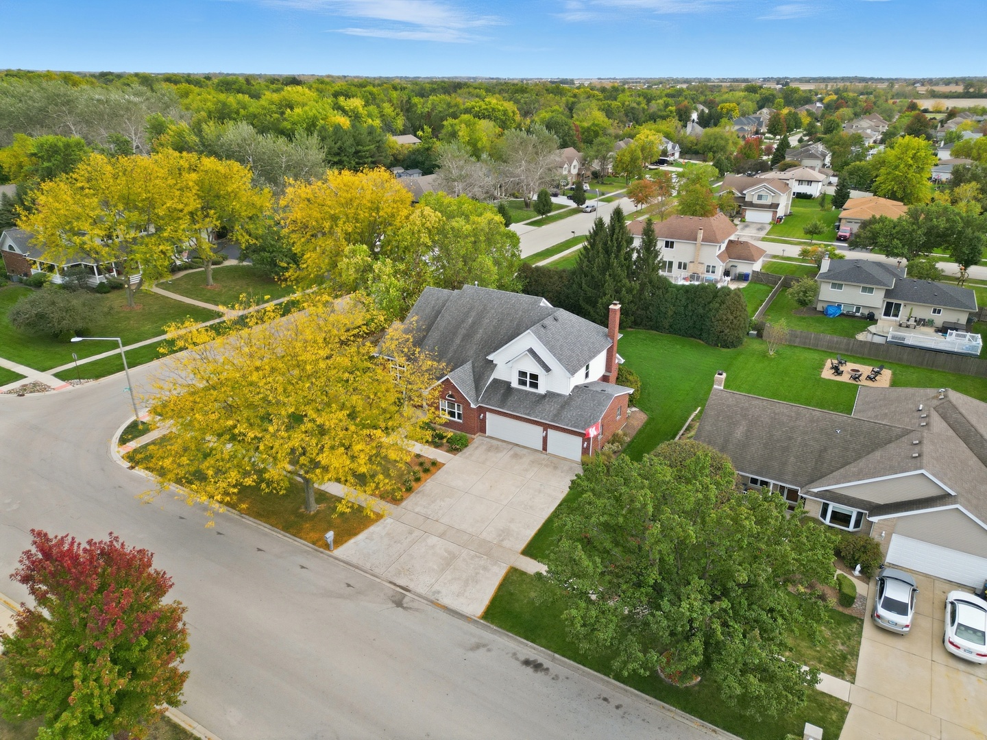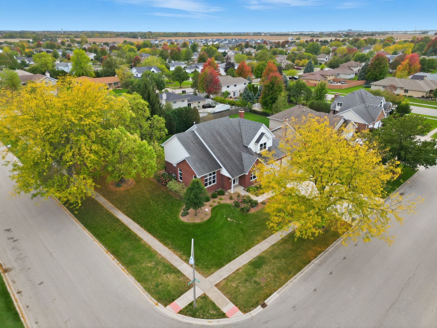 Immaculate and full of updates, this wonderfully located 2-story corner-lot home features 4 Large Bedrooms, 4 Bathrooms, and over 4,000 finished SF! Located in the Heart of New Lenox, near Wildwood Park, New Lenox Commons, all the shopping Rt. 30 has to offer, with quick access to I-80, this home has it all. Upon entering, you are greeted with an open and airy foyer with the vaulted ceiling home office conveniently located and equipped with private French doors. Huge 2 story living room opens to the formal dining room with hardwood flooring. The spacious eat-in kitchen, renovated in 2015, is finished with Tri-Star cabinetry, granite countertops, cooktop stove, massive island, and TWO pantries. Step down into the generously sized family room with hardwood flooring and a charming brick gas fireplace. The main level laundry room features built in cabinetry, folding table, utility sink and second refrigerator along with a gas hookup for second dryer if desired. The main level is rounded out with the beautifully renovated powder room. Upstairs you will find all 4 bedrooms including the master bedroom complete with vaulted ceilings, HUGE fully renovated master bathroom (2021) with double vanity sink, soaking tub, full tile walk-in shower, and in-bathroom walk-in closet with large tile flooring continued. The entire upstairs was refloored with scraped bamboo hardwood (2022). The fully finished basement is an entertainer’s dream with a full bar, 9′ poured walls and 8′ ceiling with drop tile, full bathroom, and massive storage space. Step outside from the kitchen to the custom covered patio with recessed lighting, ceiling fan, 3 TV hook-ups and built-ins, natural gas line for the grill, AND Sunsetter awning for added shade. Last but not least is the heated 3-car garage with additional utility sink, workbench, service door to the backyard, and 3-car wide concrete driveway. Updates include: All New Pella Windows (2020) Roof (2013) Floors (2022)