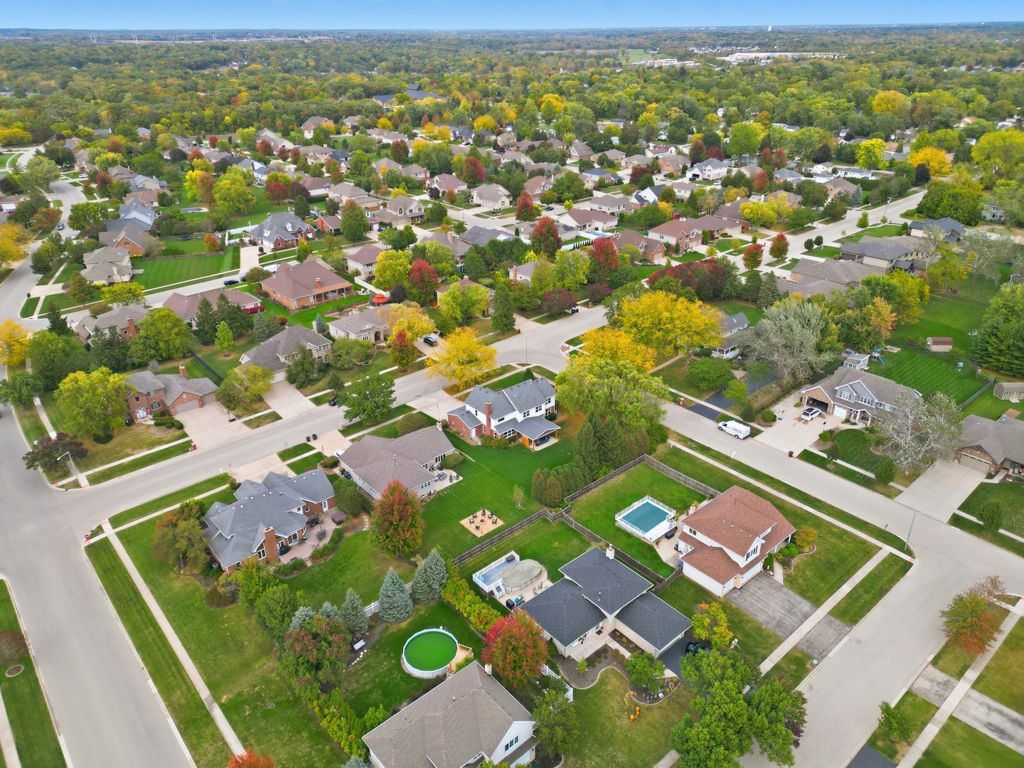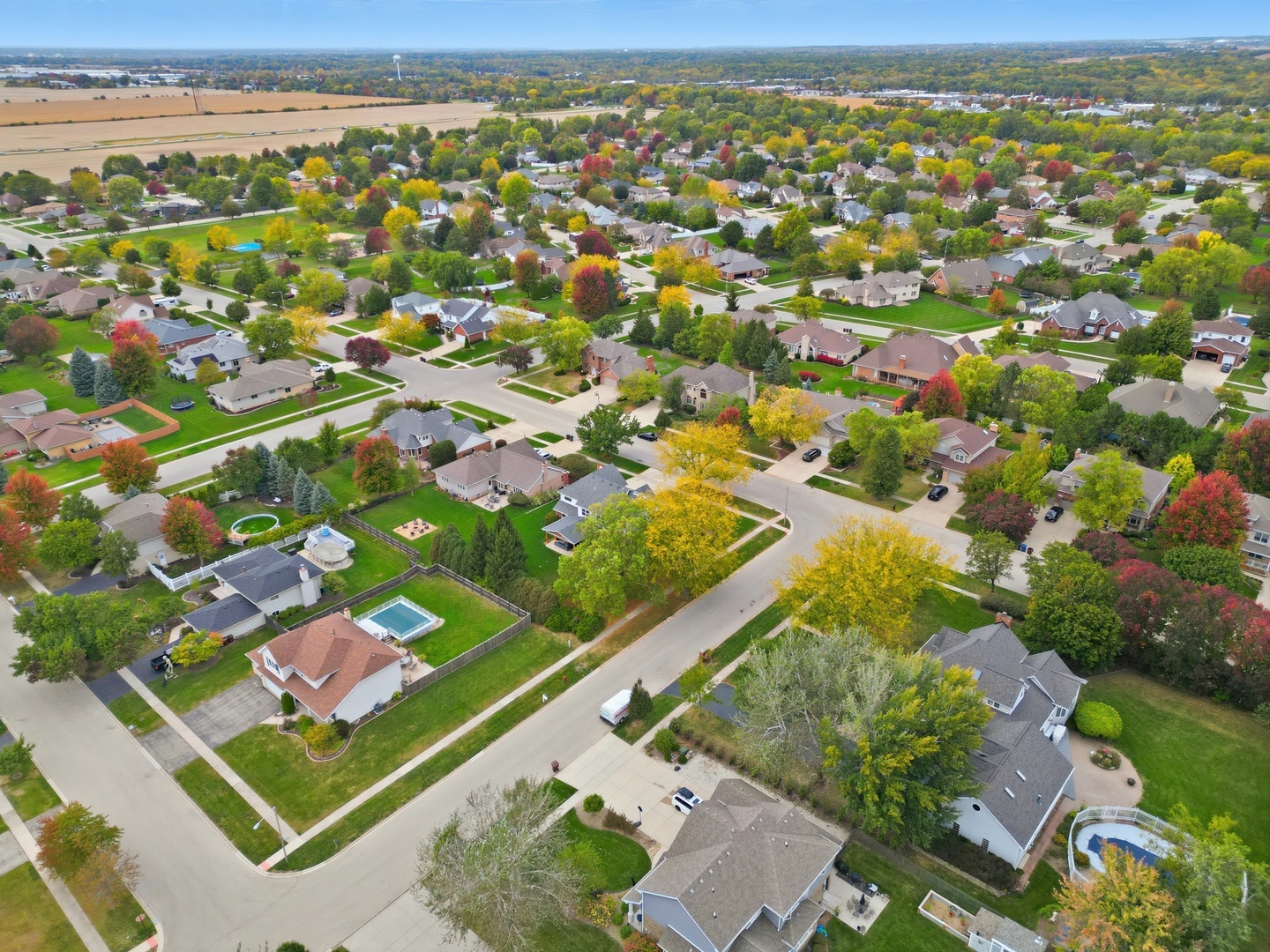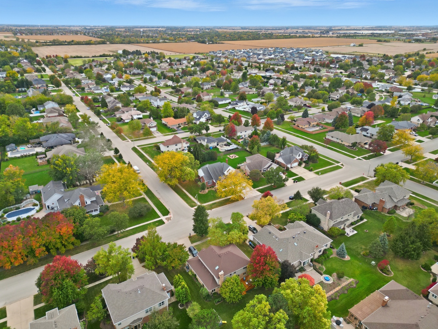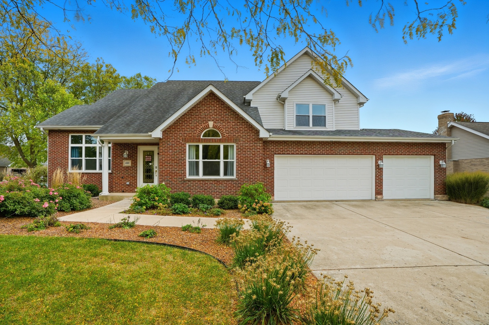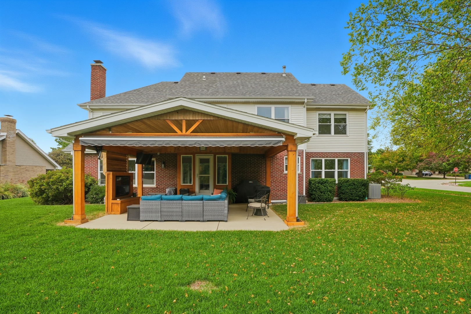Immaculate and full of updates, this wonderfully located 2-story corner-lot home features 4 Large Bedrooms, 4 Bathrooms, and over 4,000 finished SF! Located in the Heart of New Lenox, near Wildwood Park, New Lenox Commons, all the shopping Rt. 30 has to offer, with quick access to I-80, this home has it all. Upon entering, you are greeted with an open and airy foyer with the vaulted ceiling home office conveniently located and equipped with private French doors. Huge 2 story living room opens to the formal dining room with hardwood flooring. The spacious eat-in kitchen, renovated in 2015, is finished with Tri-Star cabinetry, granite countertops, cooktop stove, massive island, and TWO pantries. Step down into the generously sized family room with hardwood flooring and a charming brick gas fireplace. The main level laundry room features built in cabinetry, folding table, utility sink and second refrigerator along with a gas hookup for second dryer if desired. The main level is rounded out with the beautifully renovated powder room. Upstairs you will find all 4 bedrooms including the master bedroom complete with vaulted ceilings, HUGE fully renovated master bathroom (2021) with double vanity sink, soaking tub, full tile walk-in shower, and in-bathroom walk-in closet with large tile flooring continued. The entire upstairs was refloored with scraped bamboo hardwood (2022). The fully finished basement is an entertainer’s dream with a full bar, 9′ poured walls and 8′ ceiling with drop tile, full bathroom, and massive storage space. Step outside from the kitchen to the custom covered patio with recessed lighting, ceiling fan, 3 TV hook-ups and built-ins, natural gas line for the grill, AND Sunsetter awning for added shade. Last but not least is the heated 3-car garage with additional utility sink, workbench, service door to the backyard, and 3-car wide concrete driveway. Updates include: All New Pella Windows (2020) Roof (2013) Floors (2022)