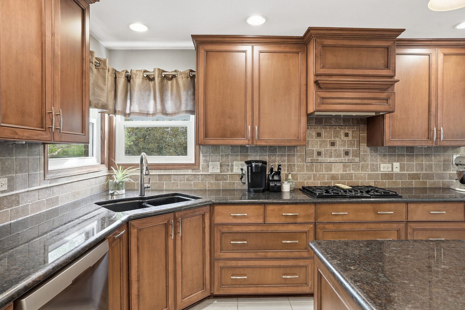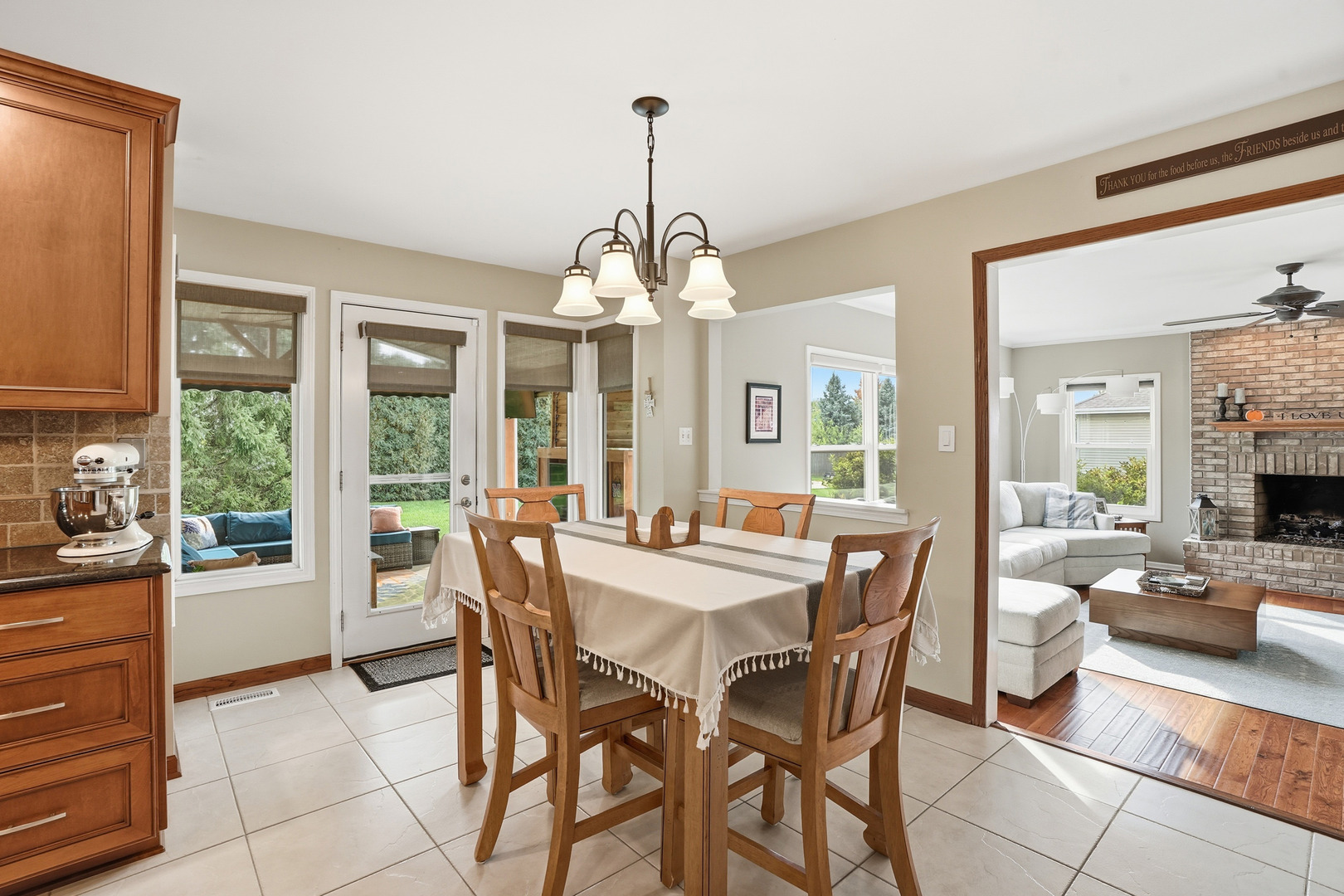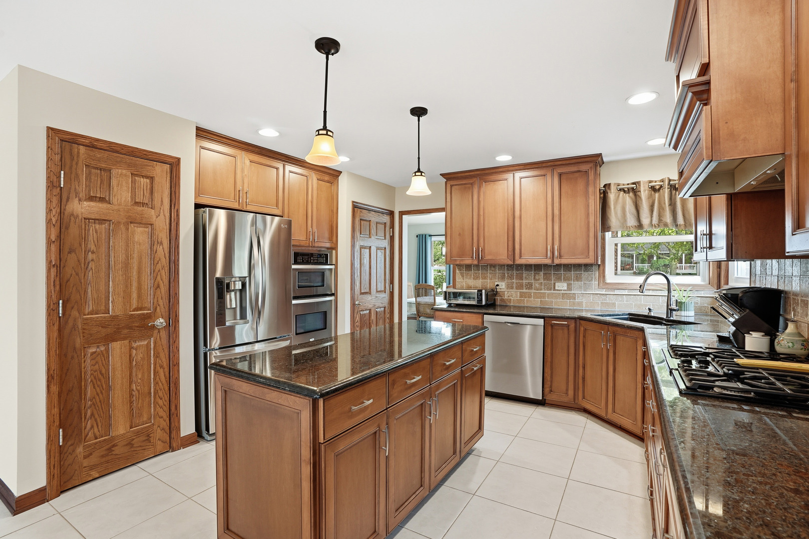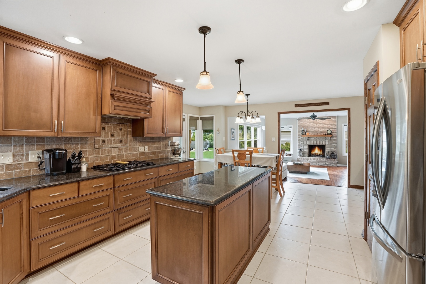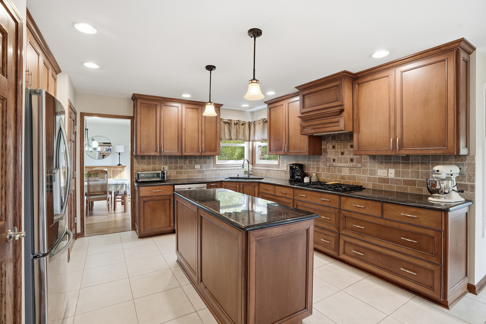 Immaculate and full of updates, this wonderfully located 2-story corner-lot home features 4 Large Bedrooms, 4 Bathrooms, and over 4,000 finished SF! Located in the Heart of New Lenox, near Wildwood Park, New Lenox Commons, all the shopping Rt. 30 has to offer, with quick access to I-80, this home has it all. Upon entering, you are greeted with an open and airy foyer with the vaulted ceiling home office conveniently located and equipped with private French doors. Huge 2 story living room opens to the formal dining room with hardwood flooring. The spacious eat-in kitchen, renovated in 2015, is finished with Tri-Star cabinetry, granite countertops, cooktop stove, massive island, and TWO pantries. Step down into the generously sized family room with hardwood flooring and a charming brick gas fireplace. The main level laundry room features built in cabinetry, folding table, utility sink and second refrigerator along with a gas hookup for second dryer if desired. The main level is rounded out with the beautifully renovated powder room. Upstairs you will find all 4 bedrooms including the master bedroom complete with vaulted ceilings, HUGE fully renovated master bathroom (2021) with double vanity sink, soaking tub, full tile walk-in shower, and in-bathroom walk-in closet with large tile flooring continued. The entire upstairs was refloored with scraped bamboo hardwood (2022). The fully finished basement is an entertainer’s dream with a full bar, 9′ poured walls and 8′ ceiling with drop tile, full bathroom, and massive storage space. Step outside from the kitchen to the custom covered patio with recessed lighting, ceiling fan, 3 TV hook-ups and built-ins, natural gas line for the grill, AND Sunsetter awning for added shade. Last but not least is the heated 3-car garage with additional utility sink, workbench, service door to the backyard, and 3-car wide concrete driveway. Updates include: All New Pella Windows (2020) Roof (2013) Floors (2022)
