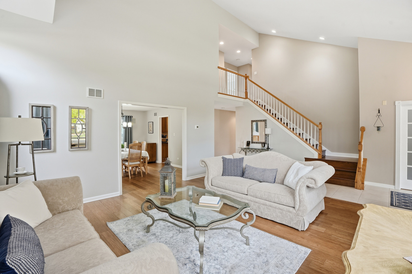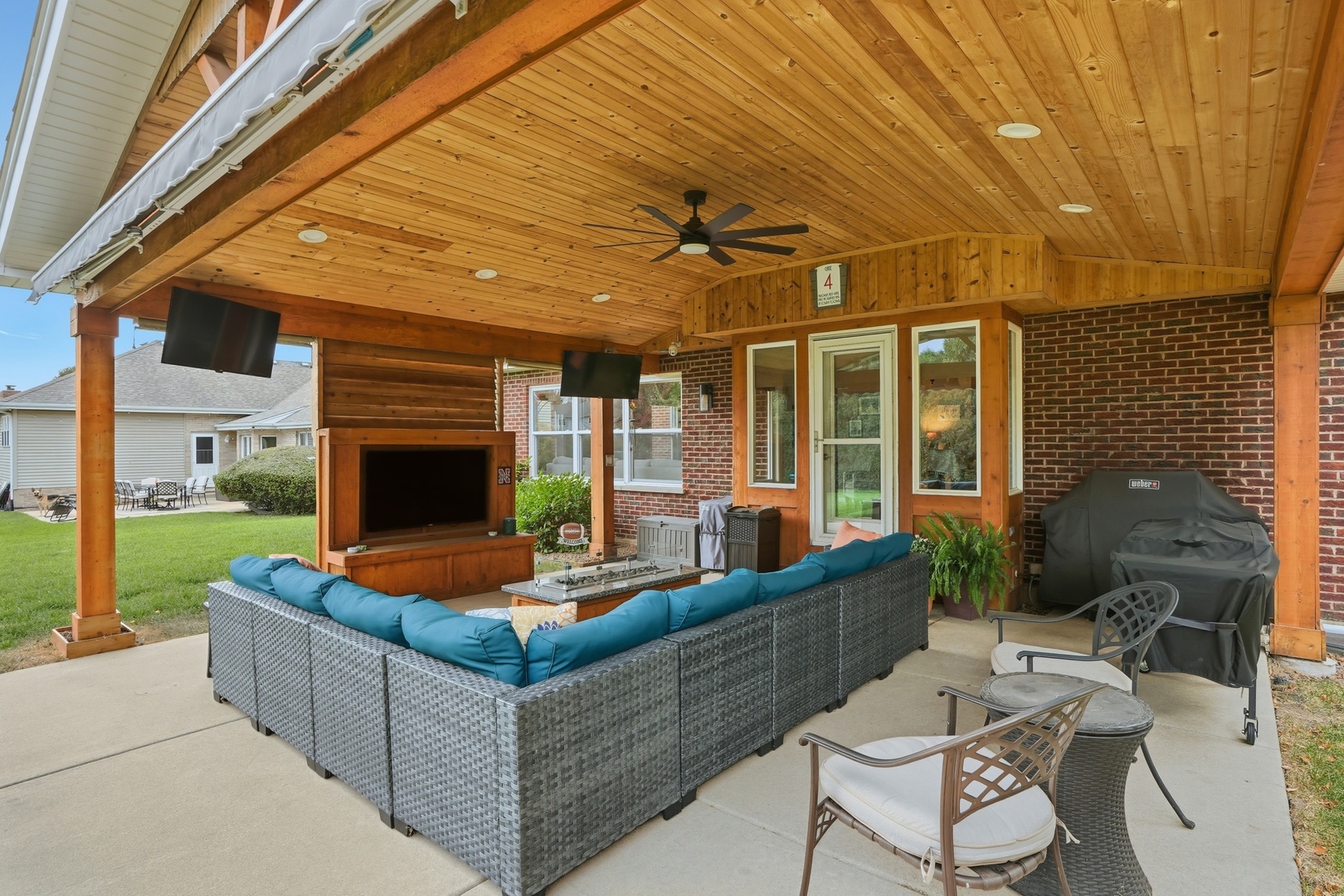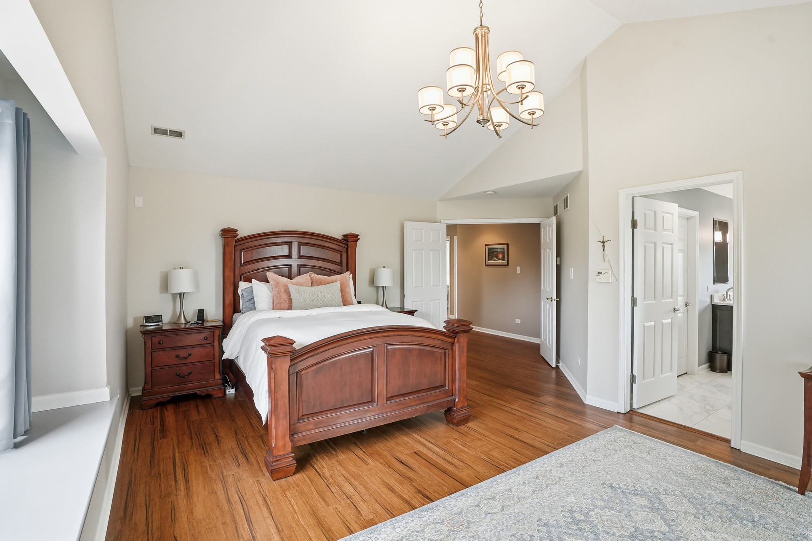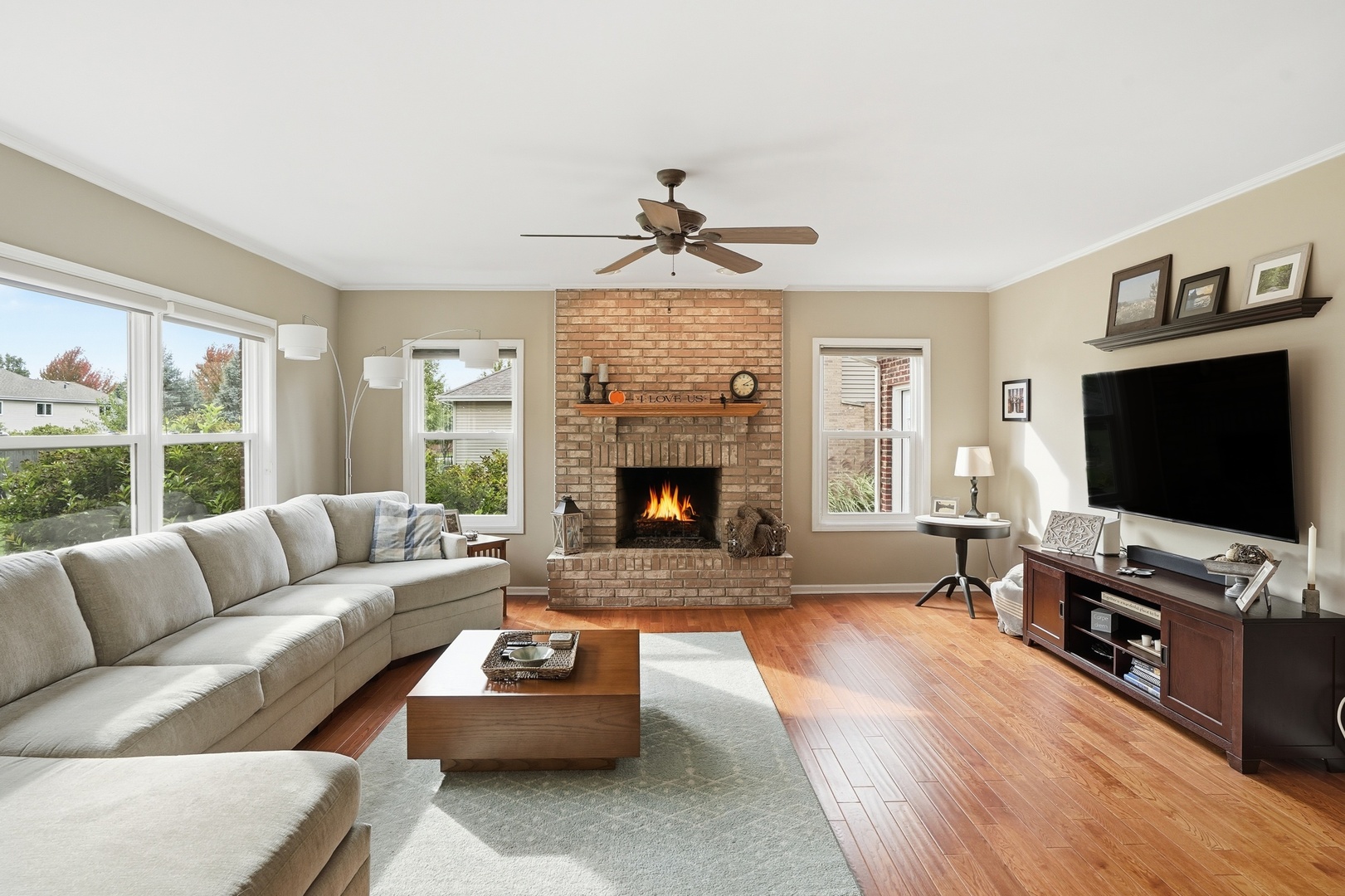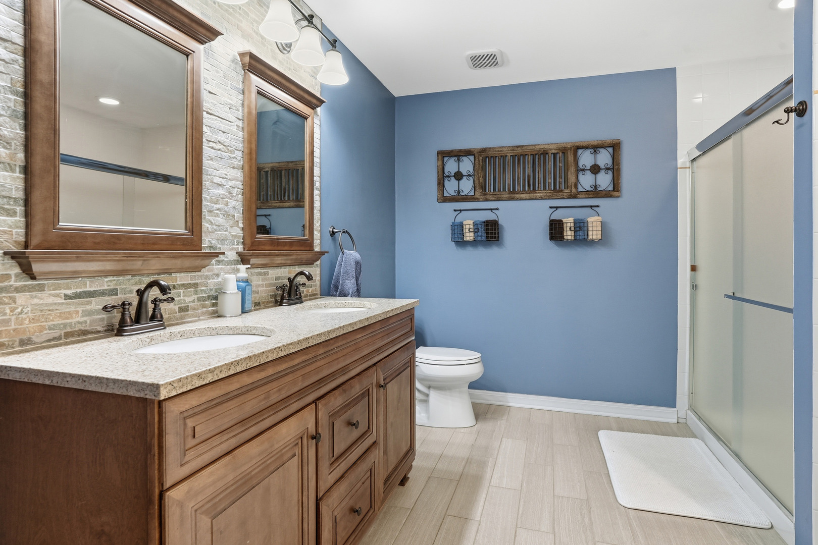 Immaculate and full of updates, this wonderfully located 2-story corner-lot home features 4 Large Bedrooms, 4 Bathrooms, and over 4,000 finished SF! Located in the Heart of New Lenox, near Wildwood Park, New Lenox Commons, all the shopping Rt. 30 has to offer, with quick access to I-80, this home has it all. Upon entering, you are greeted with an open and airy foyer with the vaulted ceiling home office conveniently located and equipped with private French doors. Huge 2 story living room opens to the formal dining room with hardwood flooring. The spacious eat-in kitchen, renovated in 2015, is finished with Tri-Star cabinetry, granite countertops, cooktop stove, massive island, and TWO pantries. Step down into the generously sized family room with hardwood flooring and a charming brick gas fireplace. The main level laundry room features built in cabinetry, folding table, utility sink and second refrigerator along with a gas hookup for second dryer if desired. The main level is rounded out with the beautifully renovated powder room. Upstairs you will find all 4 bedrooms including the master bedroom complete with vaulted ceilings, HUGE fully renovated master bathroom (2021) with double vanity sink, soaking tub, full tile walk-in shower, and in-bathroom walk-in closet with large tile flooring continued. The entire upstairs was refloored with scraped bamboo hardwood (2022). The fully finished basement is an entertainer’s dream with a full bar, 9′ poured walls and 8′ ceiling with drop tile, full bathroom, and massive storage space. Step outside from the kitchen to the custom covered patio with recessed lighting, ceiling fan, 3 TV hook-ups and built-ins, natural gas line for the grill, AND Sunsetter awning for added shade. Last but not least is the heated 3-car garage with additional utility sink, workbench, service door to the backyard, and 3-car wide concrete driveway. Updates include: All New Pella Windows (2020) Roof (2013) Floors (2022)