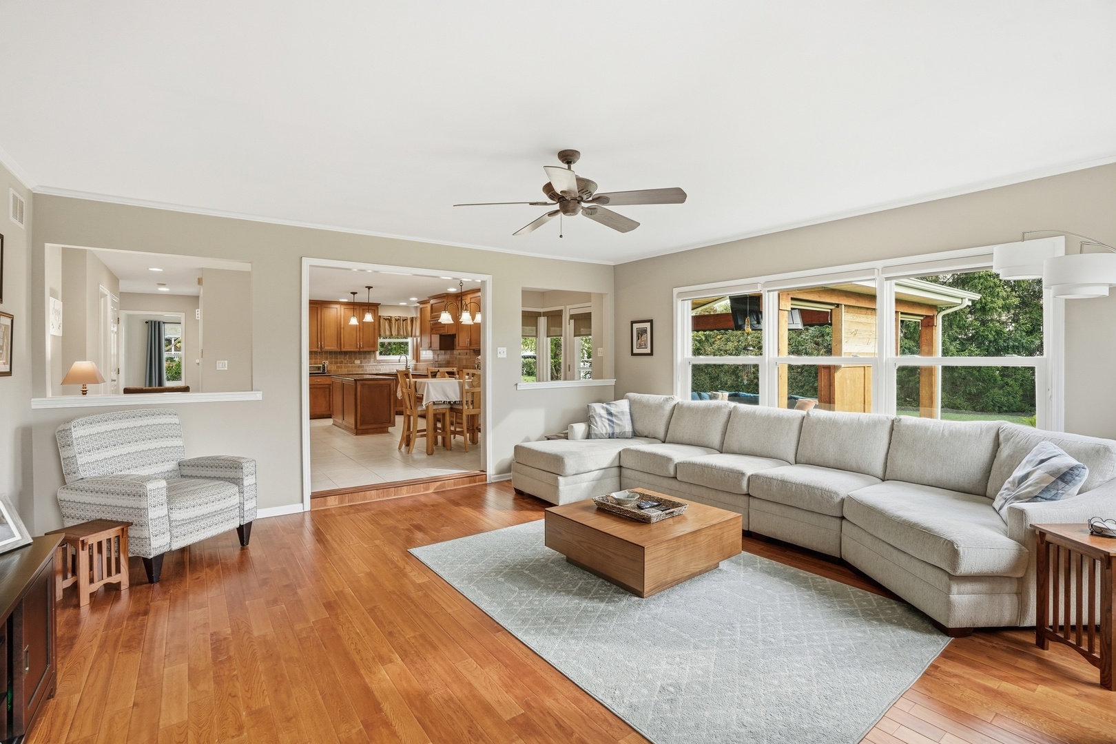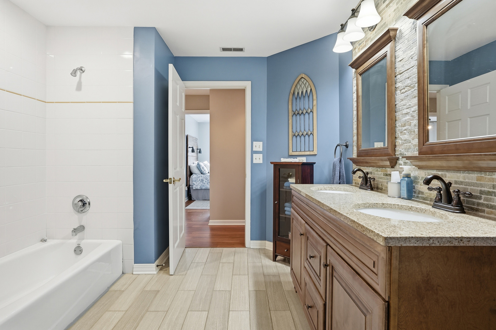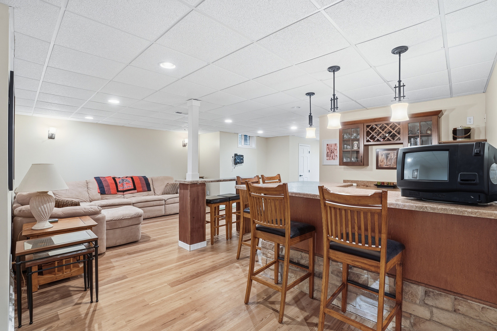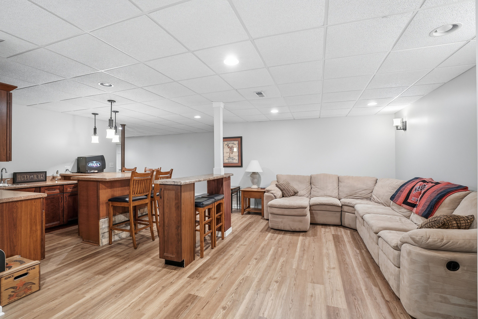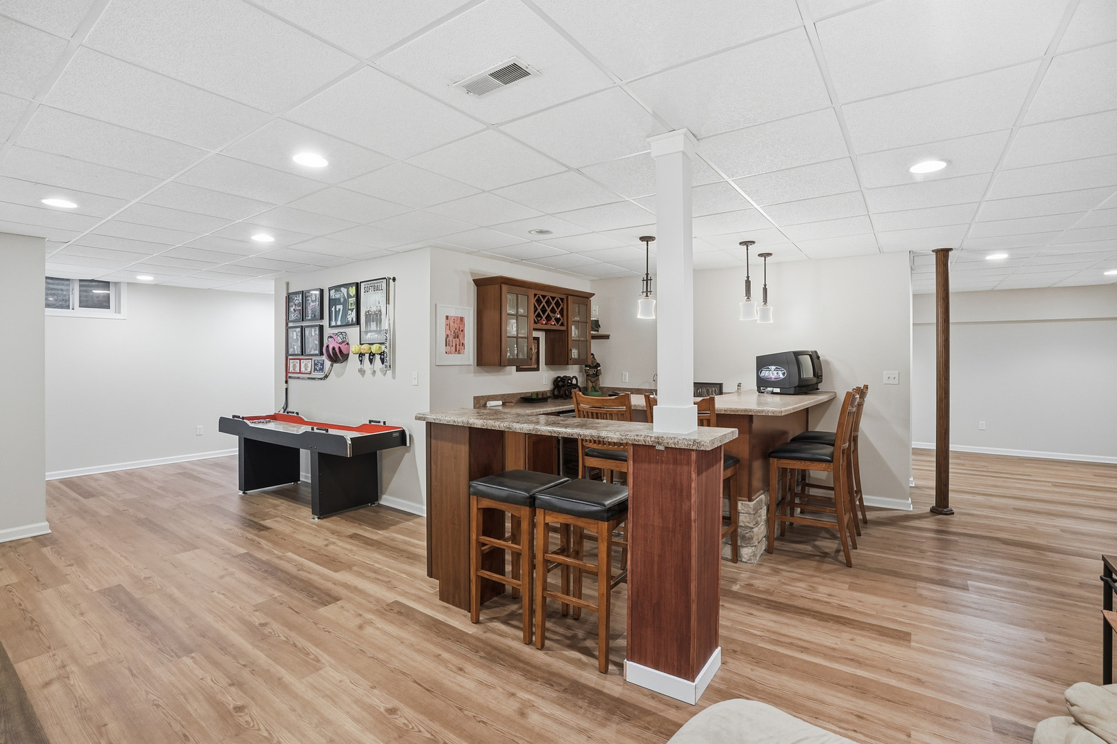 Immaculate and full of updates, this wonderfully located 2-story corner-lot home features 4 Large Bedrooms, 4 Bathrooms, and over 4,000 finished SF! Located in the Heart of New Lenox, near Wildwood Park, New Lenox Commons, all the shopping Rt. 30 has to offer, with quick access to I-80, this home has it all. Upon entering, you are greeted with an open and airy foyer with the vaulted ceiling home office conveniently located and equipped with private French doors. Huge 2 story living room opens to the formal dining room with hardwood flooring. The spacious eat-in kitchen, renovated in 2015, is finished with Tri-Star cabinetry, granite countertops, cooktop stove, massive island, and TWO pantries. Step down into the generously sized family room with hardwood flooring and a charming brick gas fireplace. The main level laundry room features built in cabinetry, folding table, utility sink and second refrigerator along with a gas hookup for second dryer if desired. The main level is rounded out with the beautifully renovated powder room. Upstairs you will find all 4 bedrooms including the master bedroom complete with vaulted ceilings, HUGE fully renovated master bathroom (2021) with double vanity sink, soaking tub, full tile walk-in shower, and in-bathroom walk-in closet with large tile flooring continued. The entire upstairs was refloored with scraped bamboo hardwood (2022). The fully finished basement is an entertainer’s dream with a full bar, 9′ poured walls and 8′ ceiling with drop tile, full bathroom, and massive storage space. Step outside from the kitchen to the custom covered patio with recessed lighting, ceiling fan, 3 TV hook-ups and built-ins, natural gas line for the grill, AND Sunsetter awning for added shade. Last but not least is the heated 3-car garage with additional utility sink, workbench, service door to the backyard, and 3-car wide concrete driveway. Updates include: All New Pella Windows (2020) Roof (2013) Floors (2022)